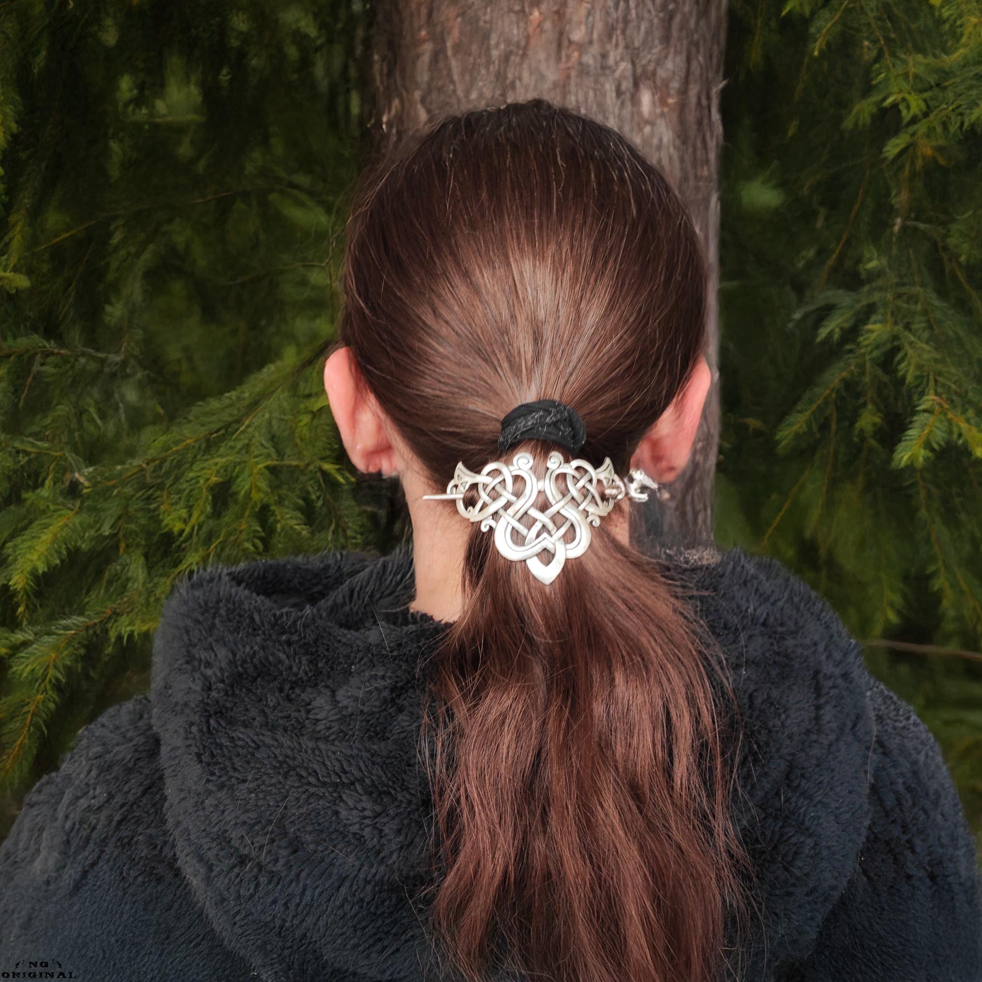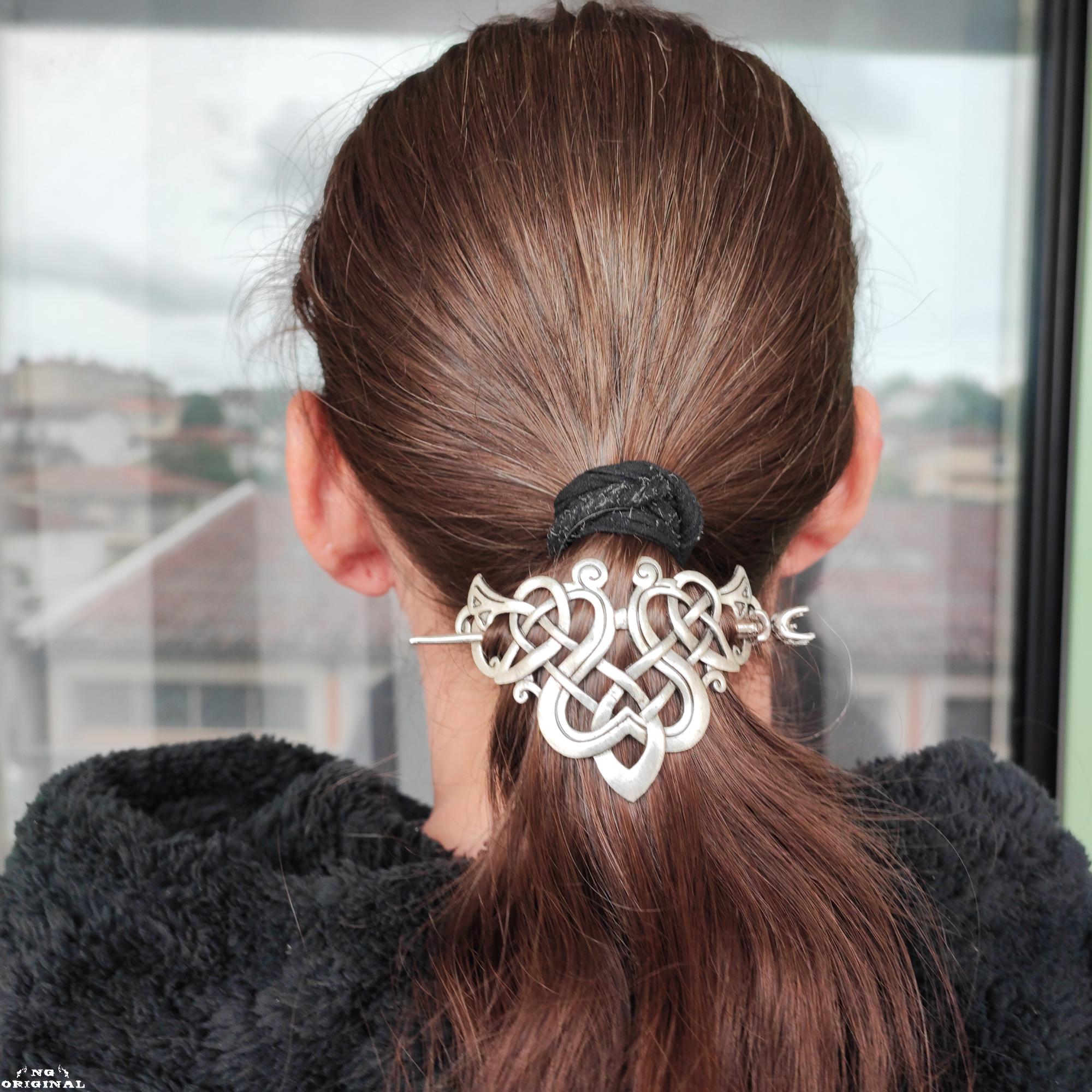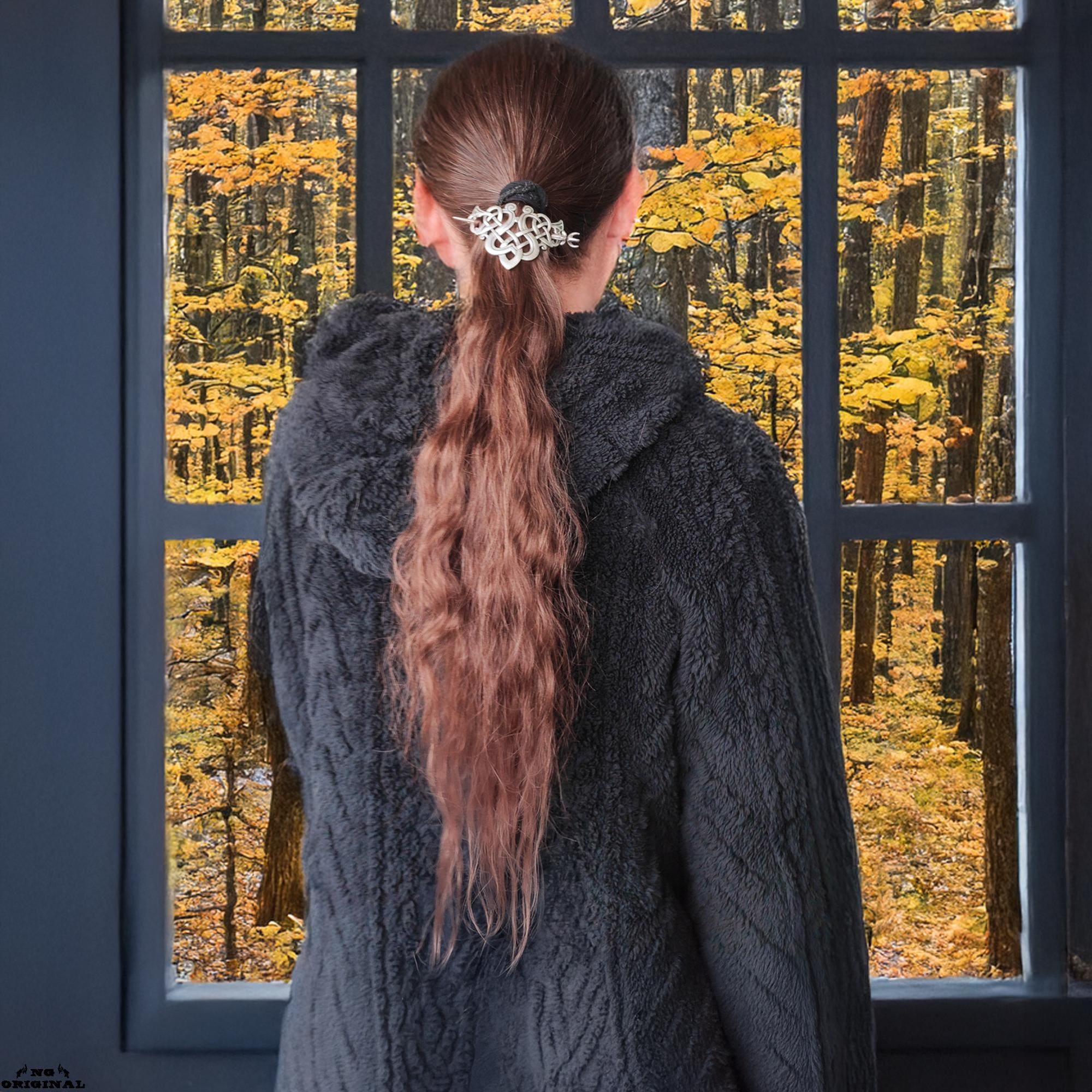 ✨ Add a touch of mystical elegance to your hairstyle with this handcrafted Celtic and Nordic-style barrette, inspired by ancestral traditions.