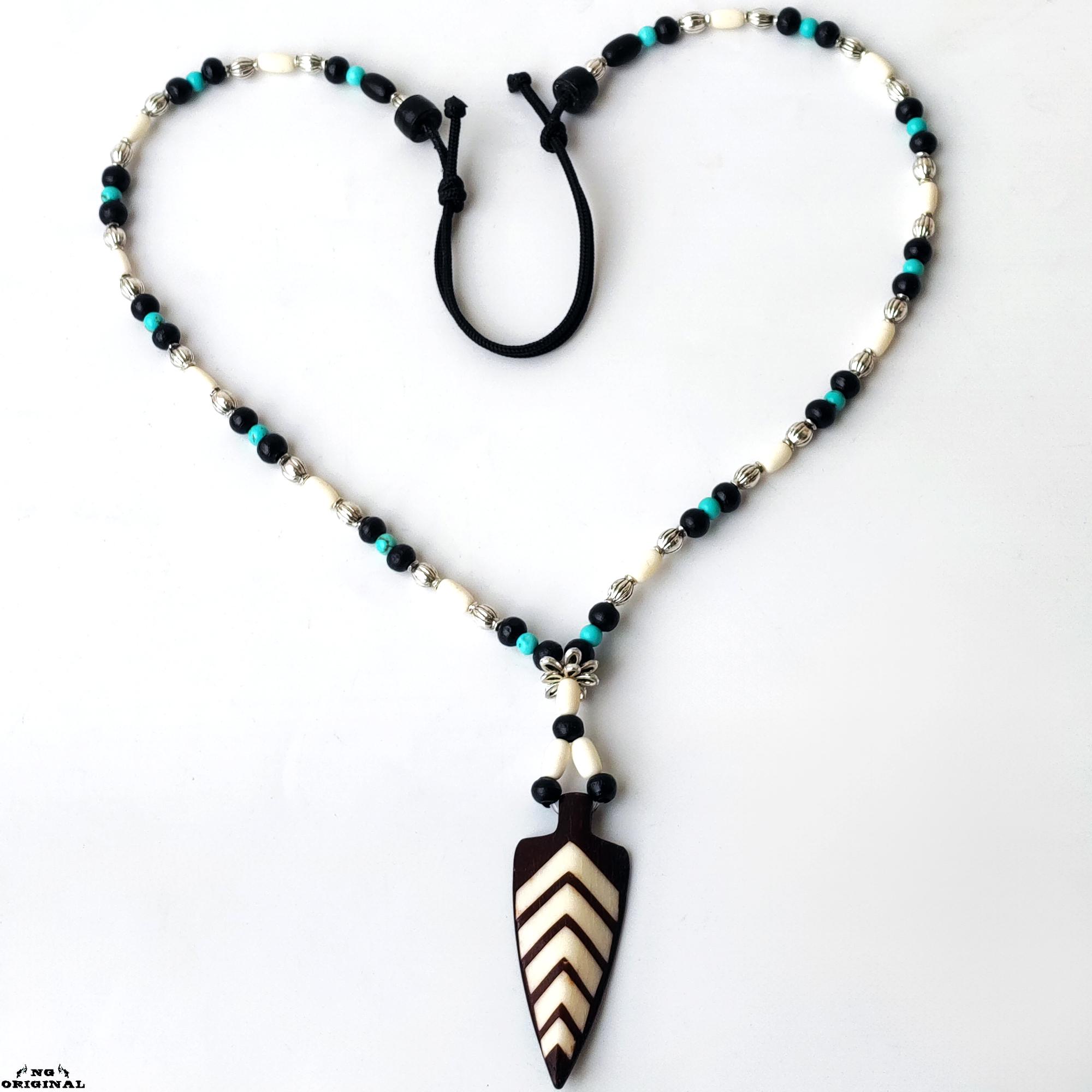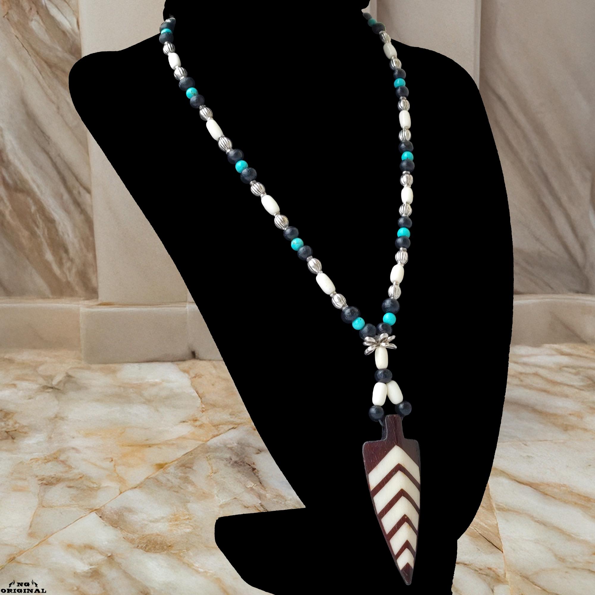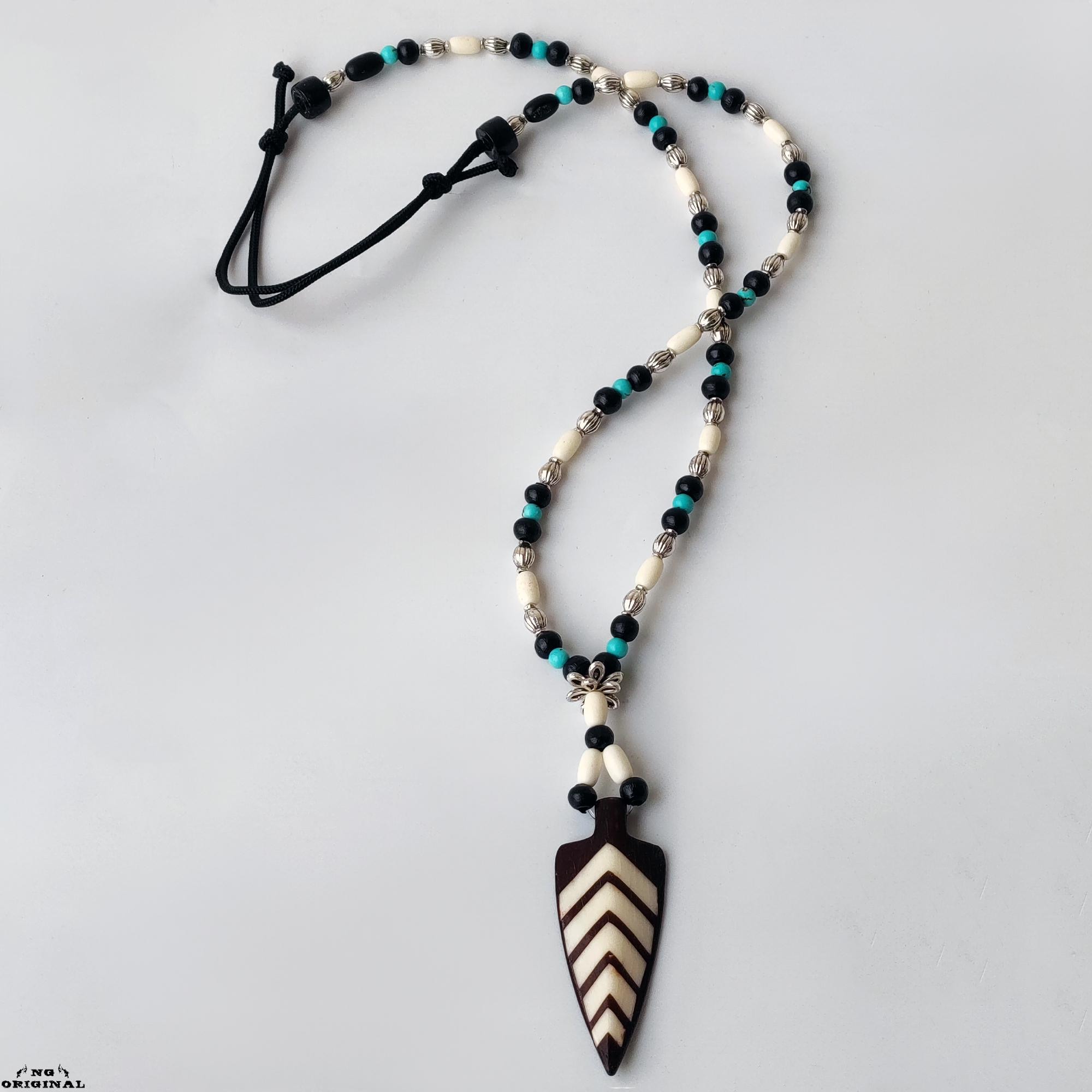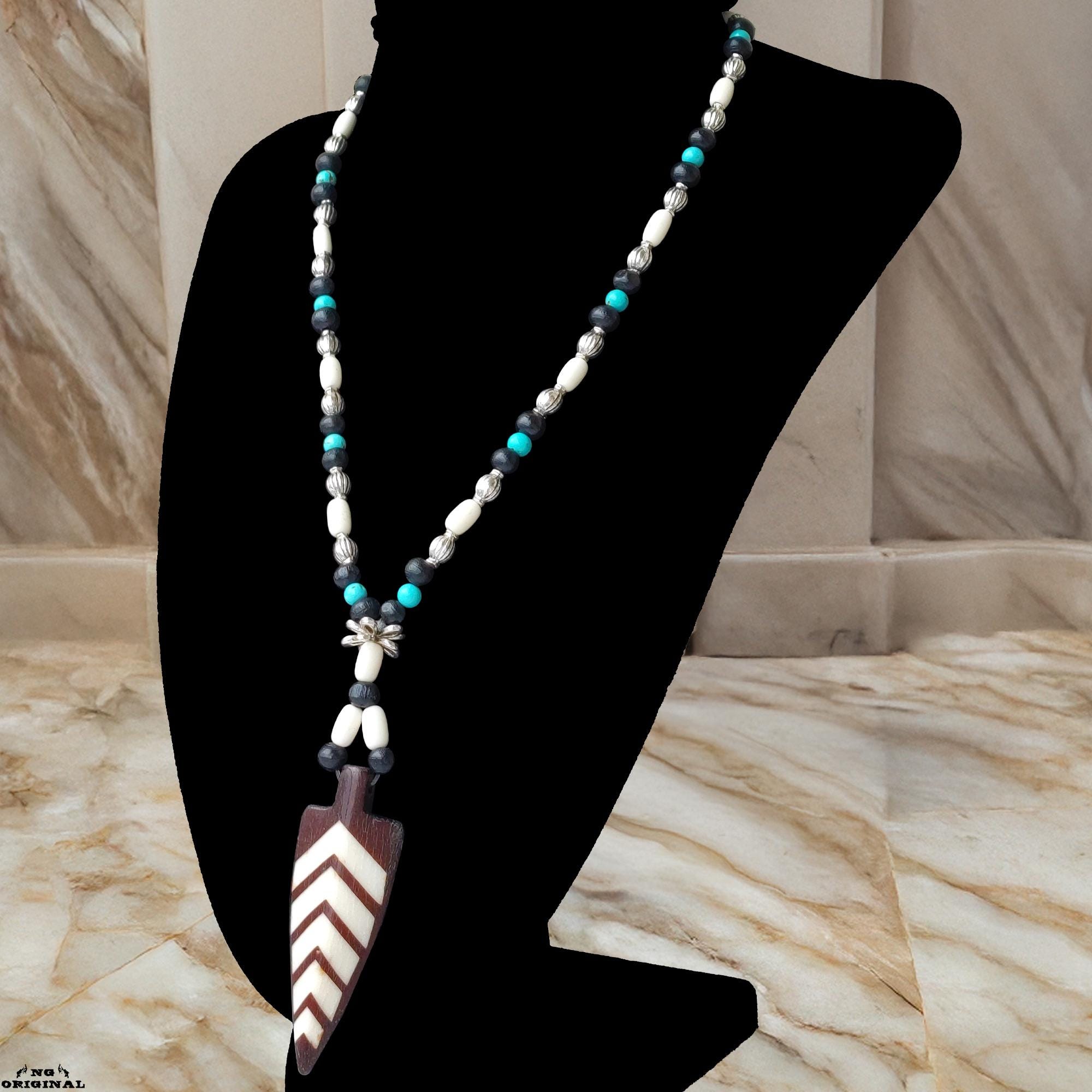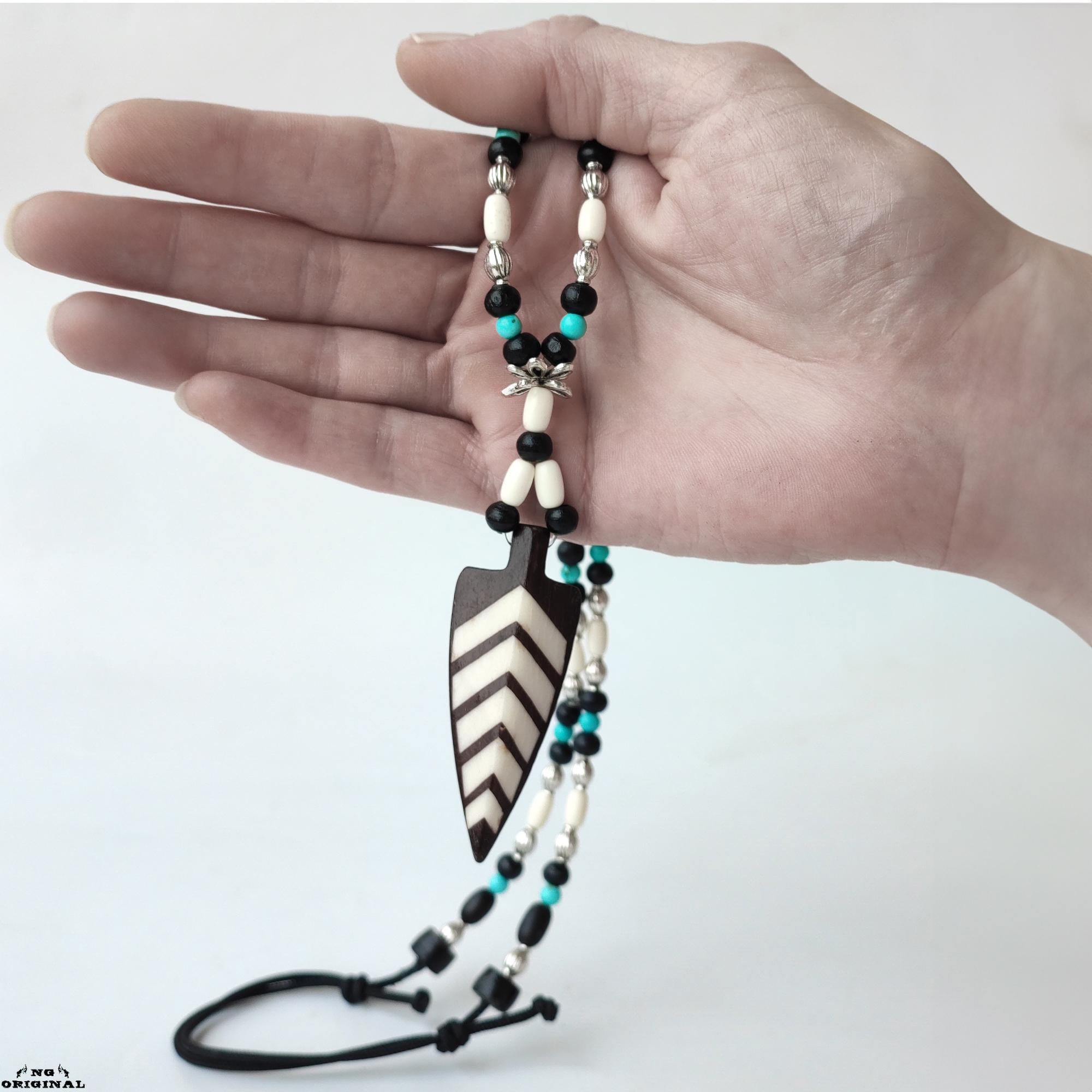 🐍 Dyed Bone Arrowhead: With its brown tones and white chevrons, it symbolizes wisdom and a deep connection to the Earth. This necklace is a true spiritual totem, ideal for those who love shamanism, meditation, or bohemian style.