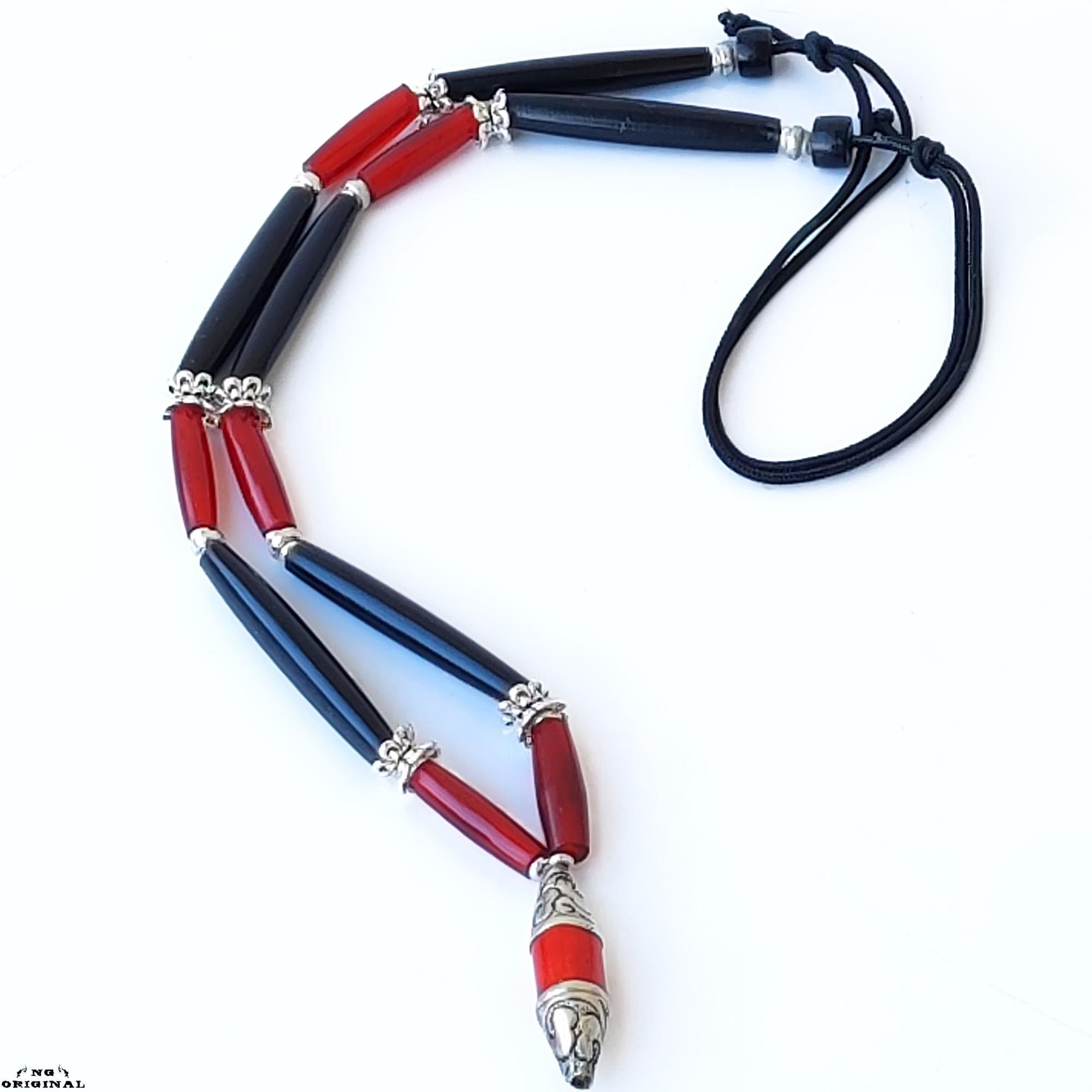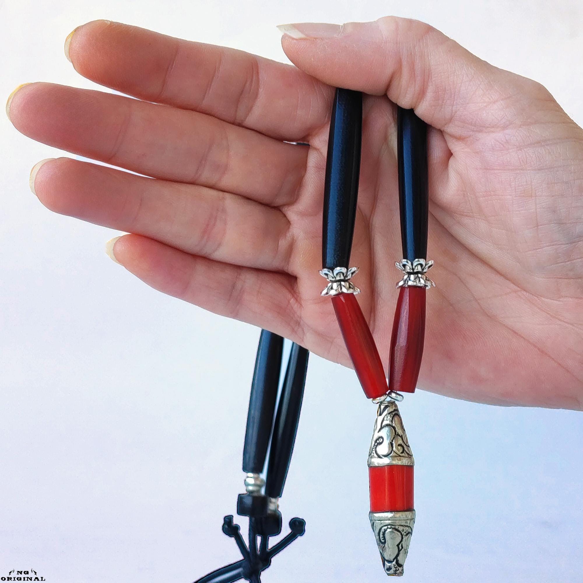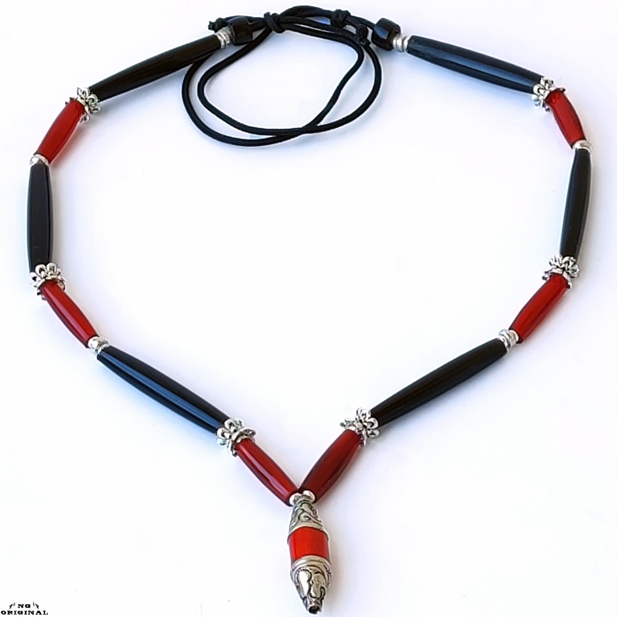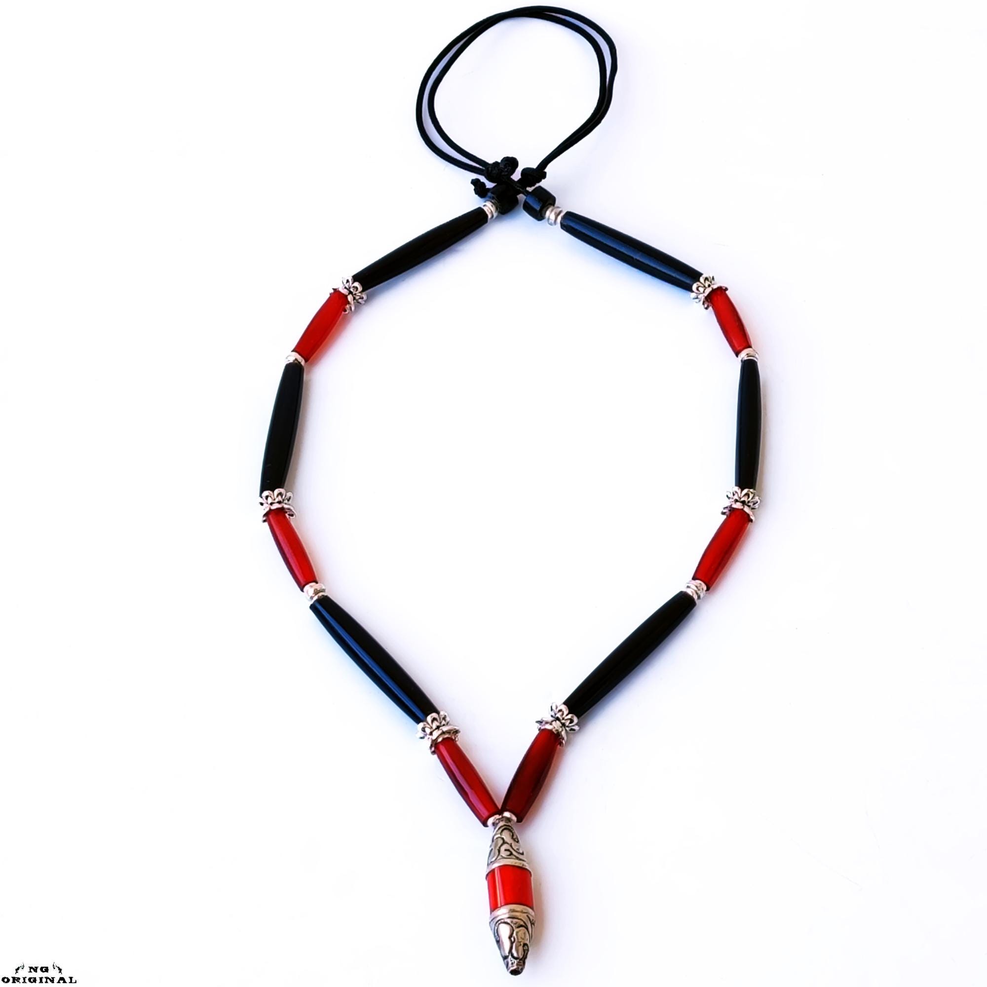 Hairpipe horn beads: red 25 mm, black 50 mm.