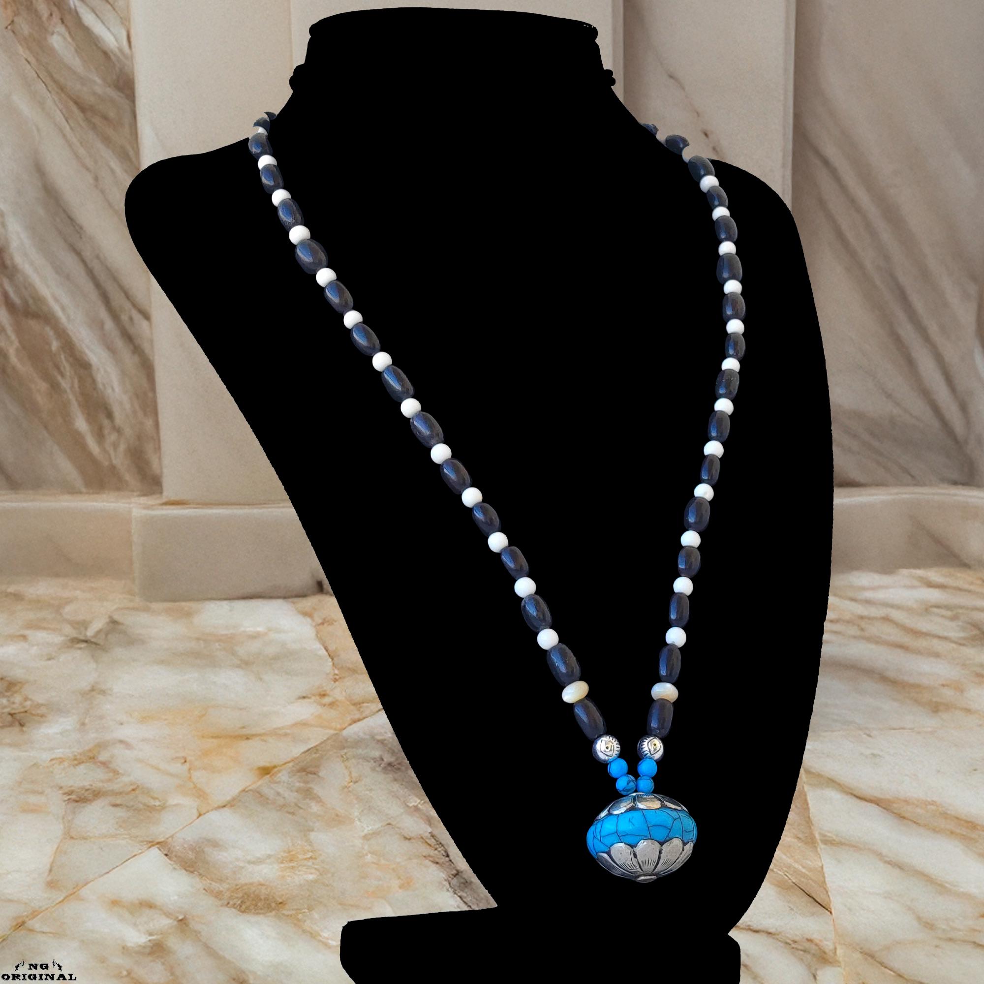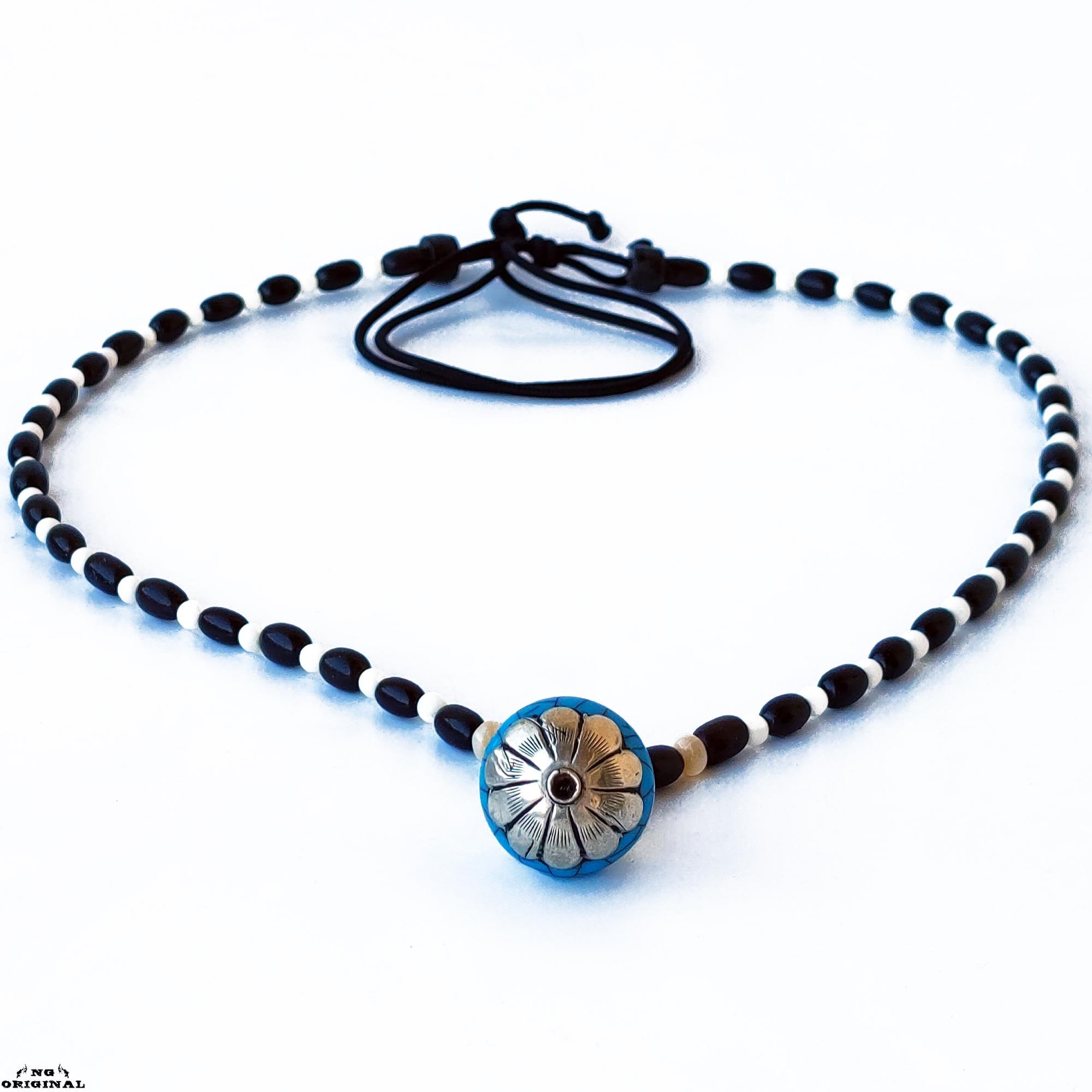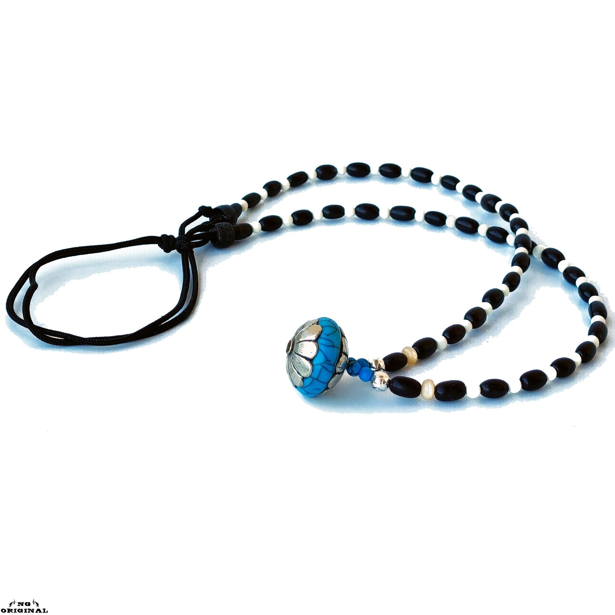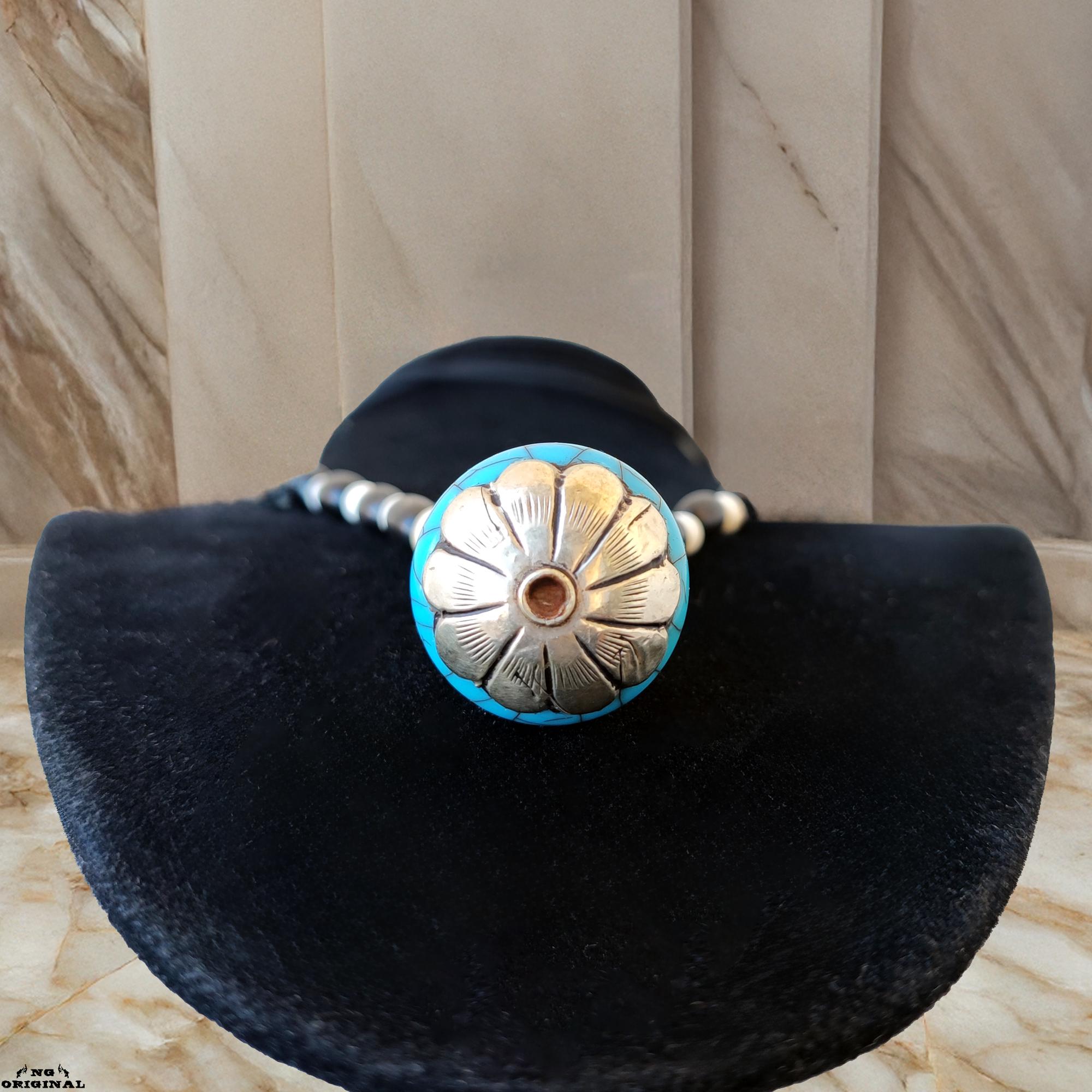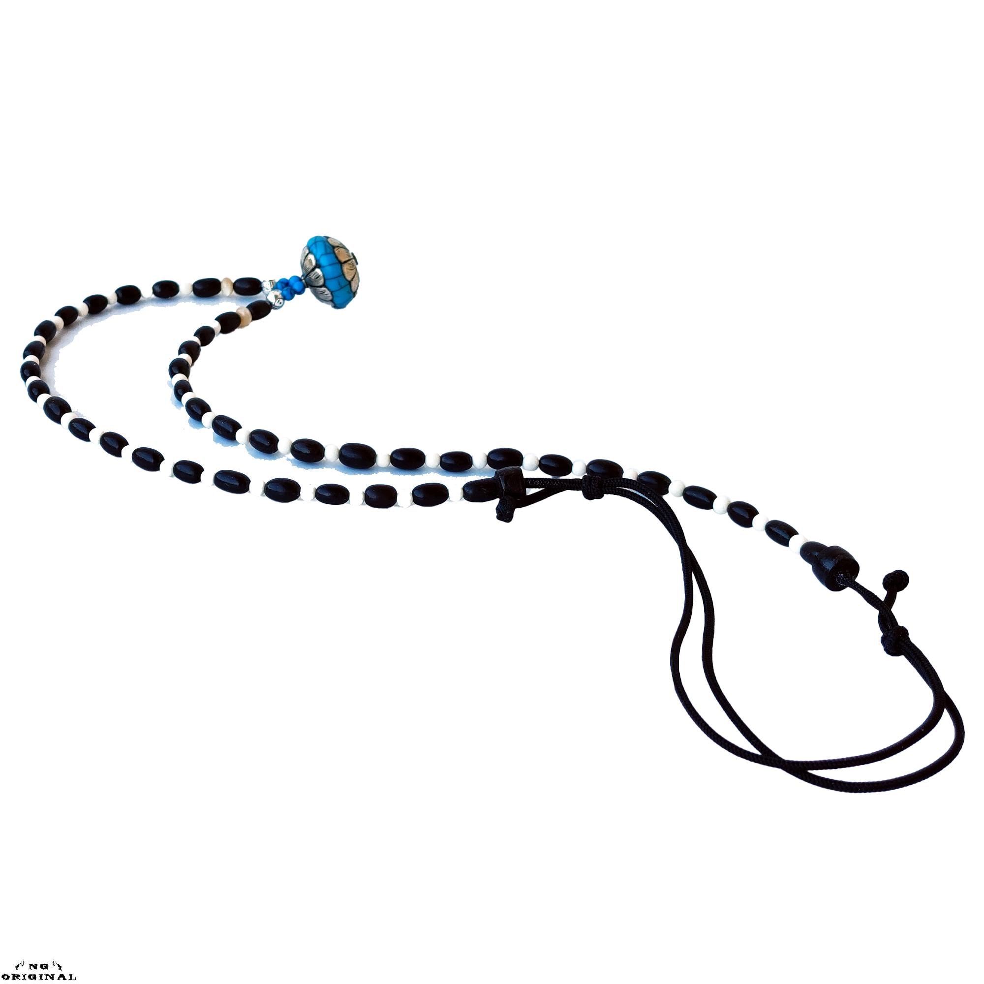 Native American Tibetan Pendant Necklace – Spiritual Boho Jewelry in Silver & Resin, Handmade in France