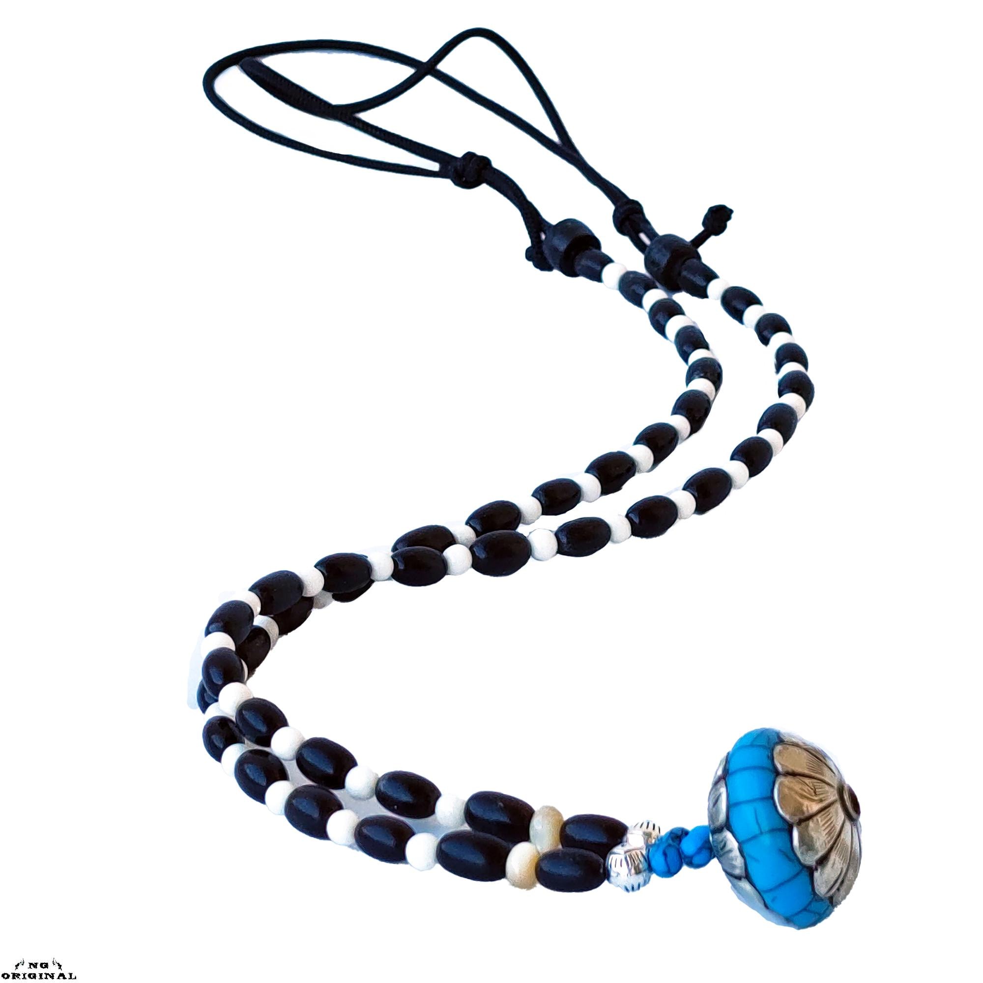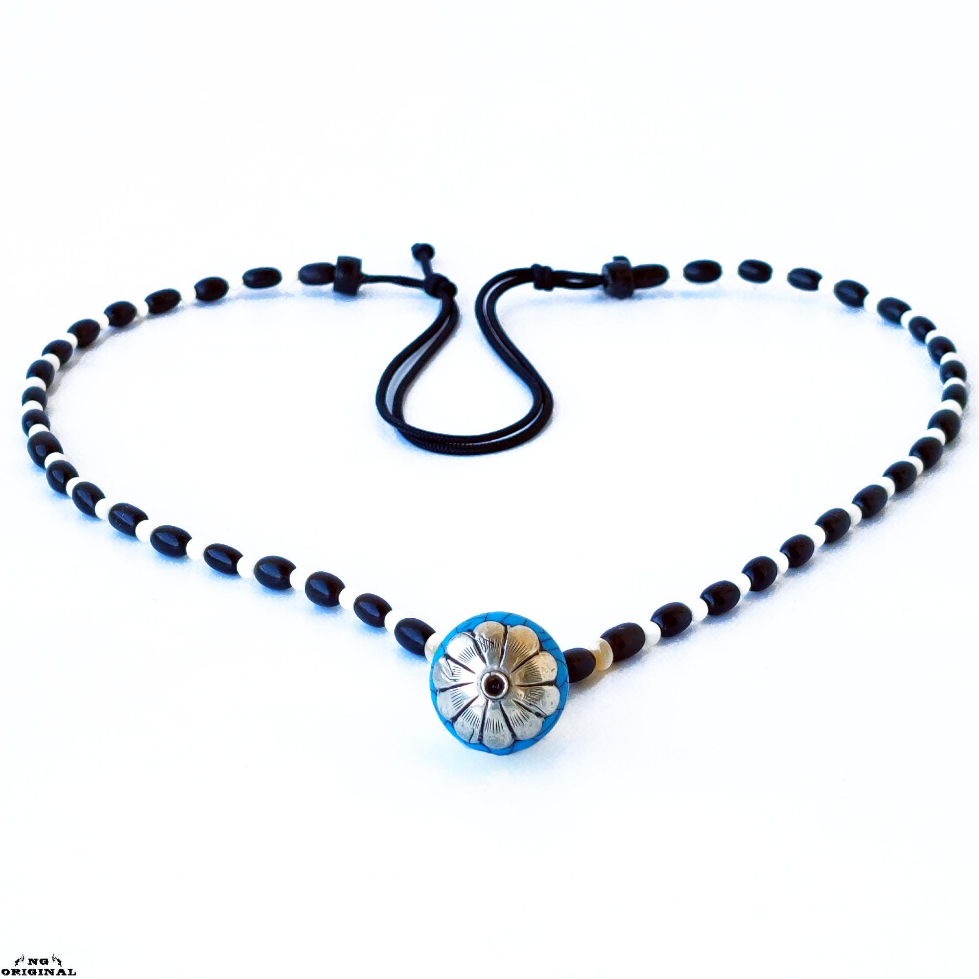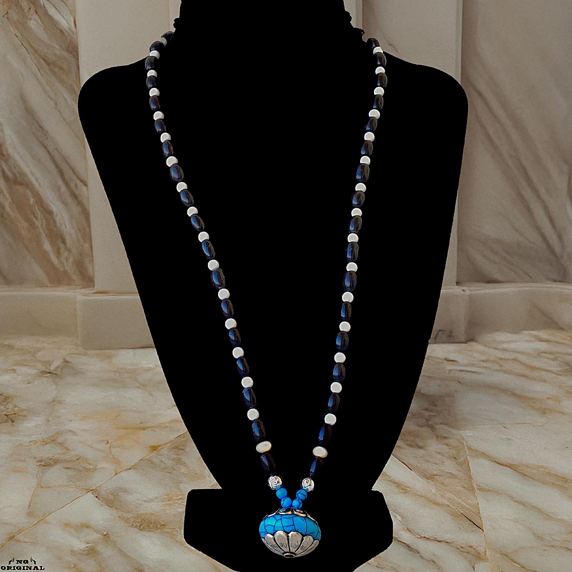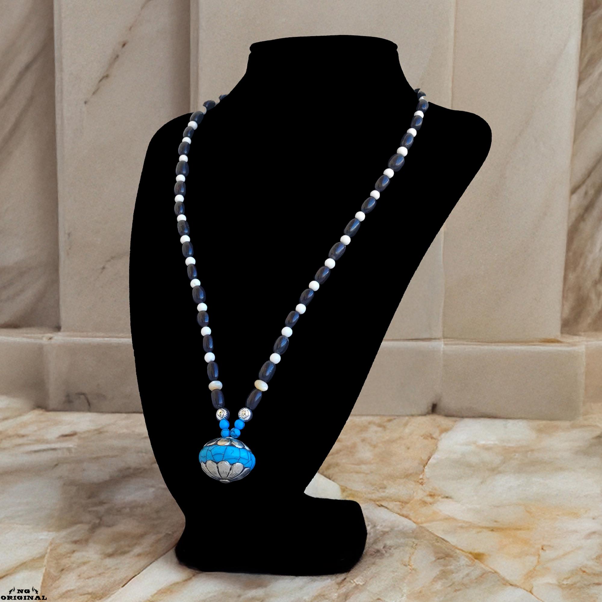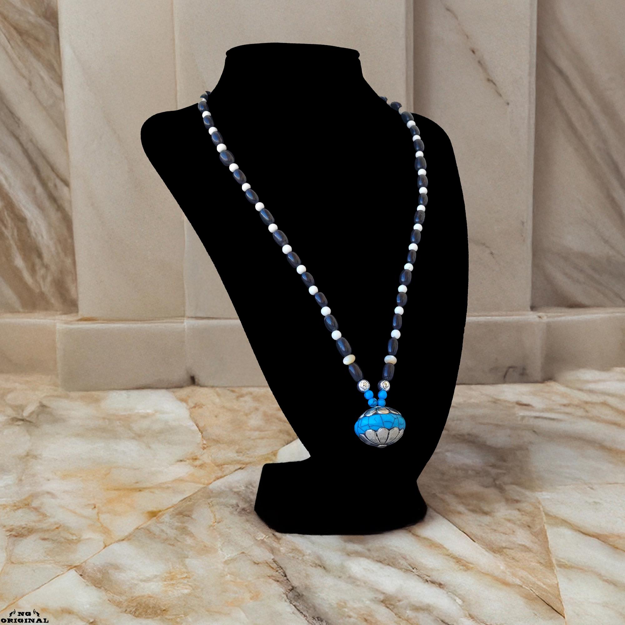 Native American Tibetan Pendant Necklace – Spiritual Boho Jewelry in Silver & Resin, Handmade in France
