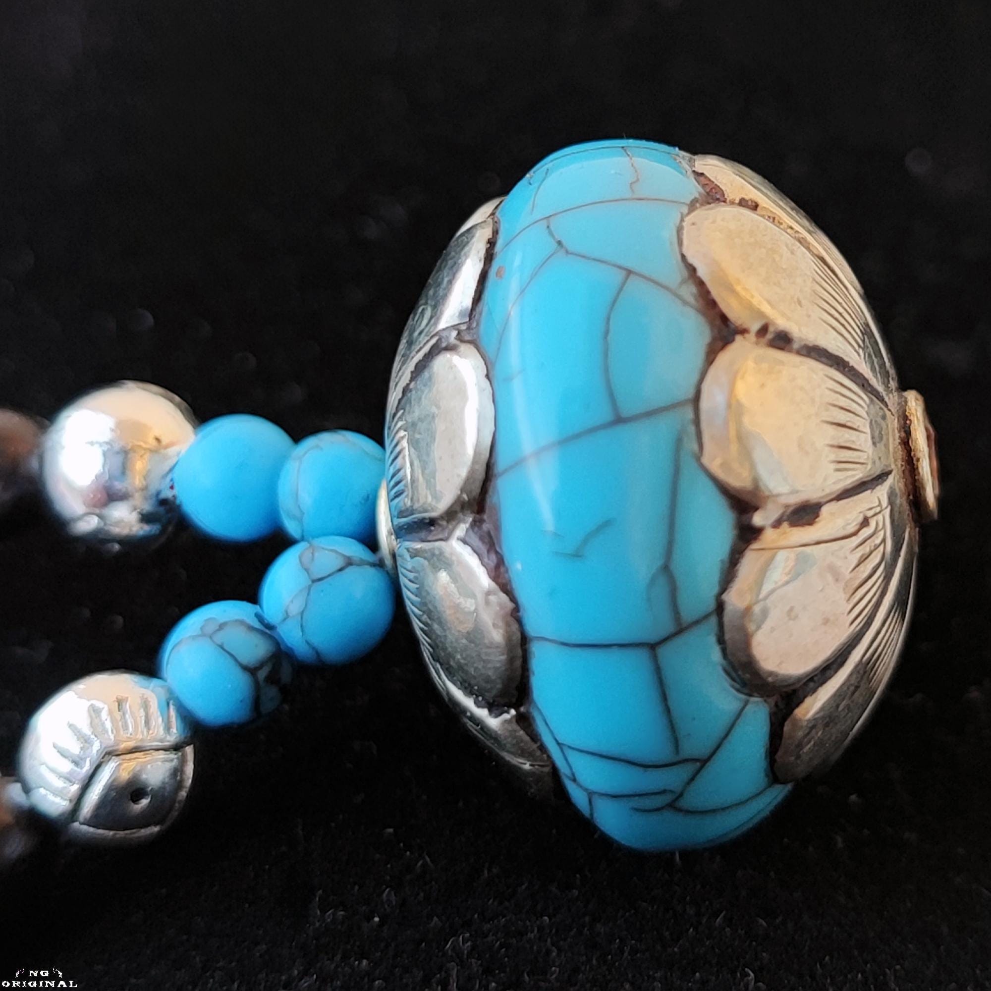 Tibetan pendant in repoussé silver & blue resin