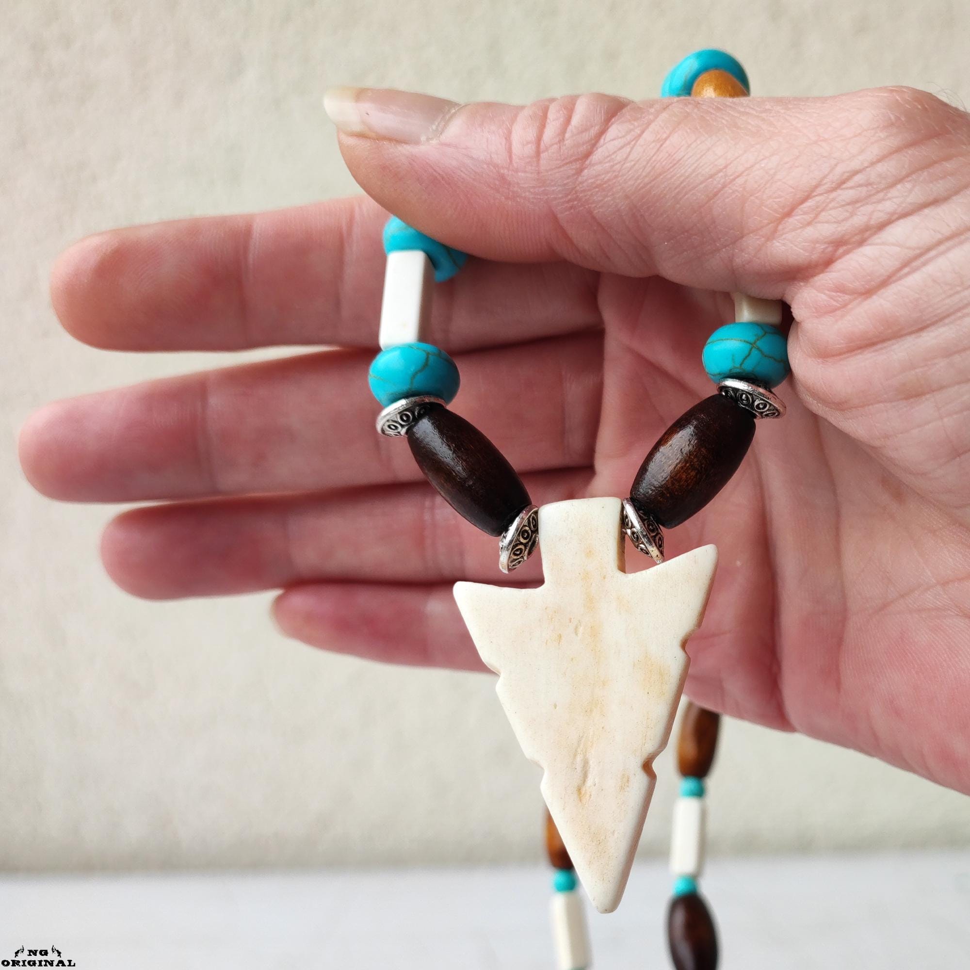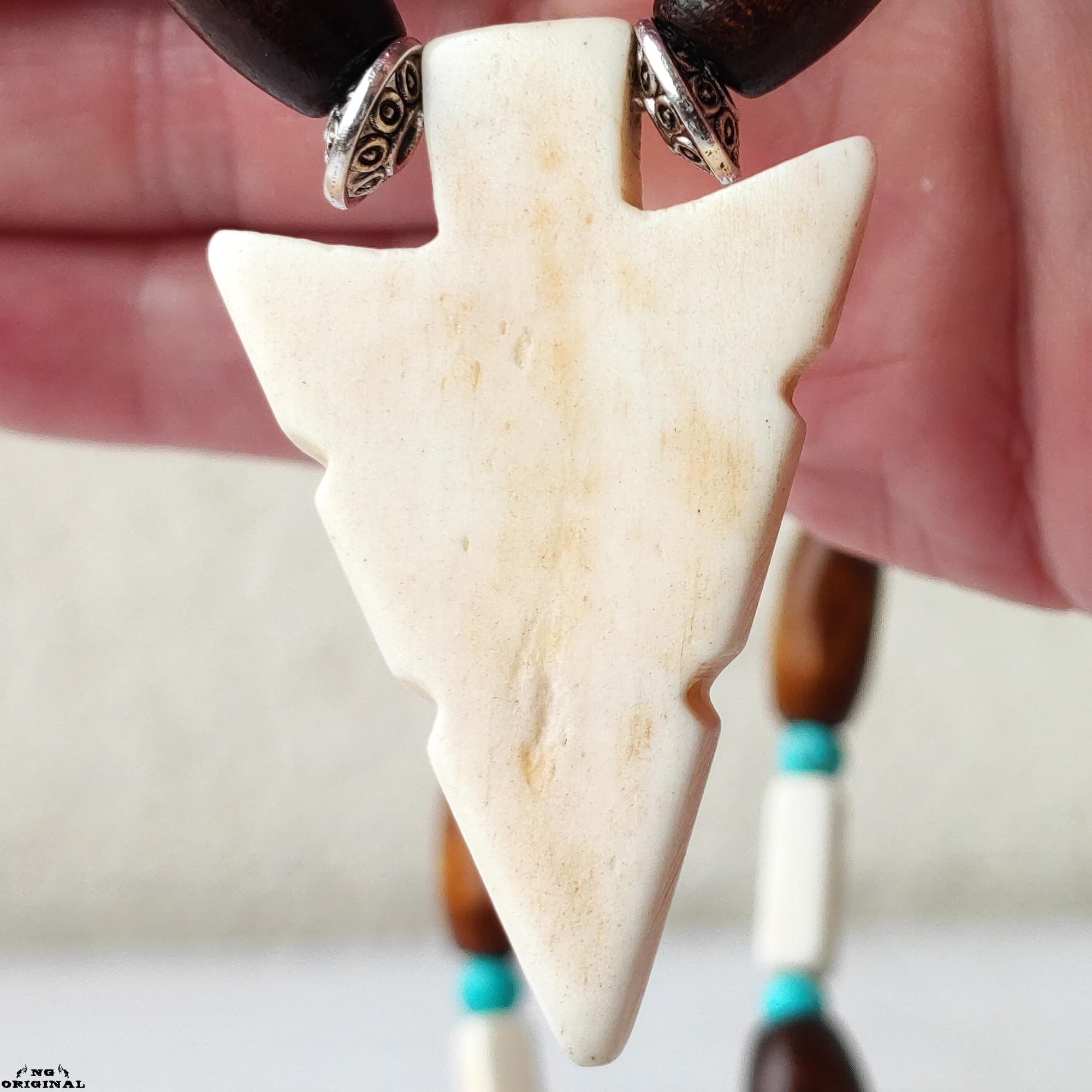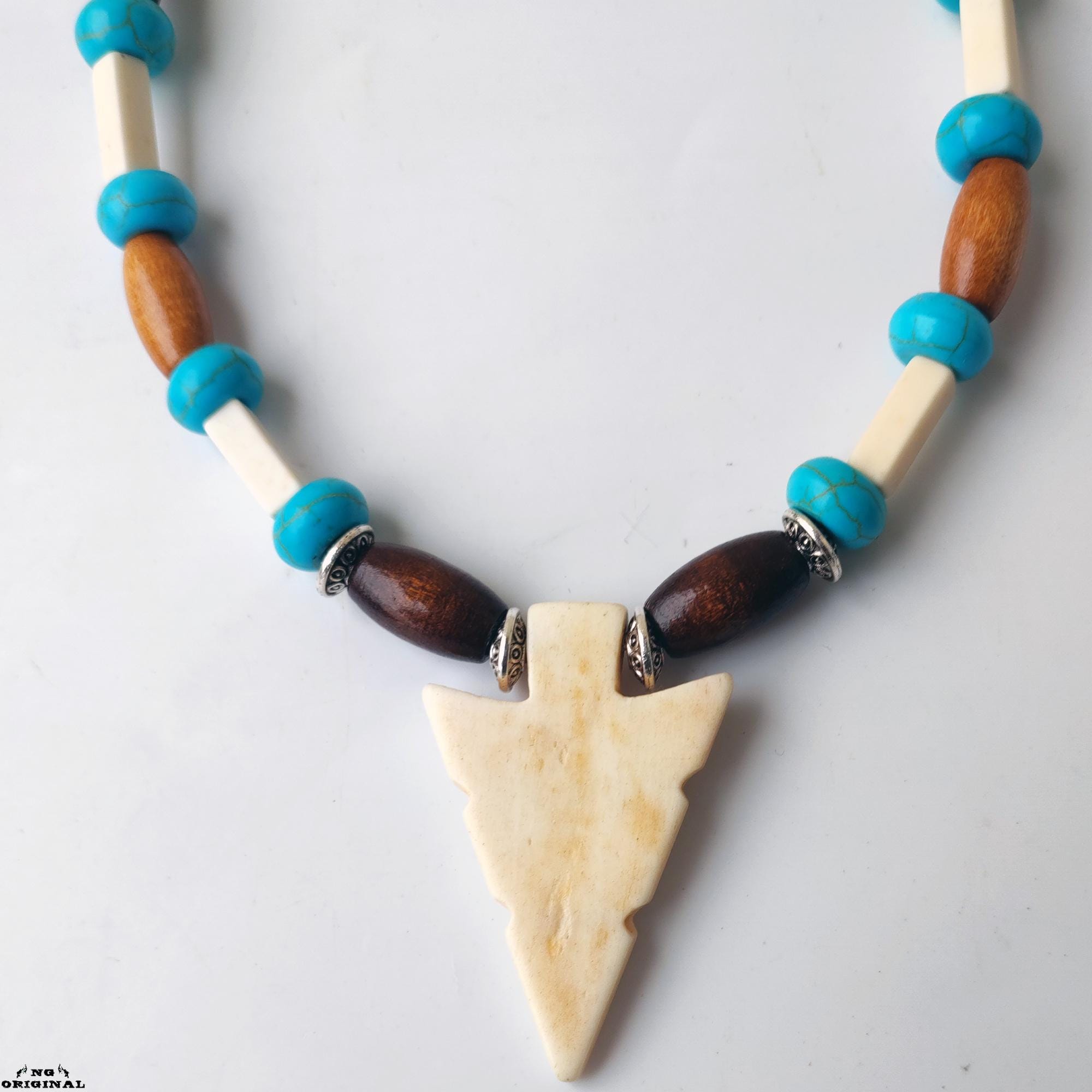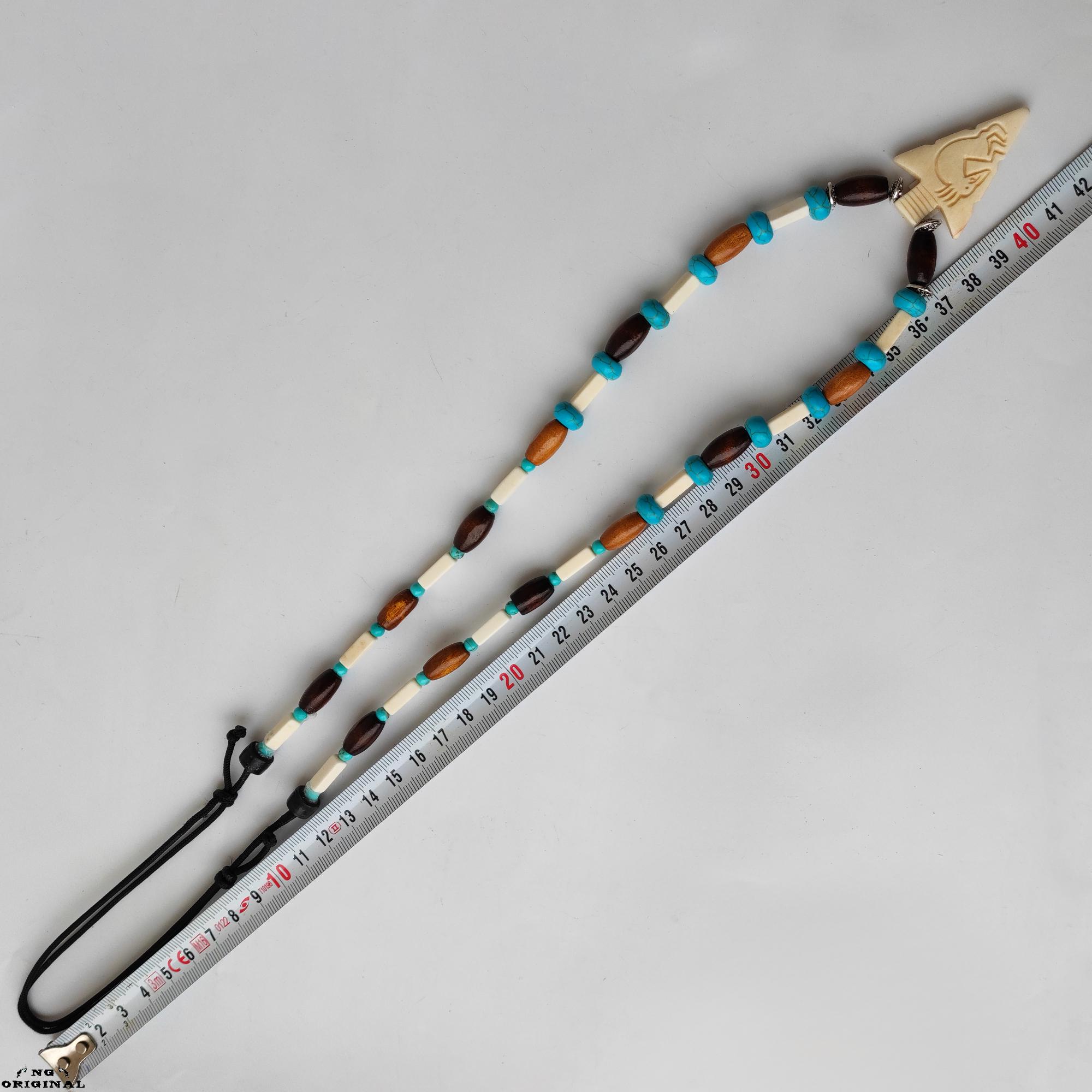 ✨ Step into the mystical world of Native American traditions with this handcrafted necklace — a symbol of freedom, spirit, and connection. Each piece is lovingly made in France using carefully selected natural materials: genuine turquoise beads, carved bone, wood, black horn, and brass.