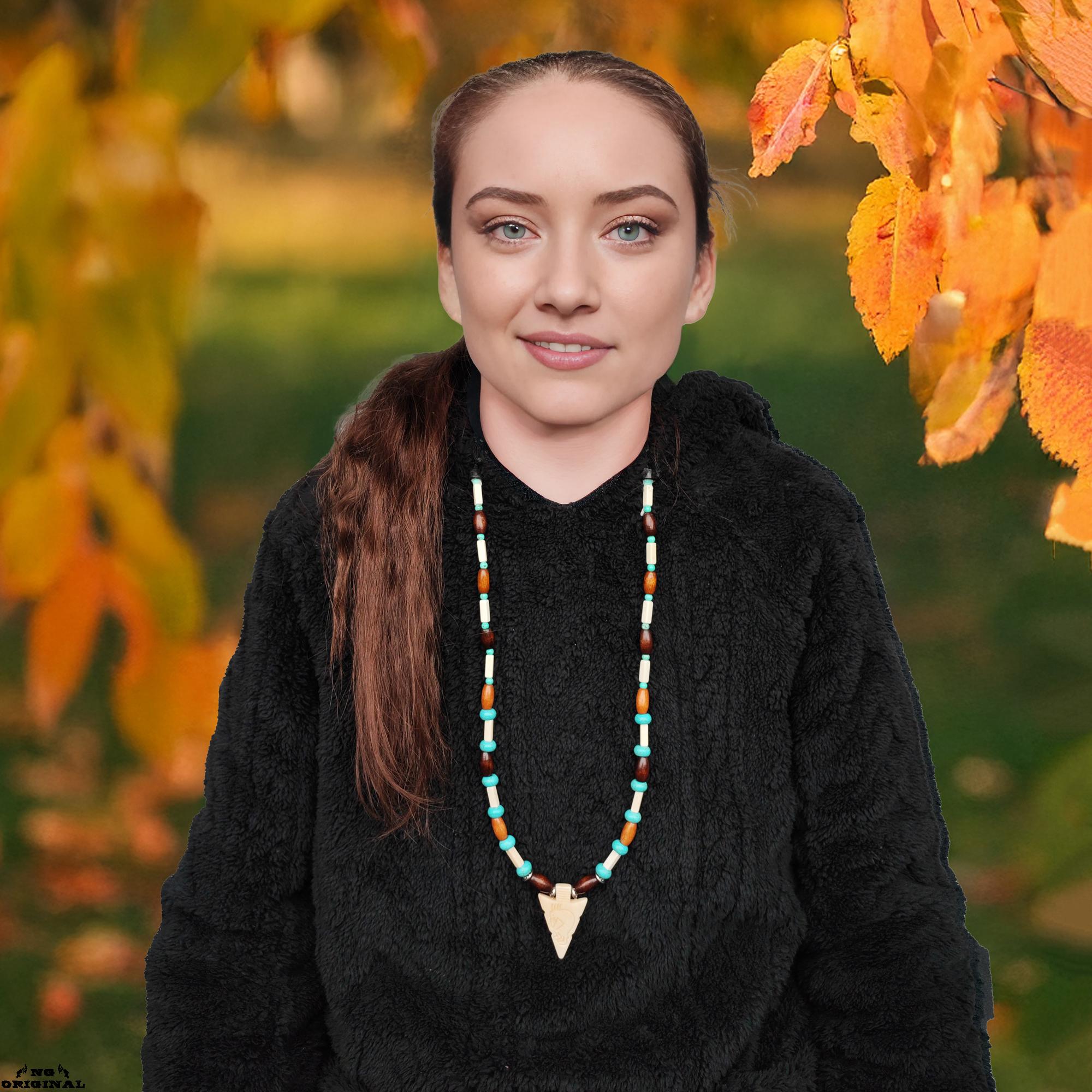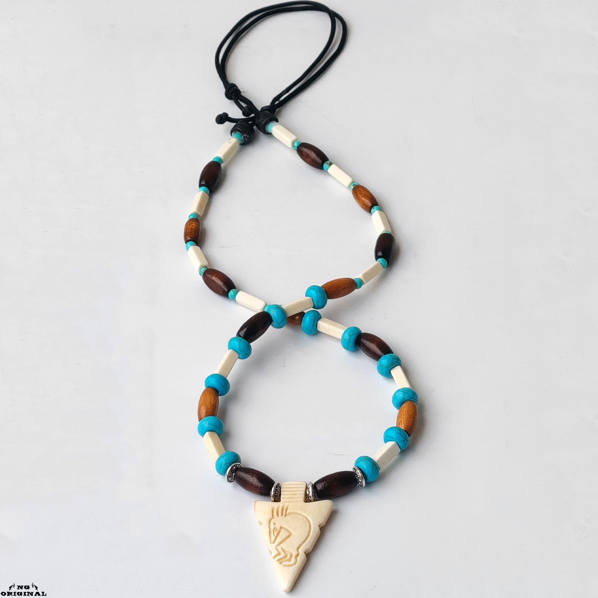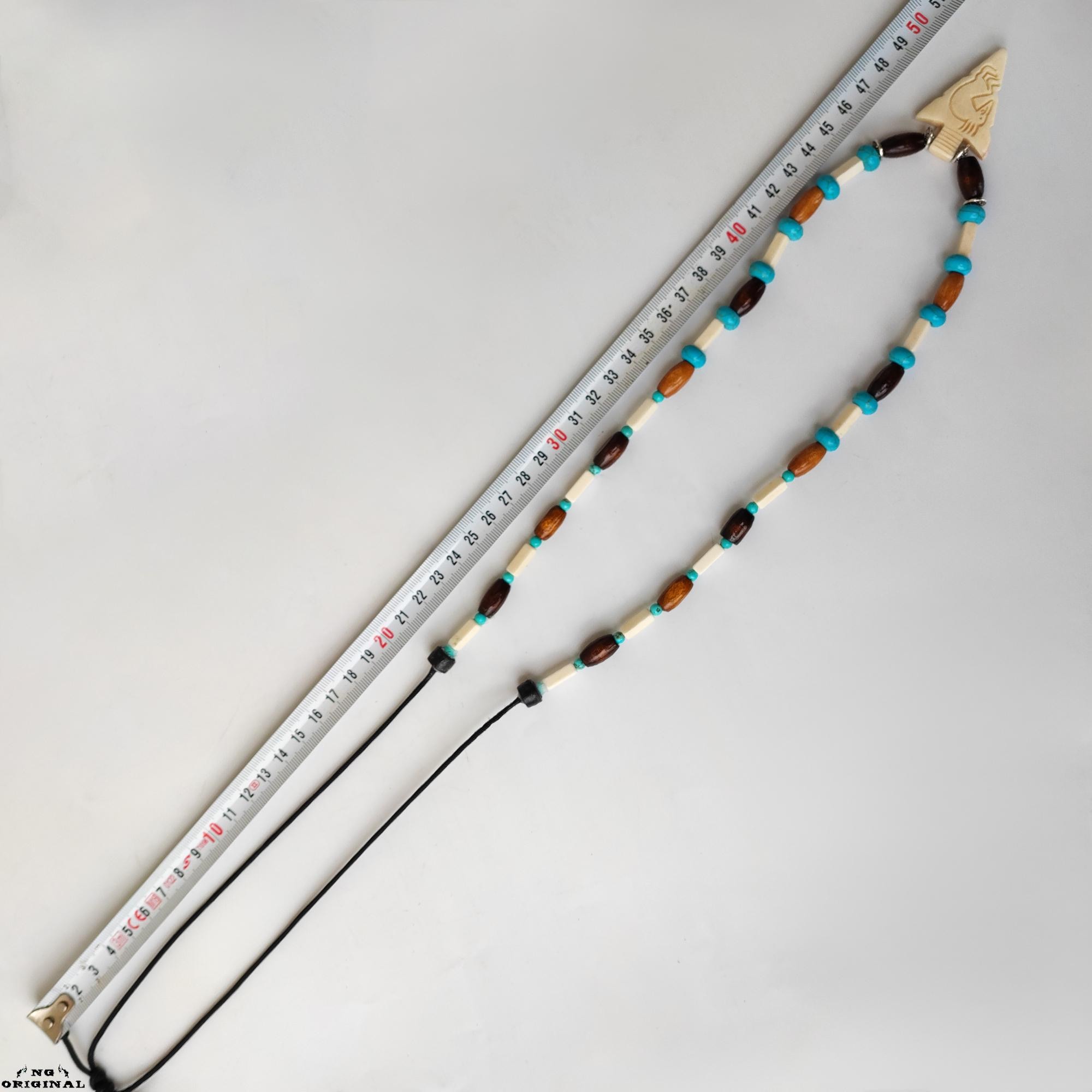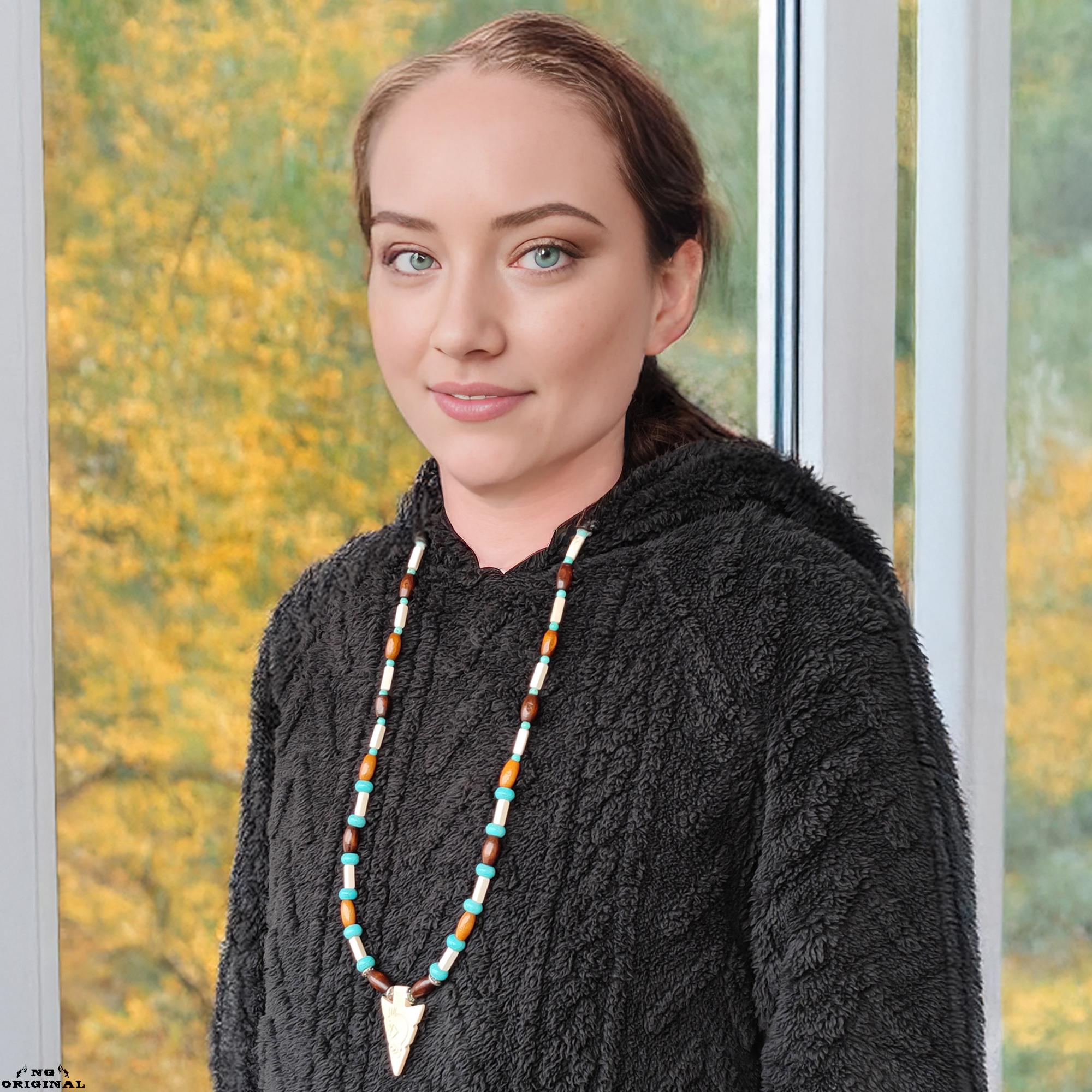 ✨ Step into the mystical world of Native American traditions with this handcrafted necklace — a symbol of freedom, spirit, and connection. Each piece is lovingly made in France using carefully selected natural materials: genuine turquoise beads, carved bone, wood, black horn, and brass.