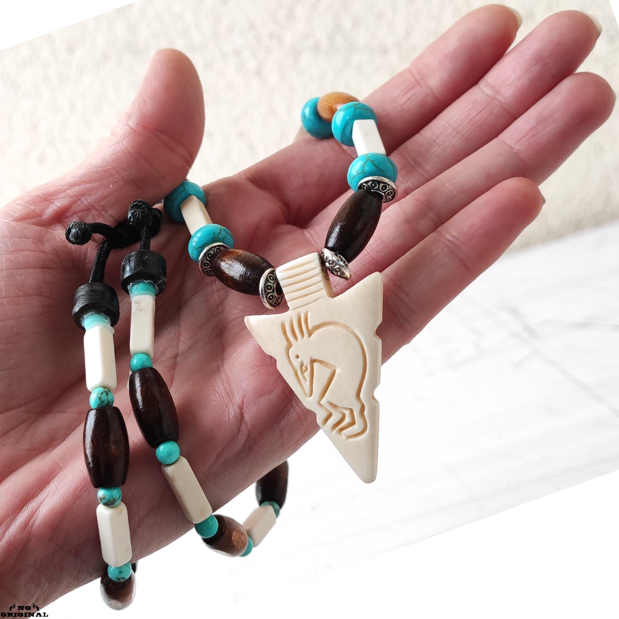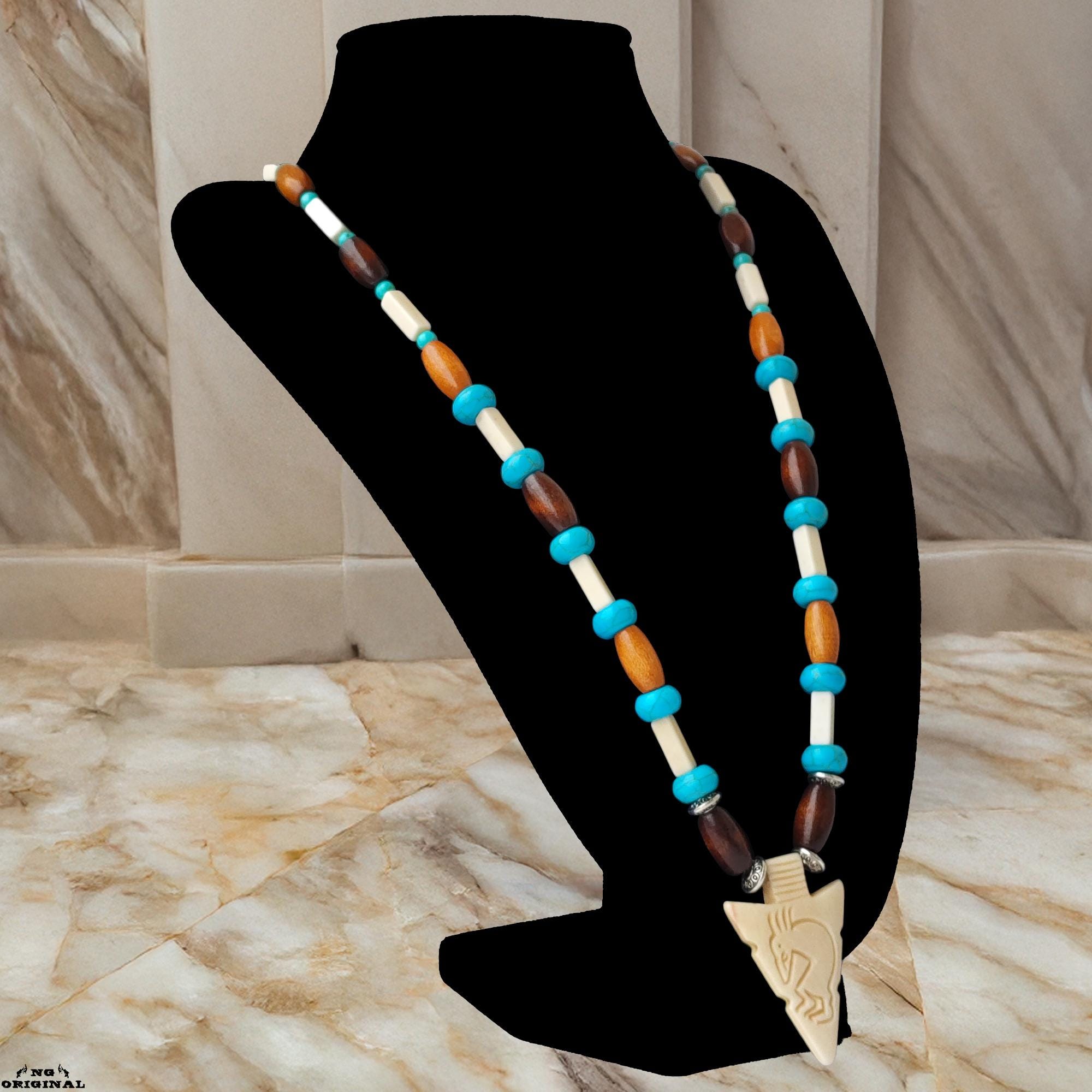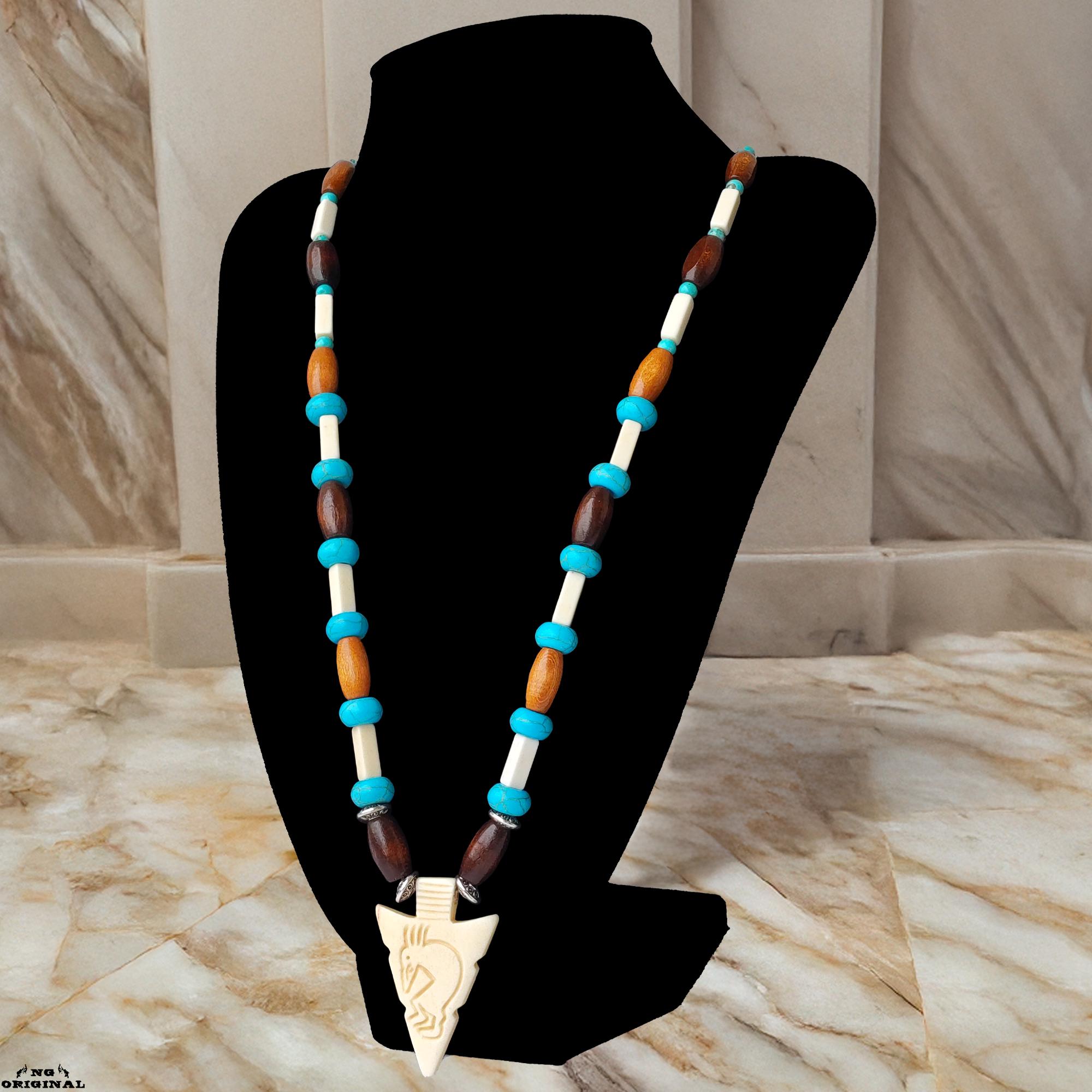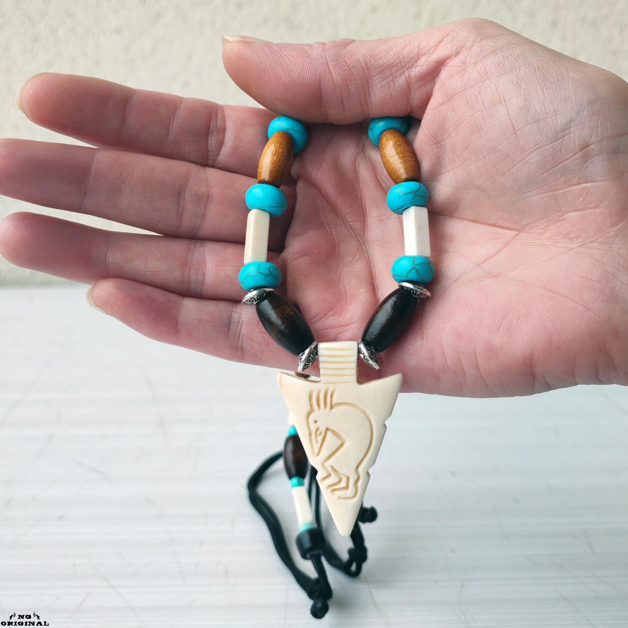 Native American Turquoise Necklace for Men & Women | Spiritual Boho Chic Jewelry | Handmade Kokopelli Pendant | Unique Gift Made in France