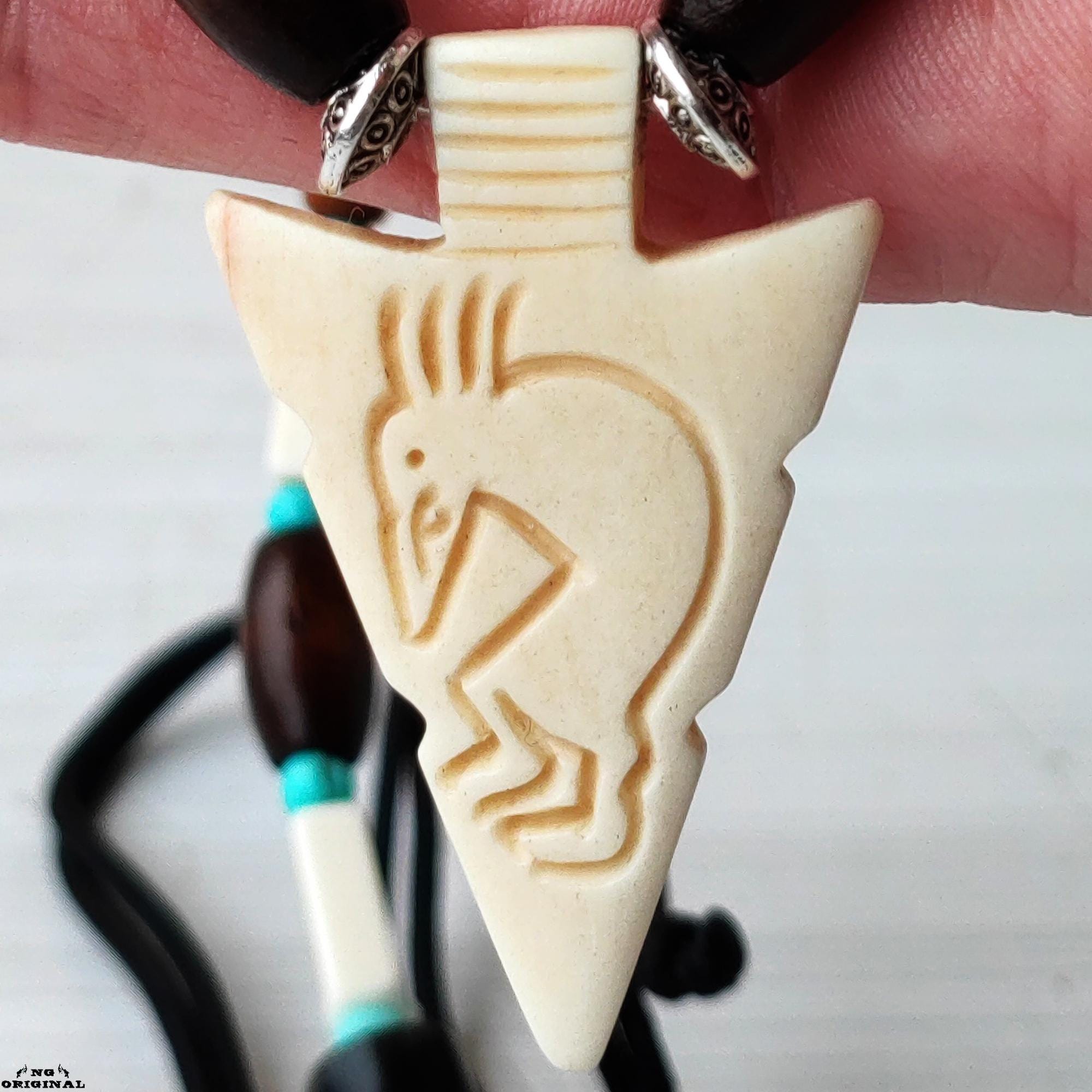 🎶 The arrowhead-shaped pendant features Kokopelli — the joyful spirit, musician, and messenger of fertility — embodying music, playfulness, and ancestral wisdom.