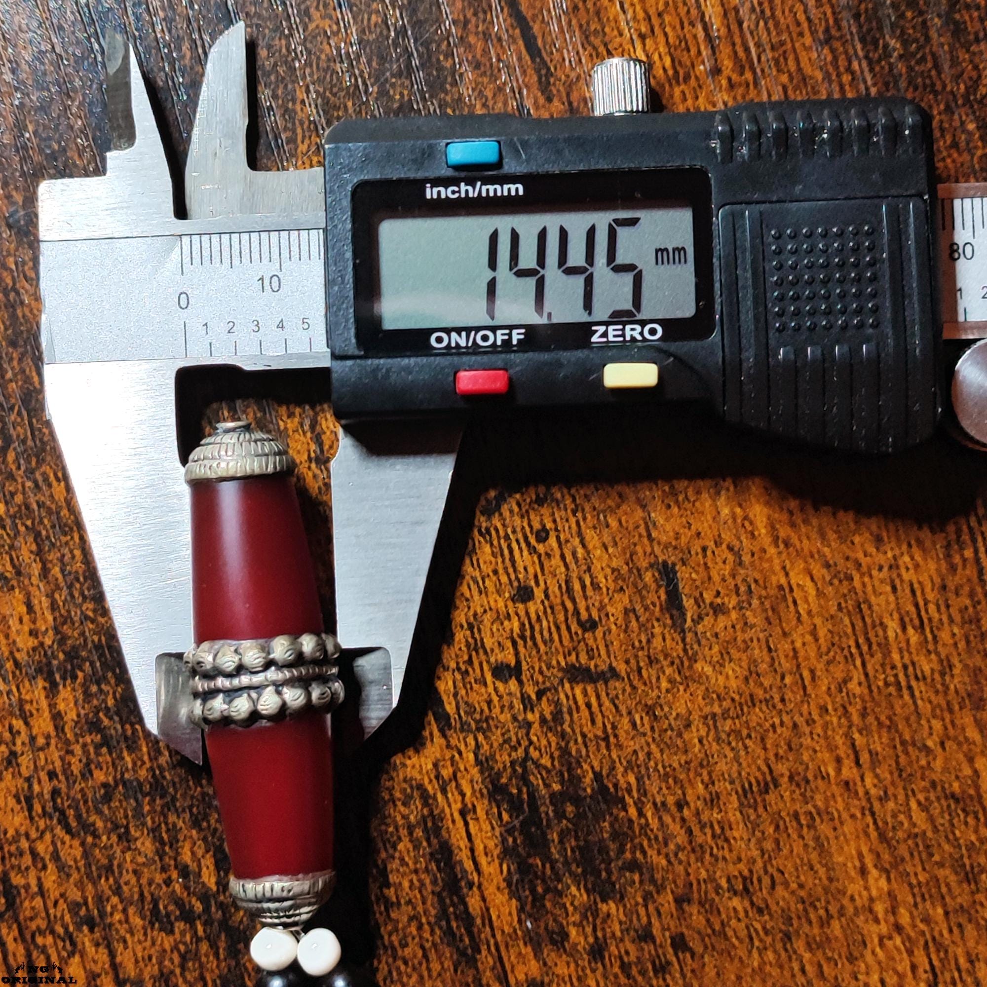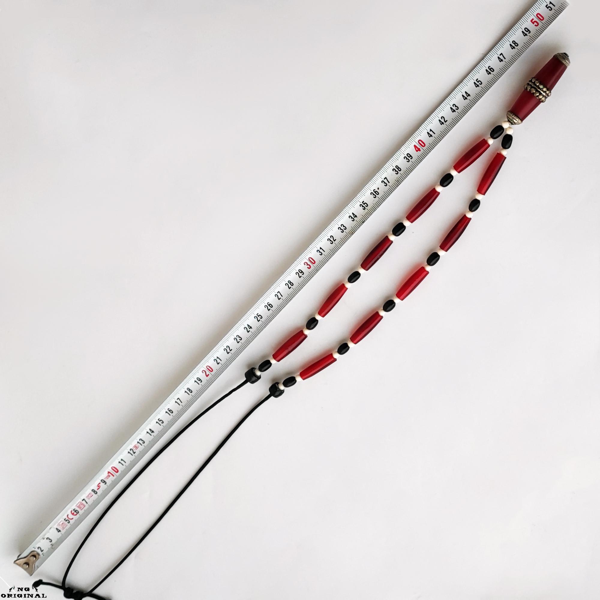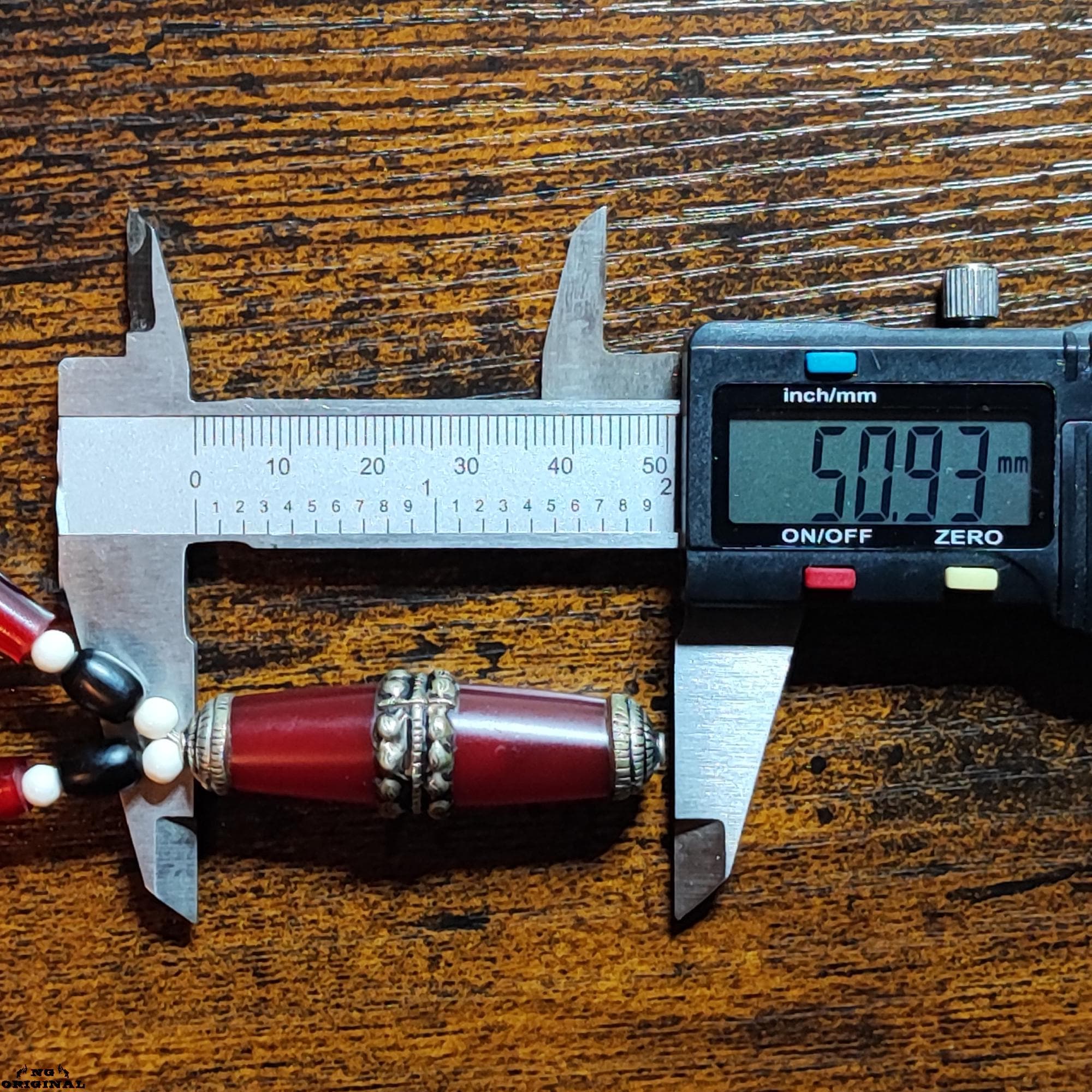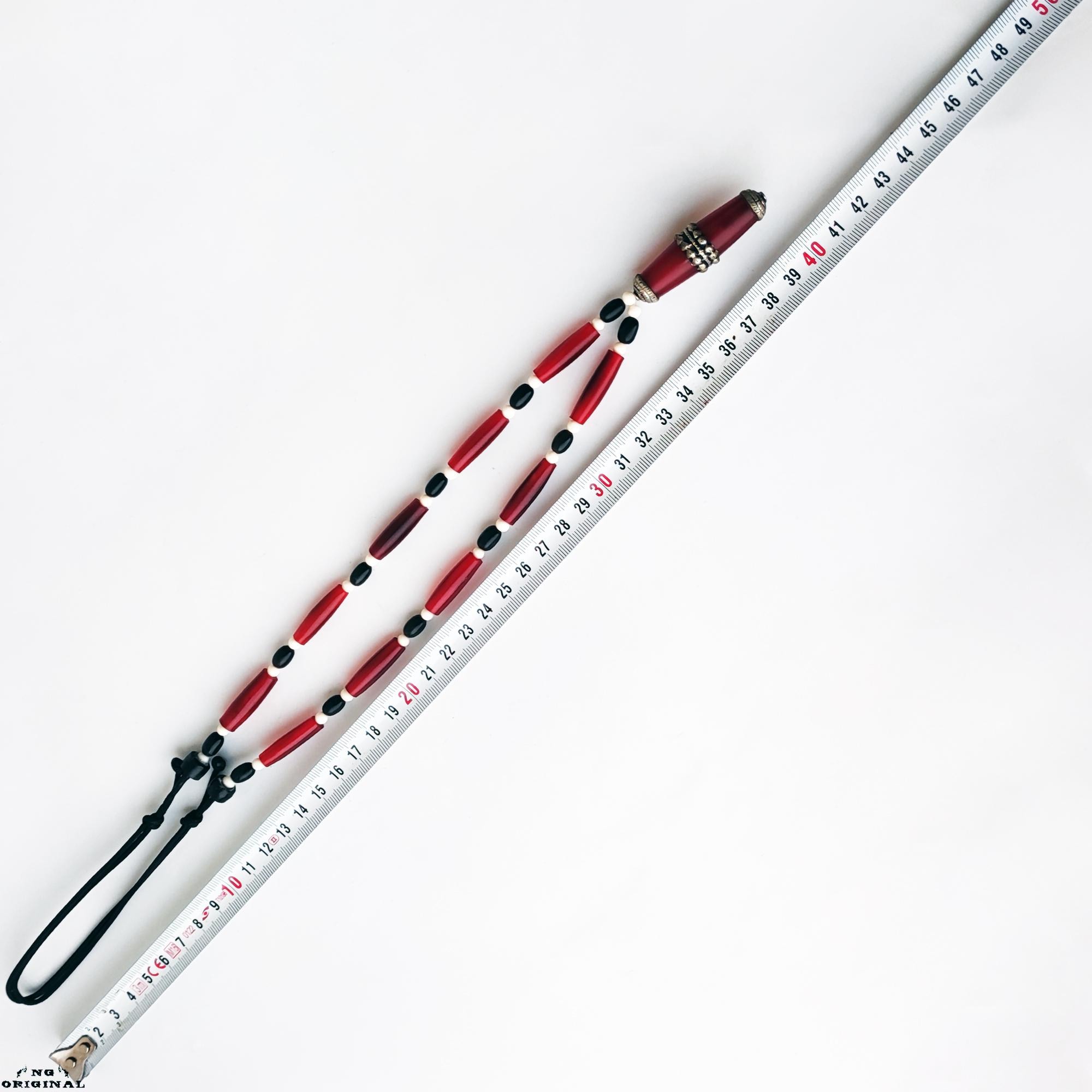 🔸 Sacred Materials: Oblong red agate pendant set in repoussé sterling silver, horn beads, dyed exotic wood, and black nylon cord — each element chosen for its beauty and energy.