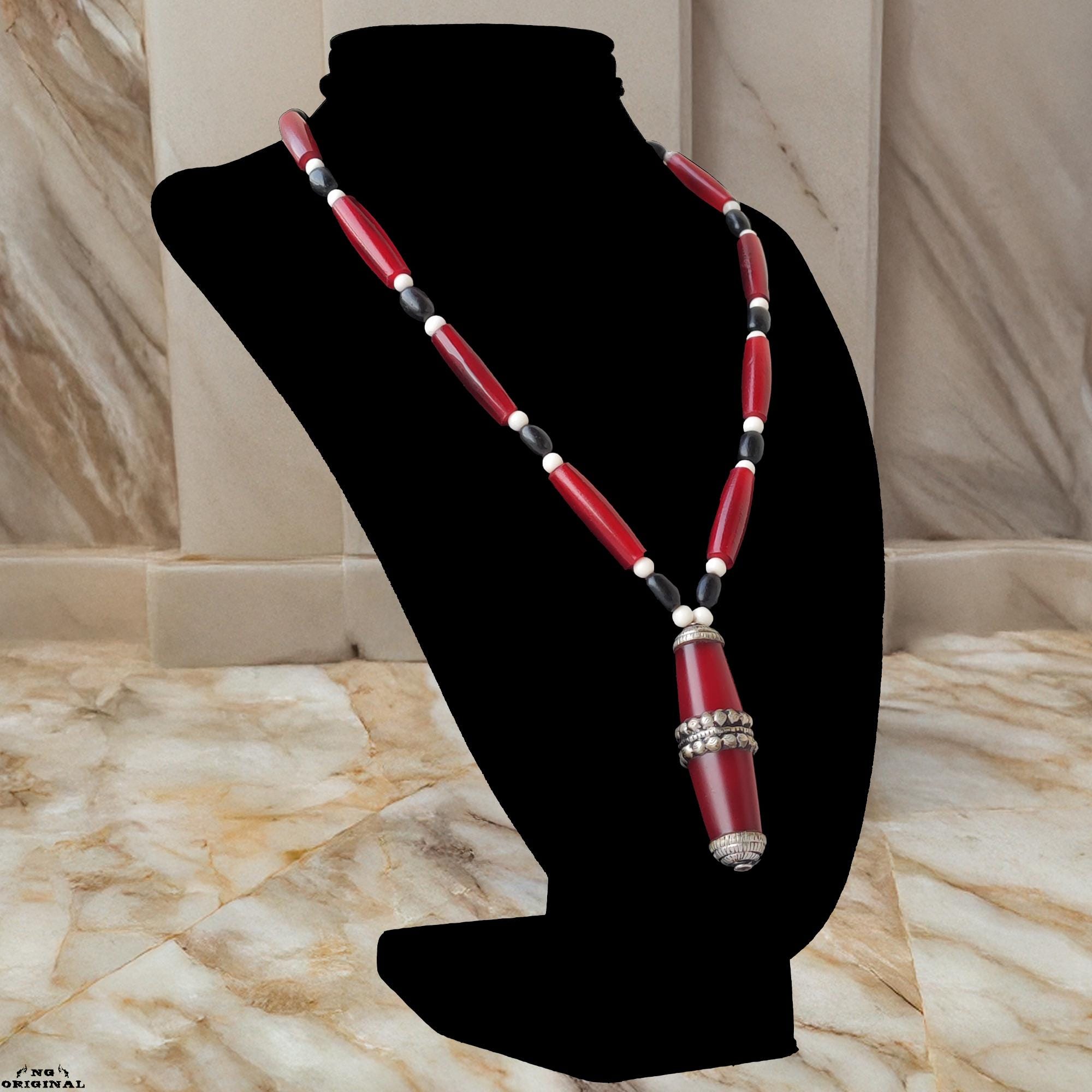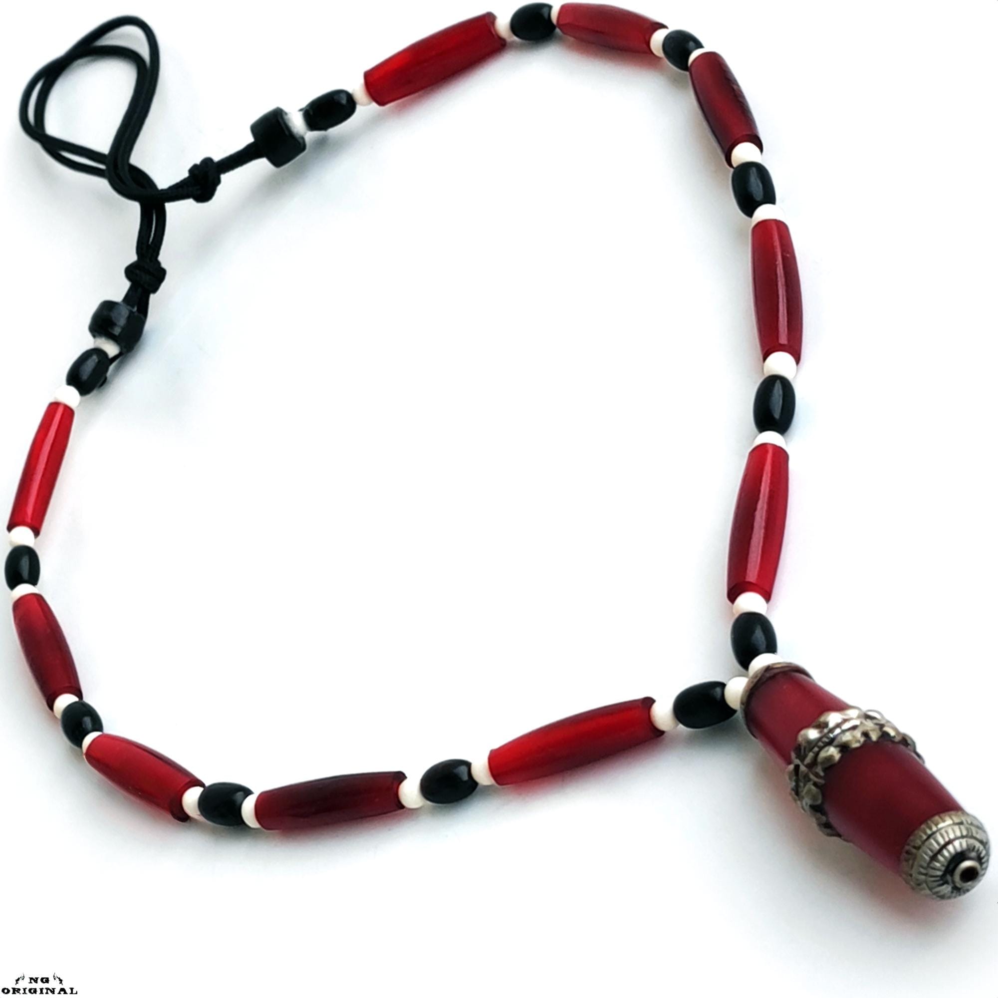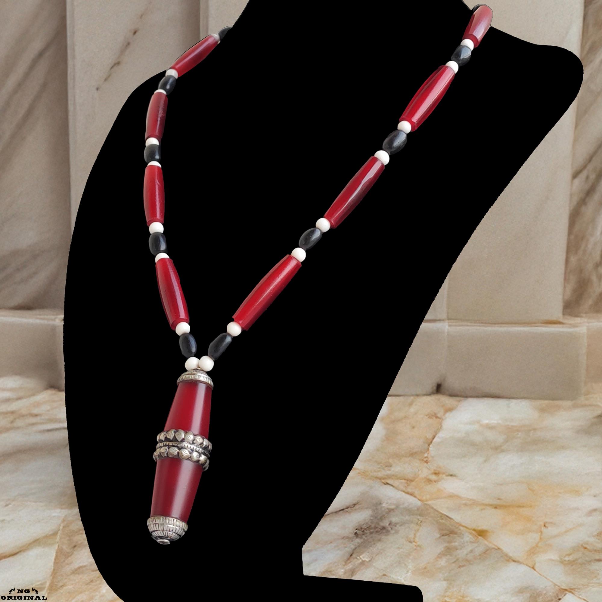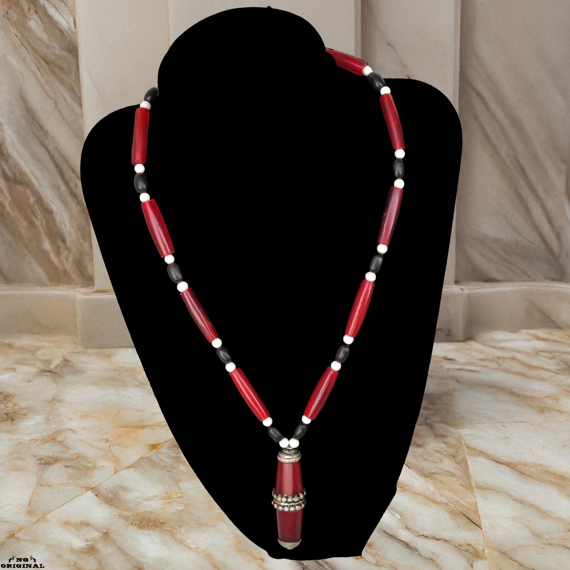 Native American Tribal Necklace Red Agate & Sterling Silver | Handmade Boho Jewelry | Unisex Spiritual Gift | Made in France