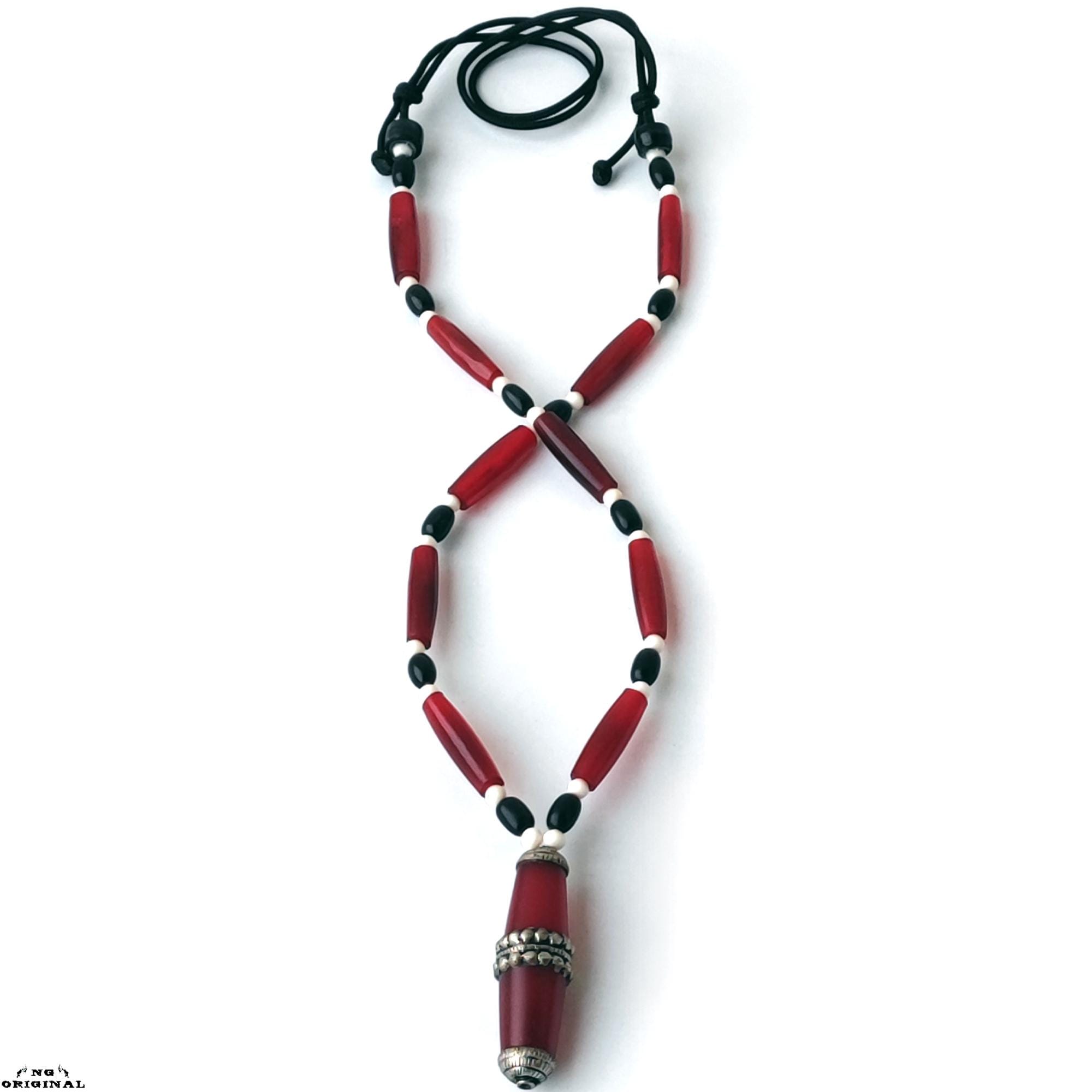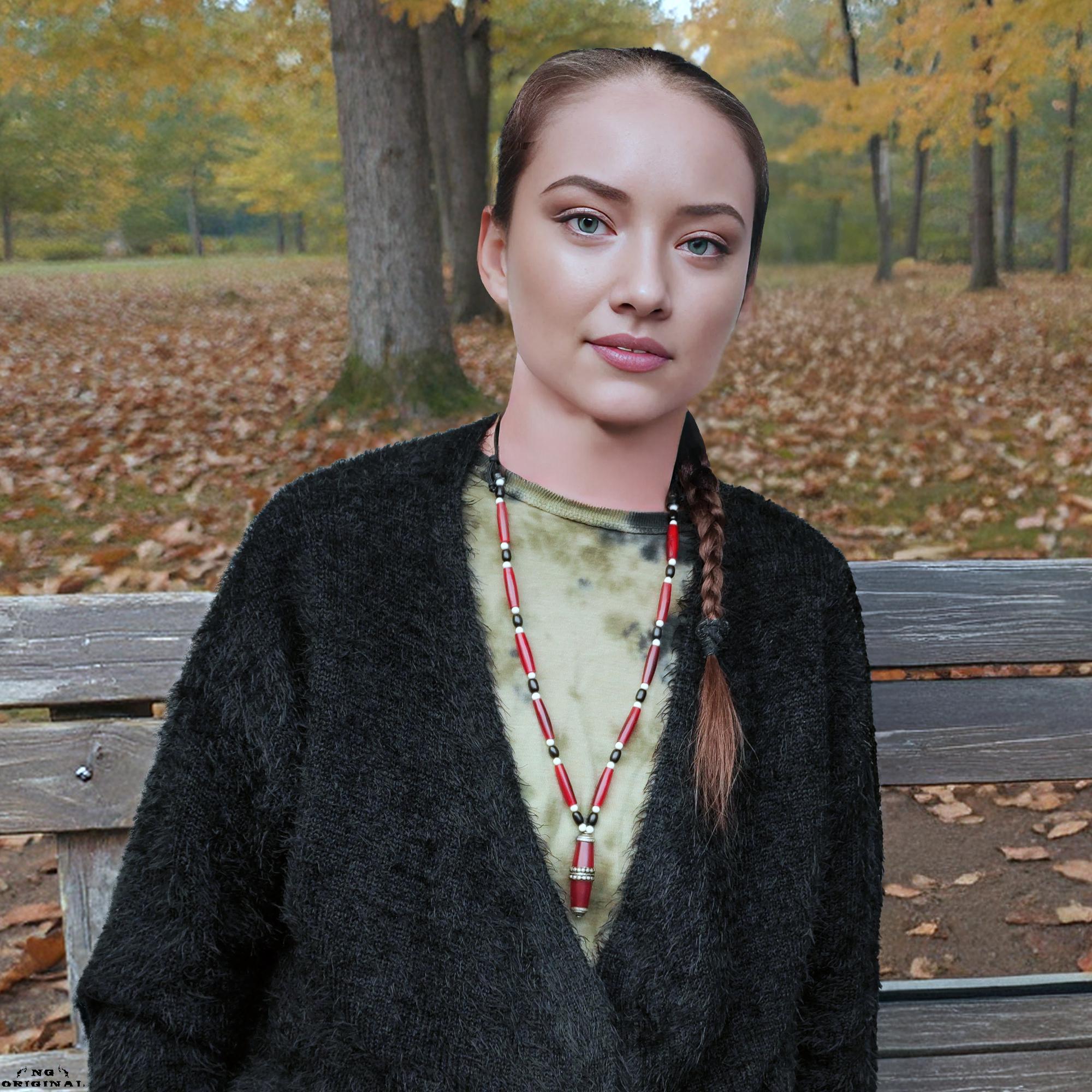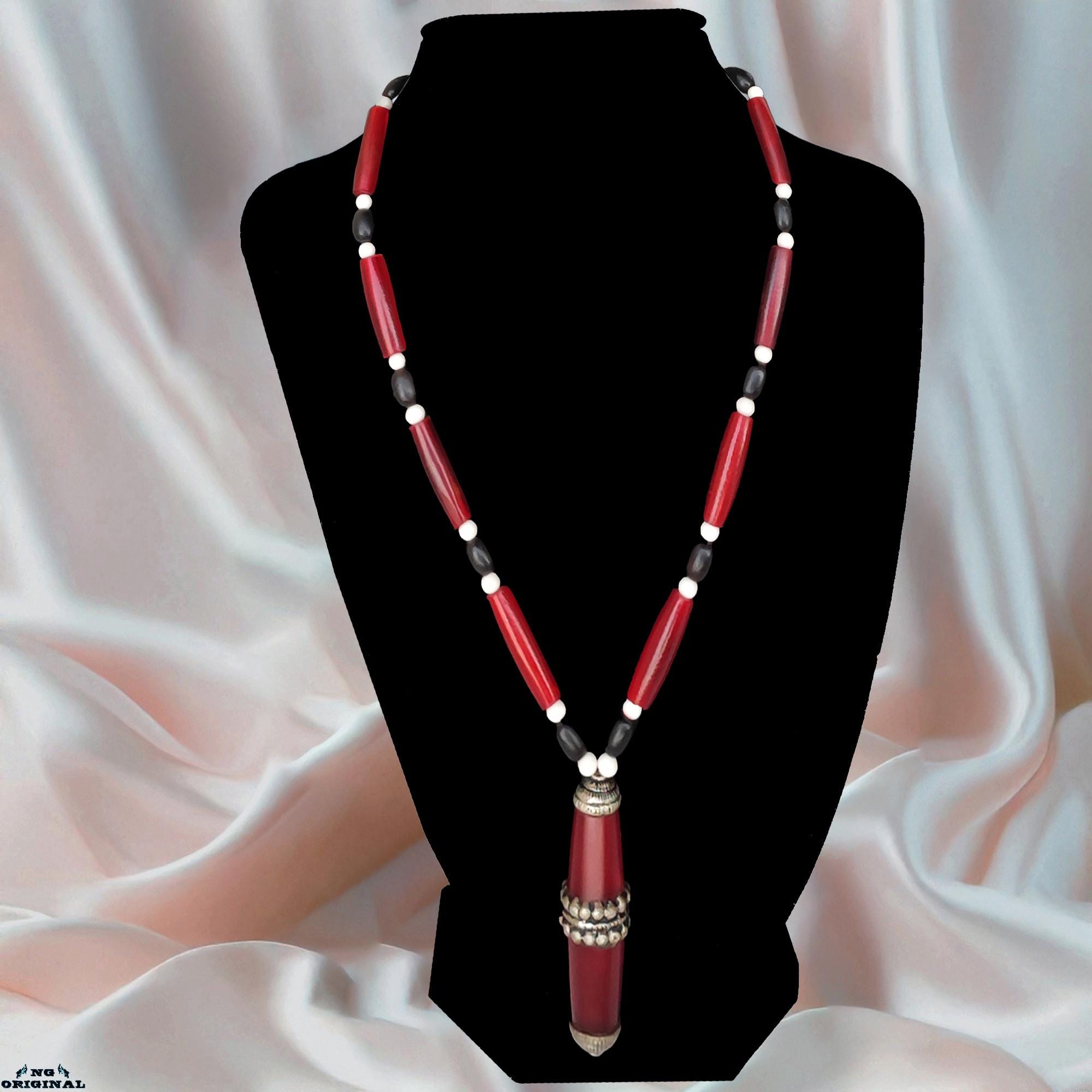 Native American Tribal Necklace Red Agate & Sterling Silver | Handmade Boho Jewelry | Unisex Spiritual Gift | Made in France