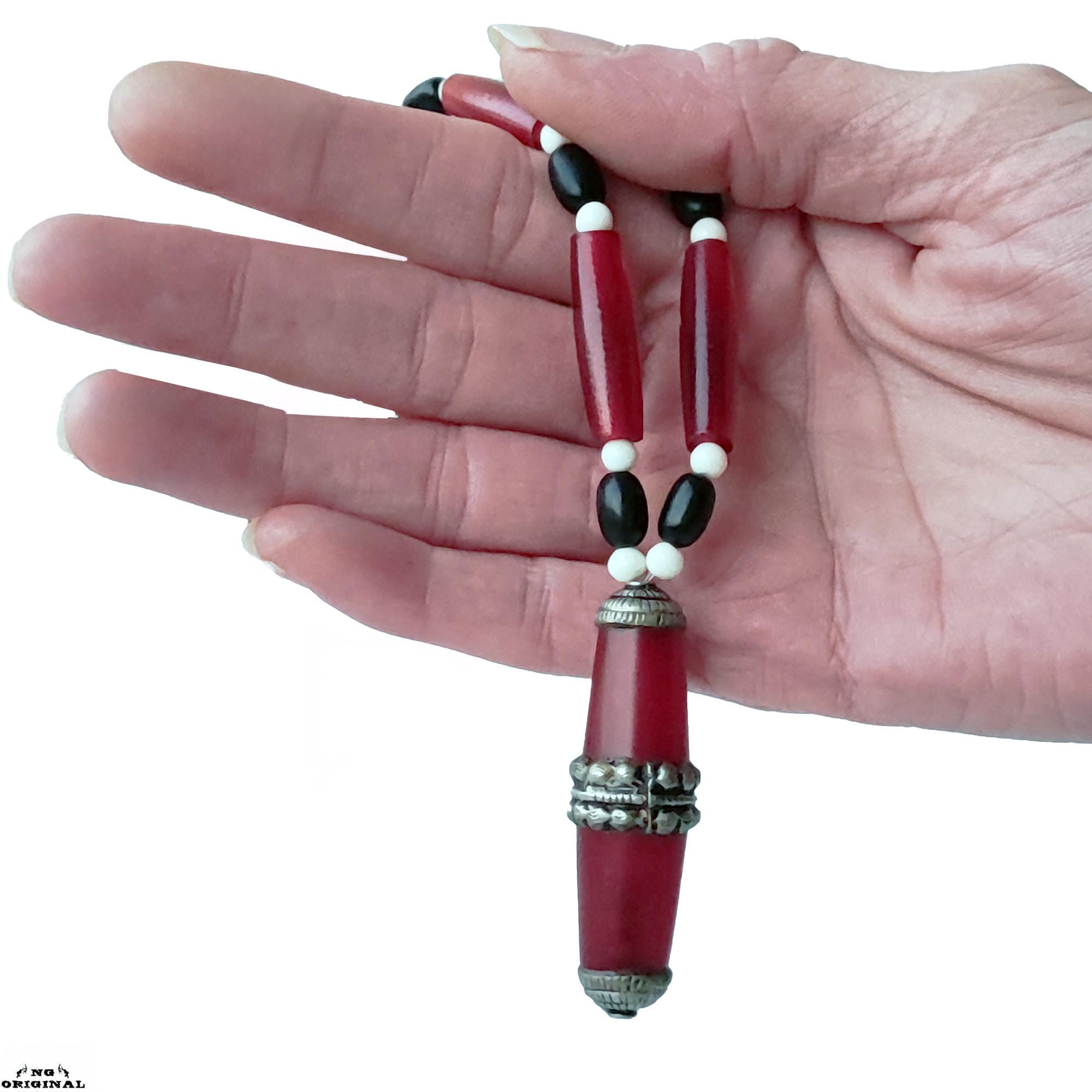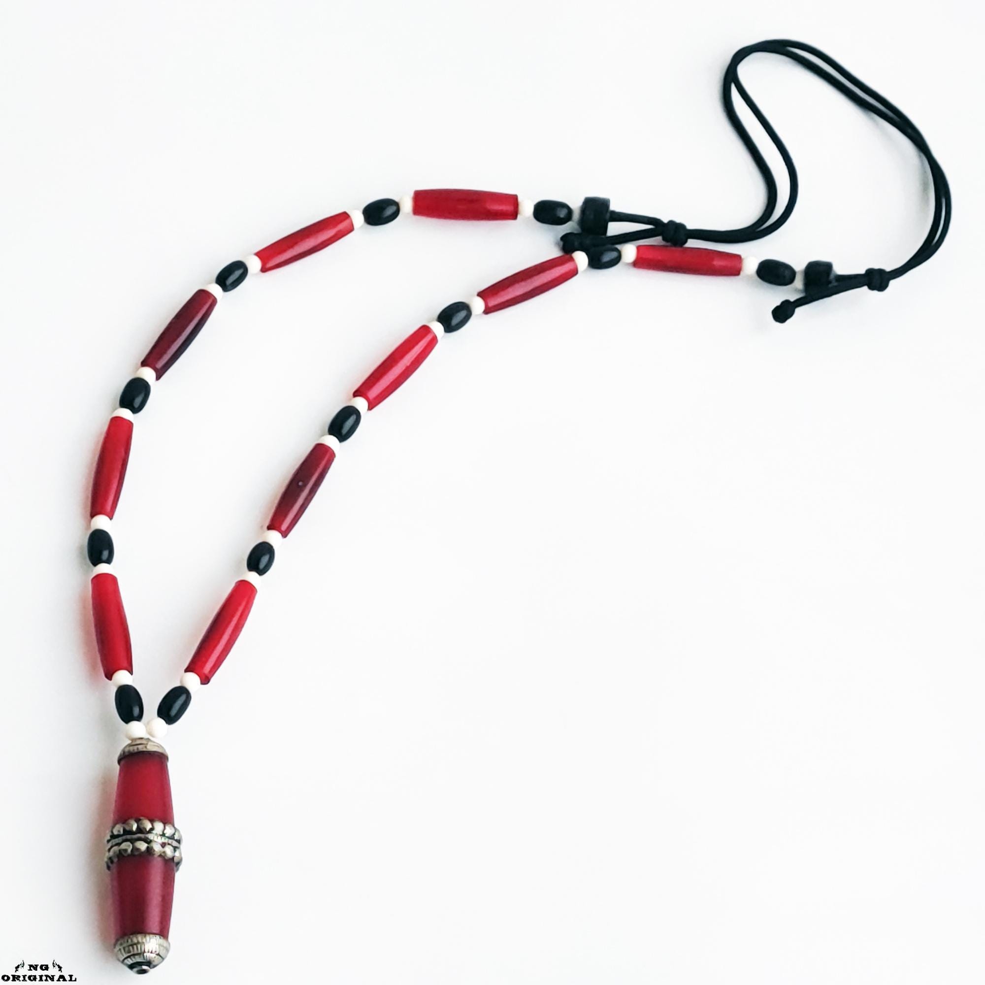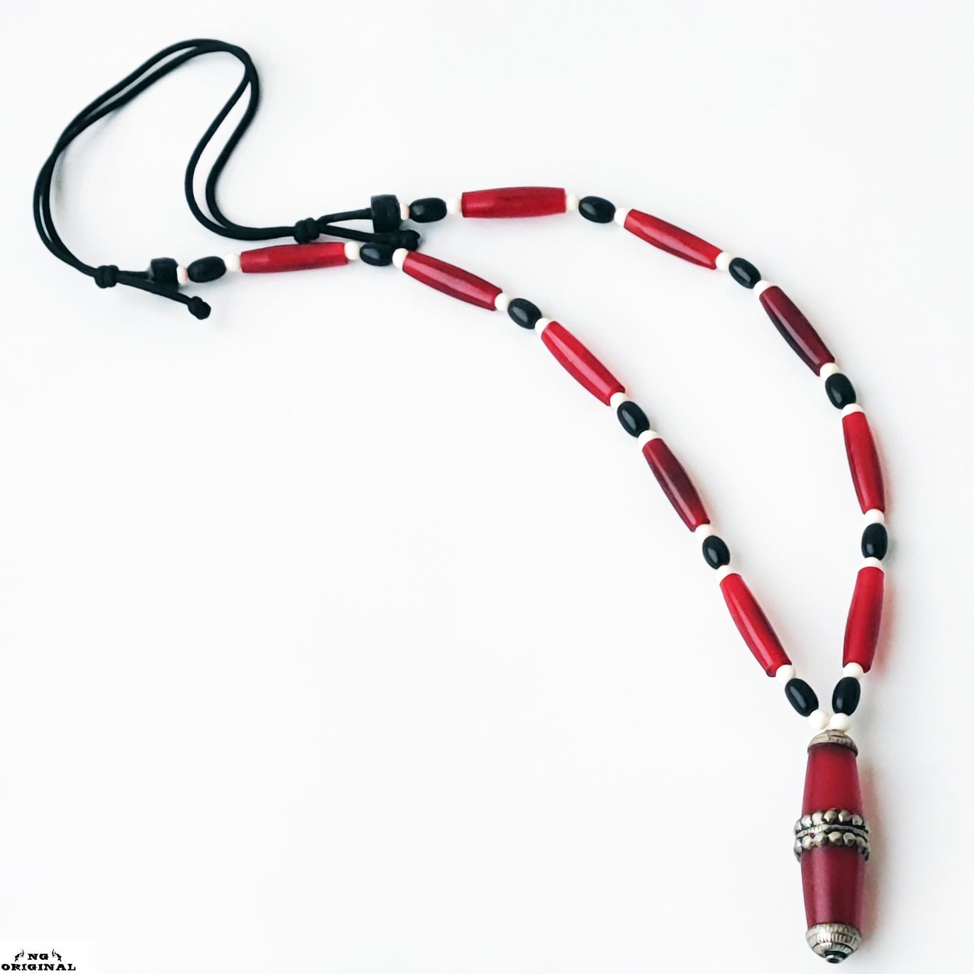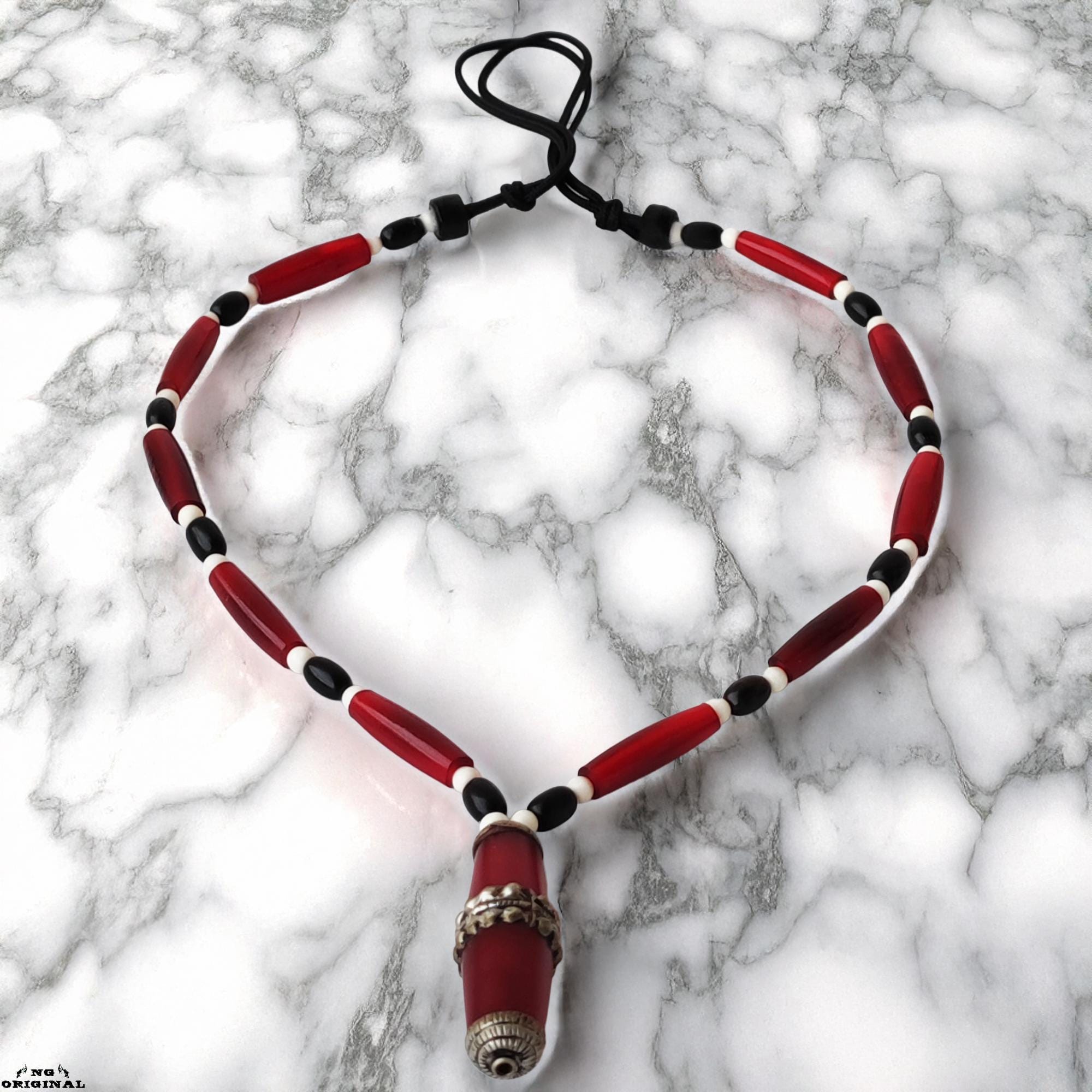 Native American Tribal Necklace Red Agate & Sterling Silver | Handmade Boho Jewelry | Unisex Spiritual Gift | Made in France