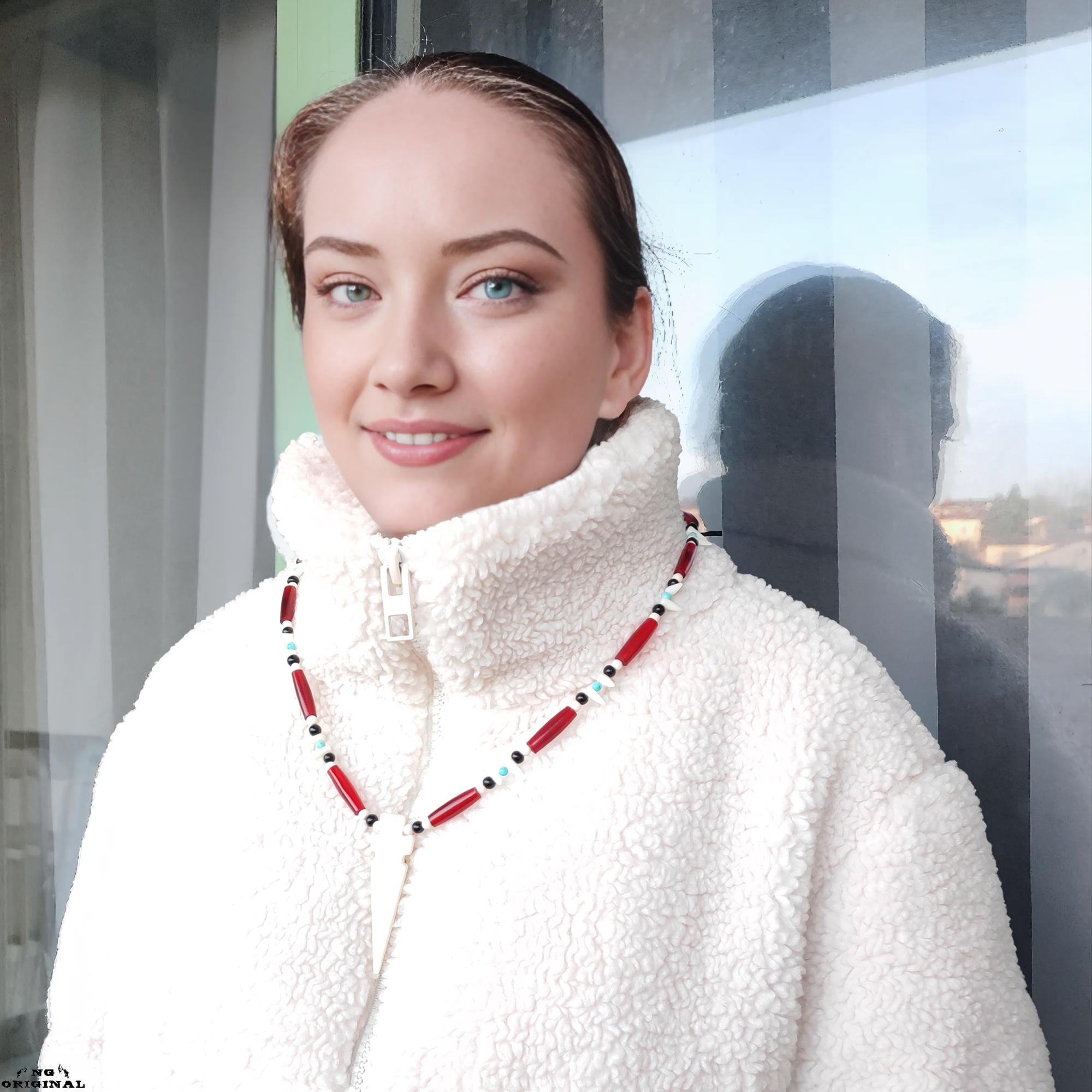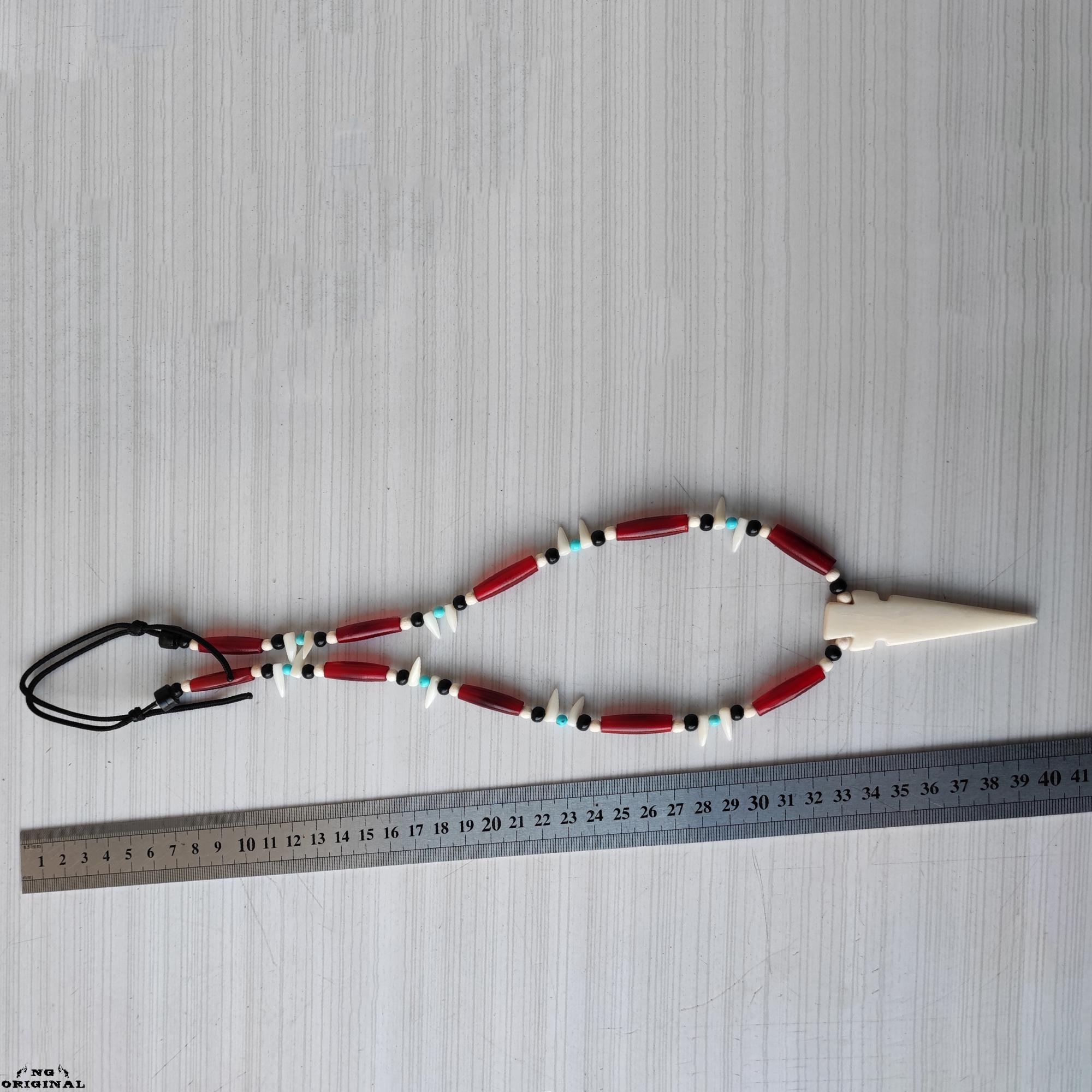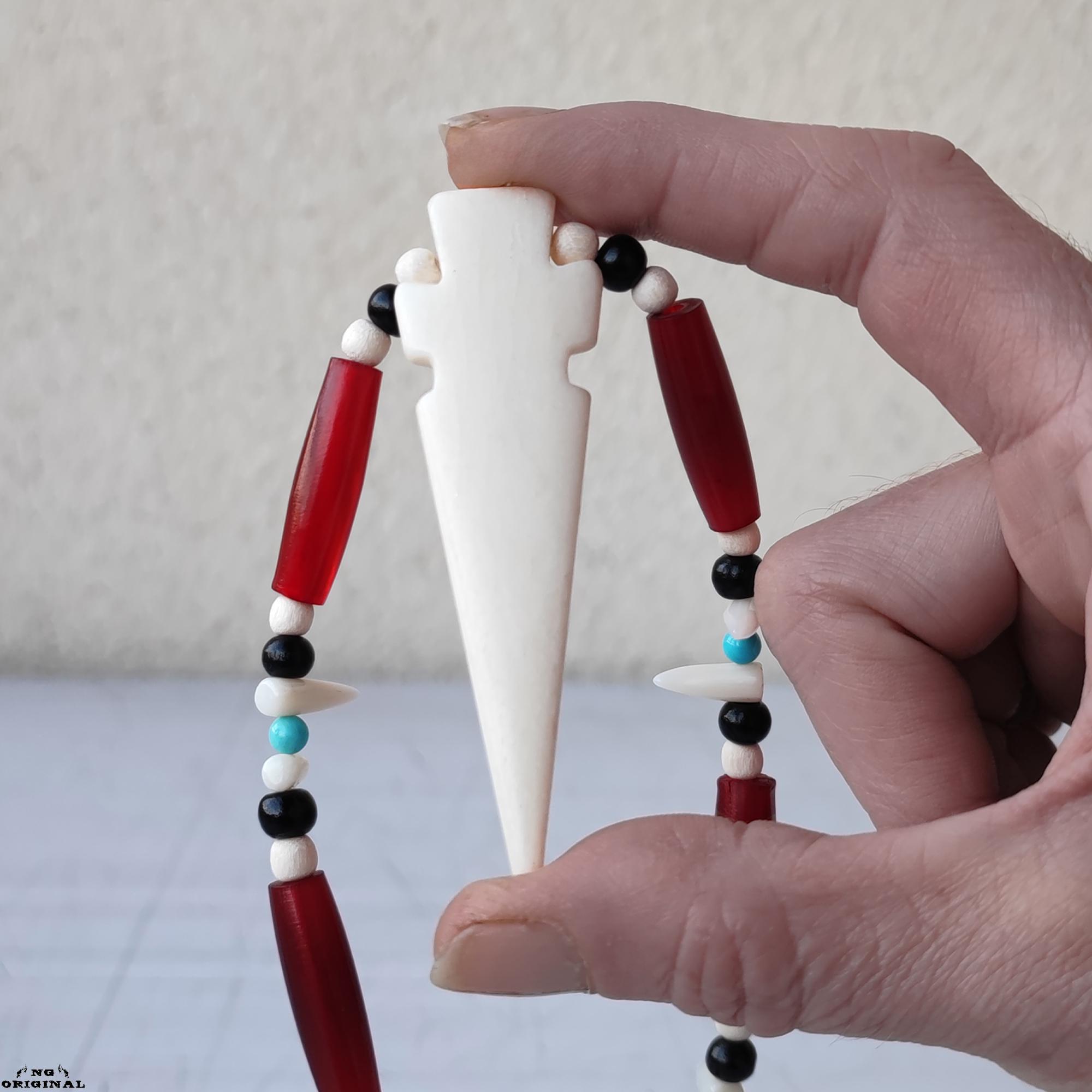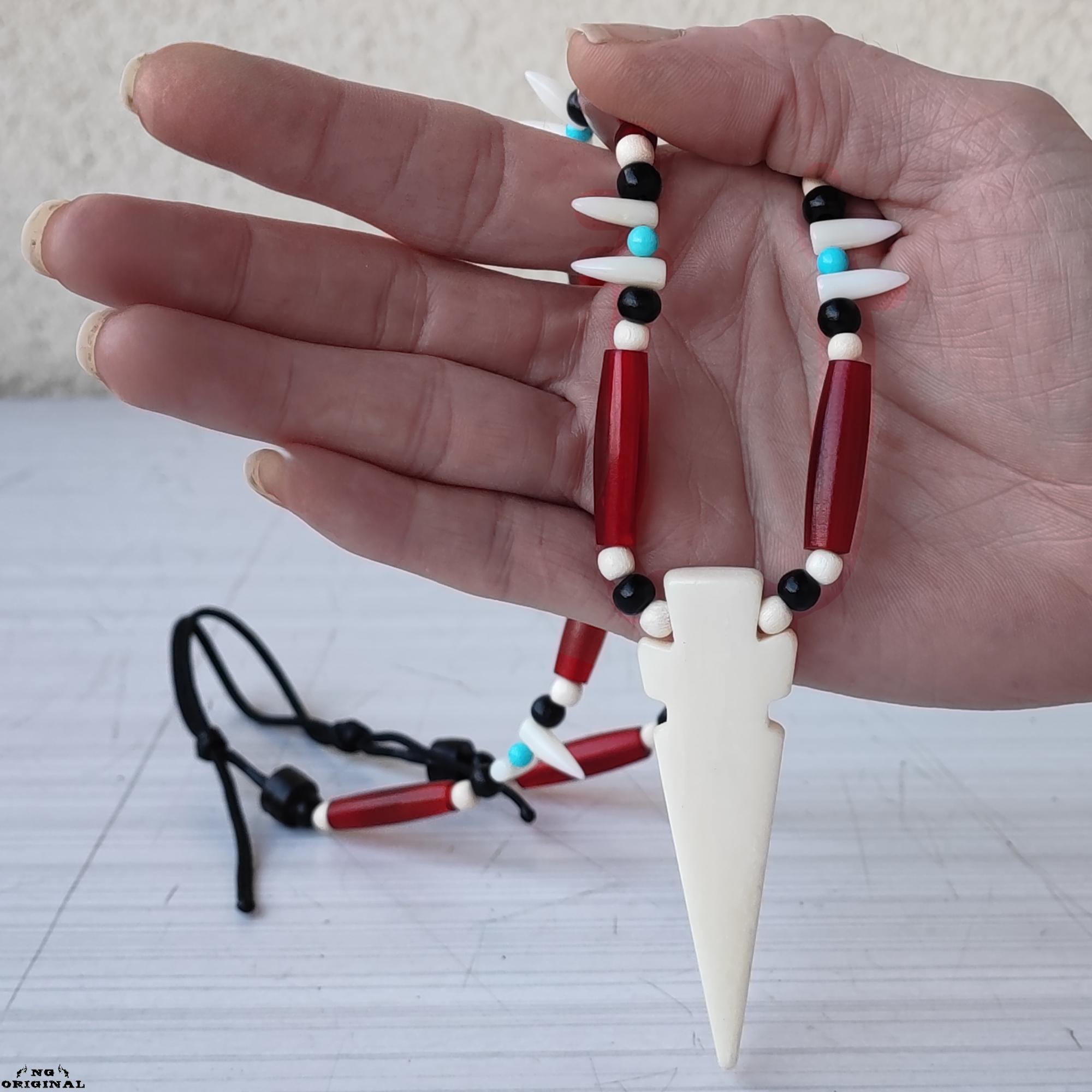 White coral spikes 🌊 🔸 Dimensions: Arrowhead-shaped bone pendant (74 × 24 mm), adjustable necklace length (40–45 cm). 🔸 Symbolism: Strength, wisdom, inner freedom 🌌. Each bead tells a story, each detail evokes an ancestral ritual.