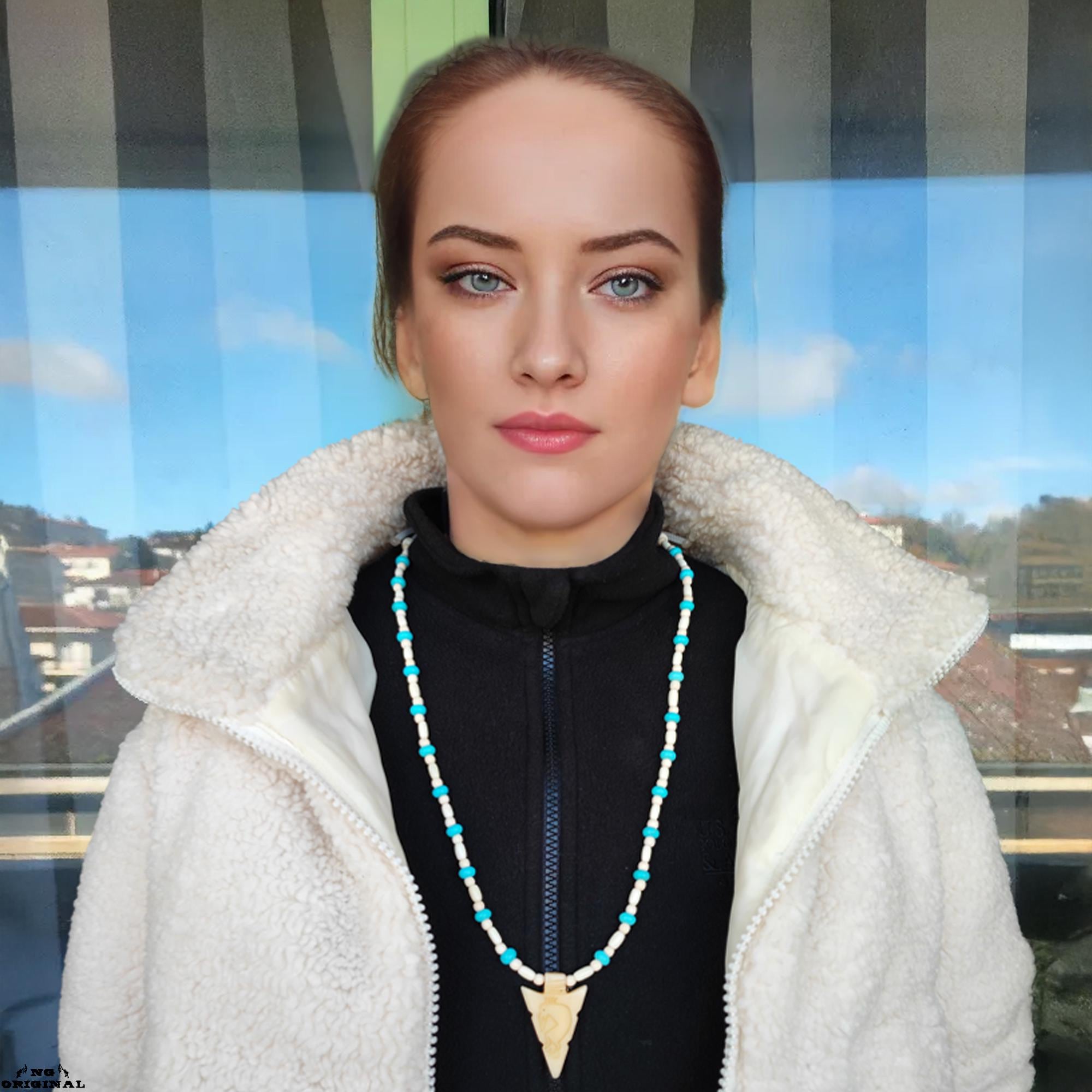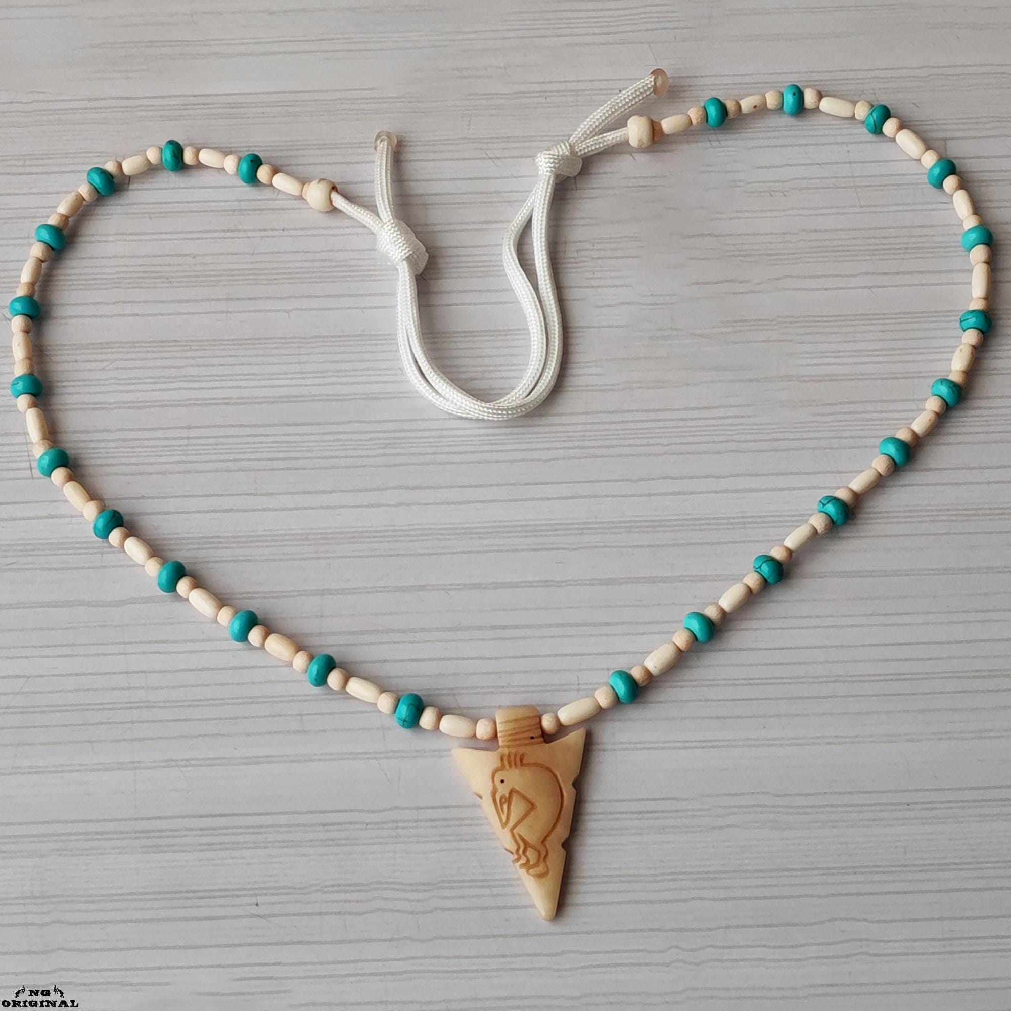 ✨ Step into the sacred world of Native American symbolism with this handcrafted turquoise necklace featuring a beautifully carved Kokopelli pendant. Each piece is made by hand in France using natural materials: genuine turquoise, carved bone, wood beads, and a detailed Kokopelli figure, known as the bringer of joy, music, abundance, and protection.