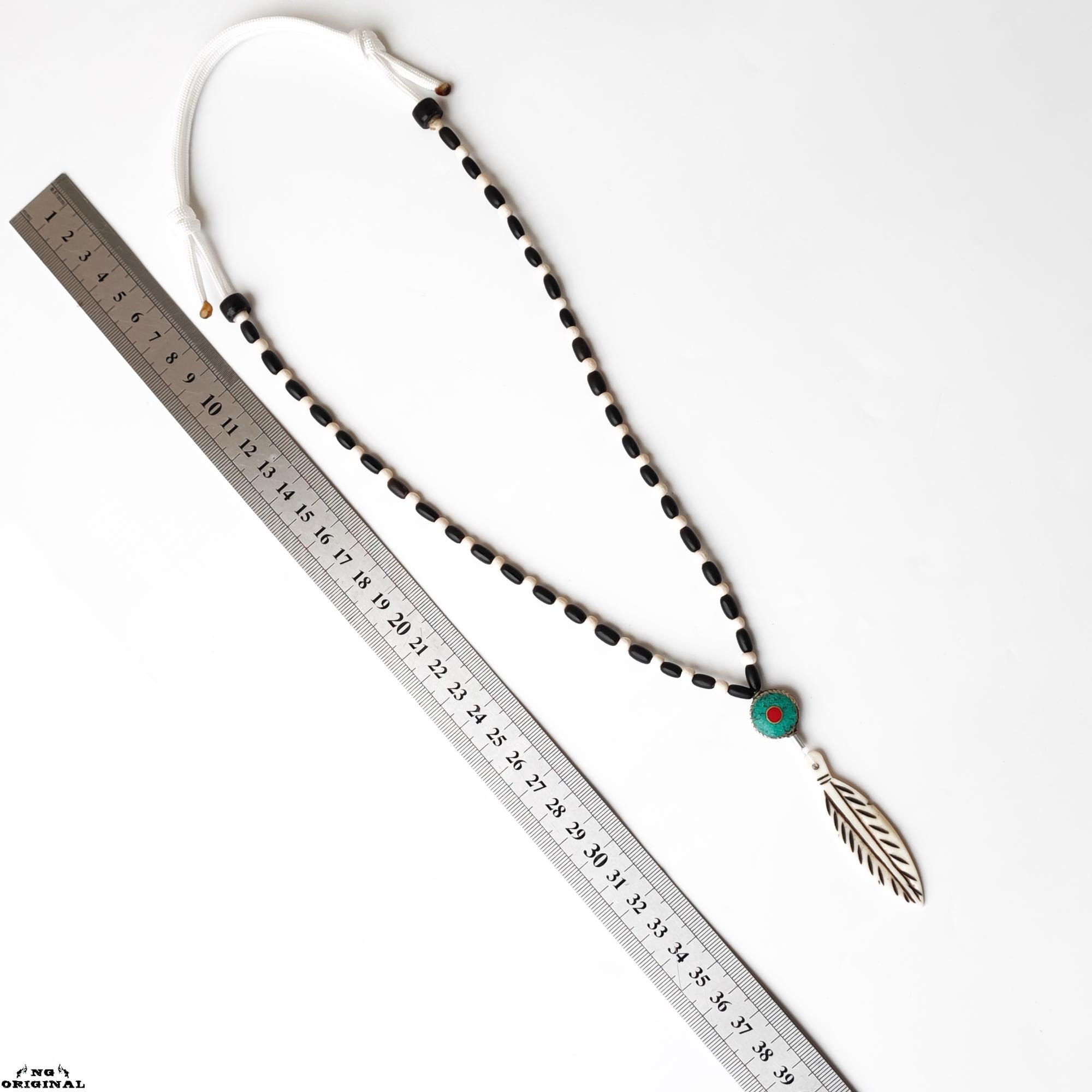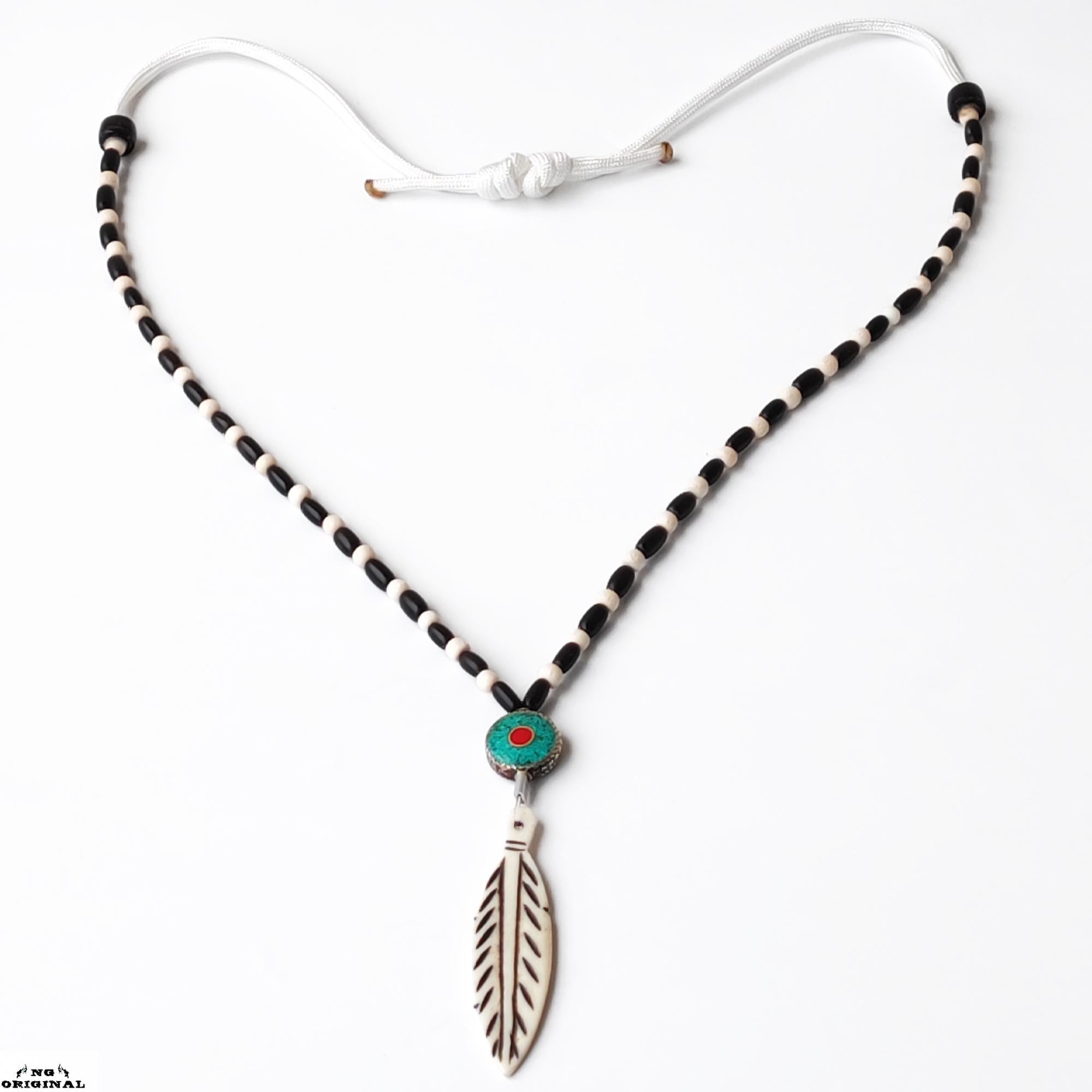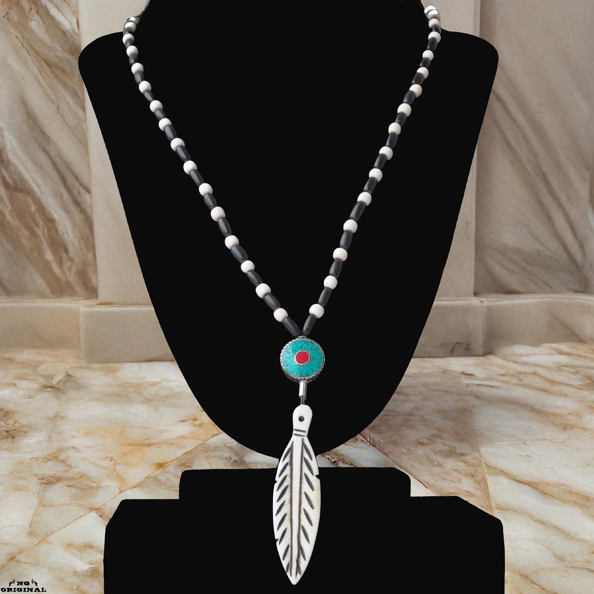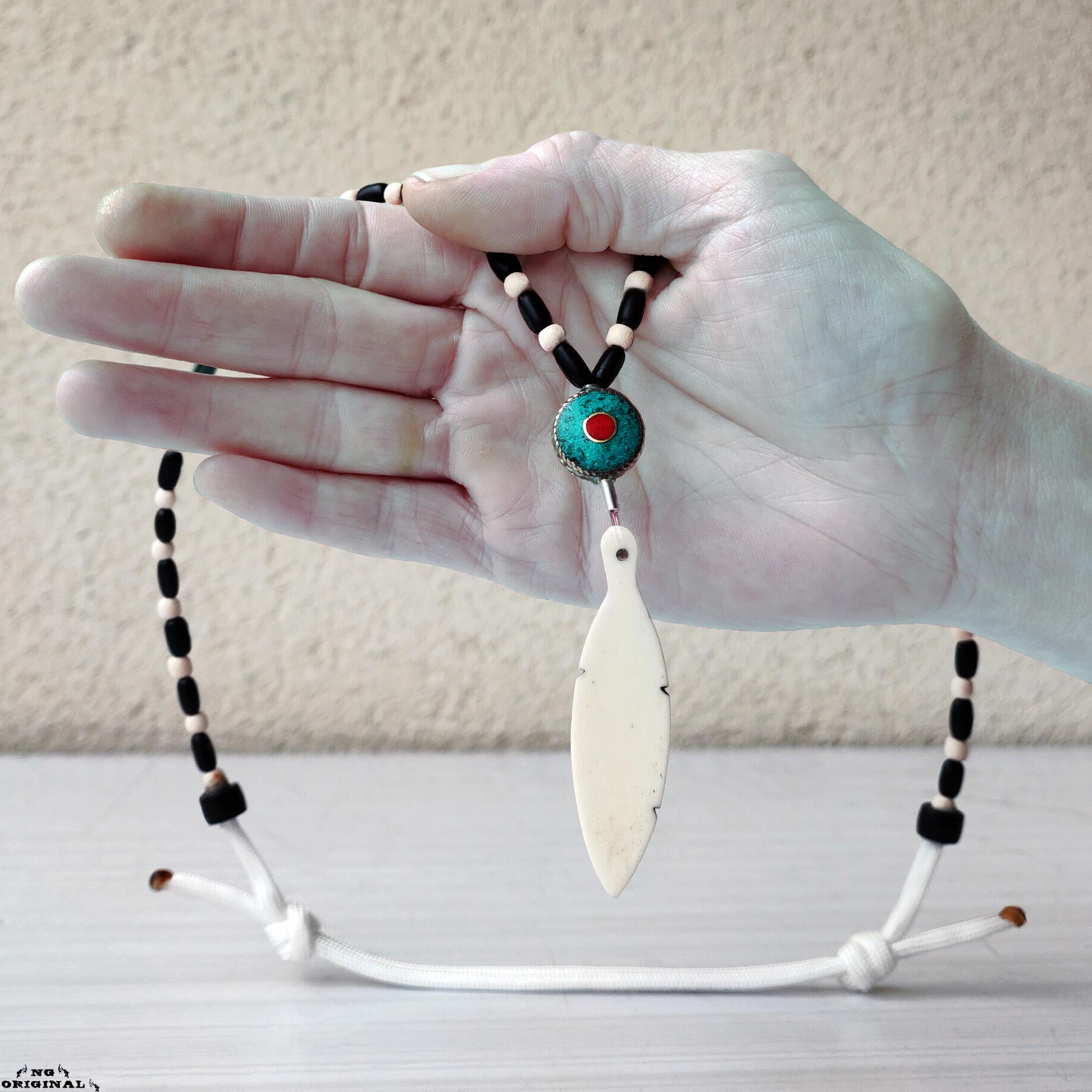 Handmade Native American Necklace • Bone Feather Pendant • Turquoise Coral Beads • Shamanic Protection • Boho Unisex Jewelry