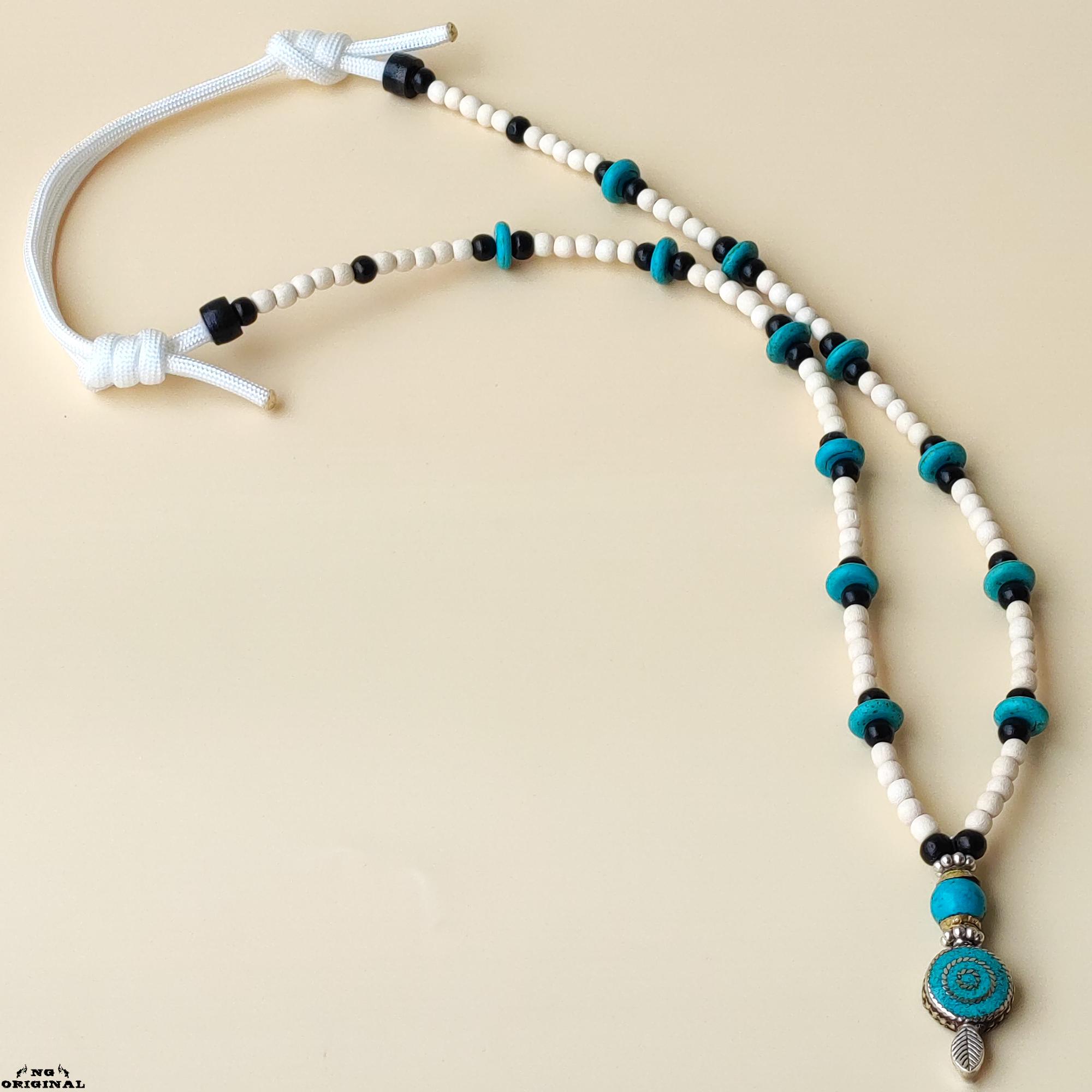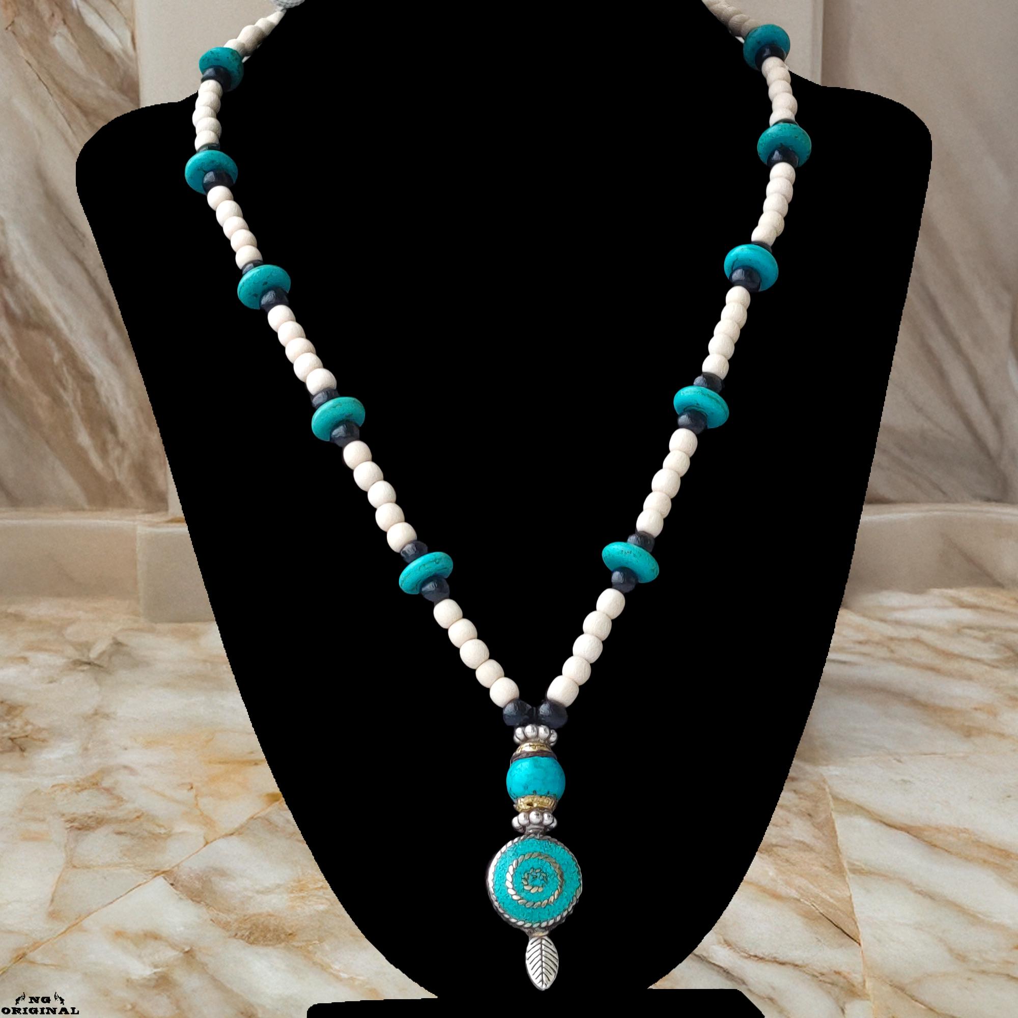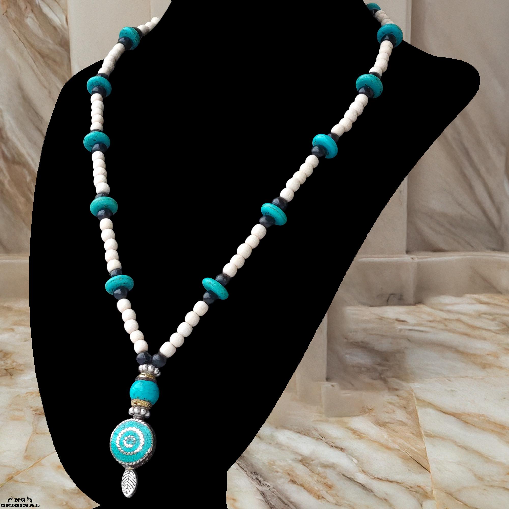 Boho Native American Necklace • Tibetan Turquoise & Brass Pendant • Handmade Tribal Spiritual Jewelry • Ethnic Gift
