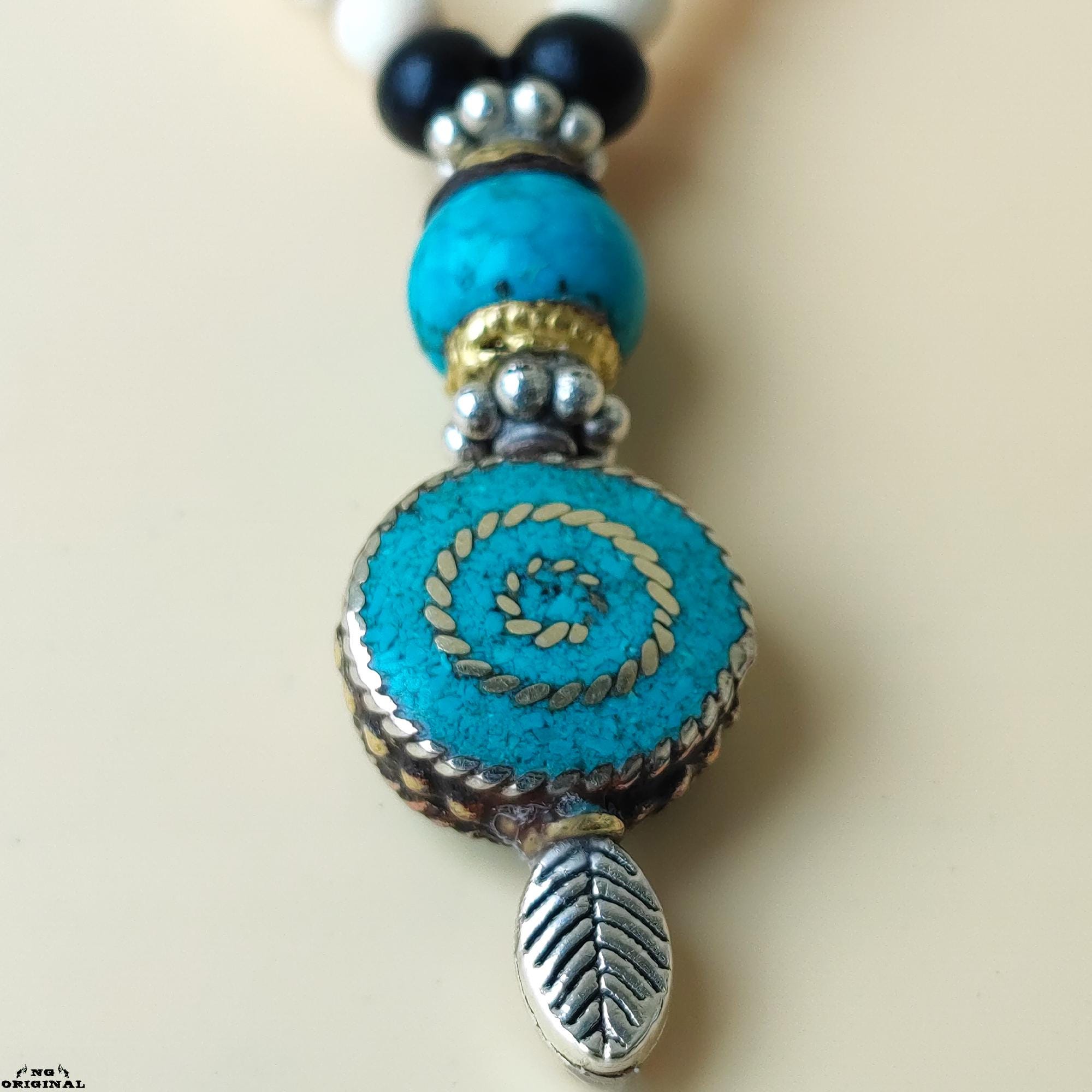 The Tibetan pendant made of natural turquoise and brass radiates calm, balance, and deeply soothing spiritual energy.