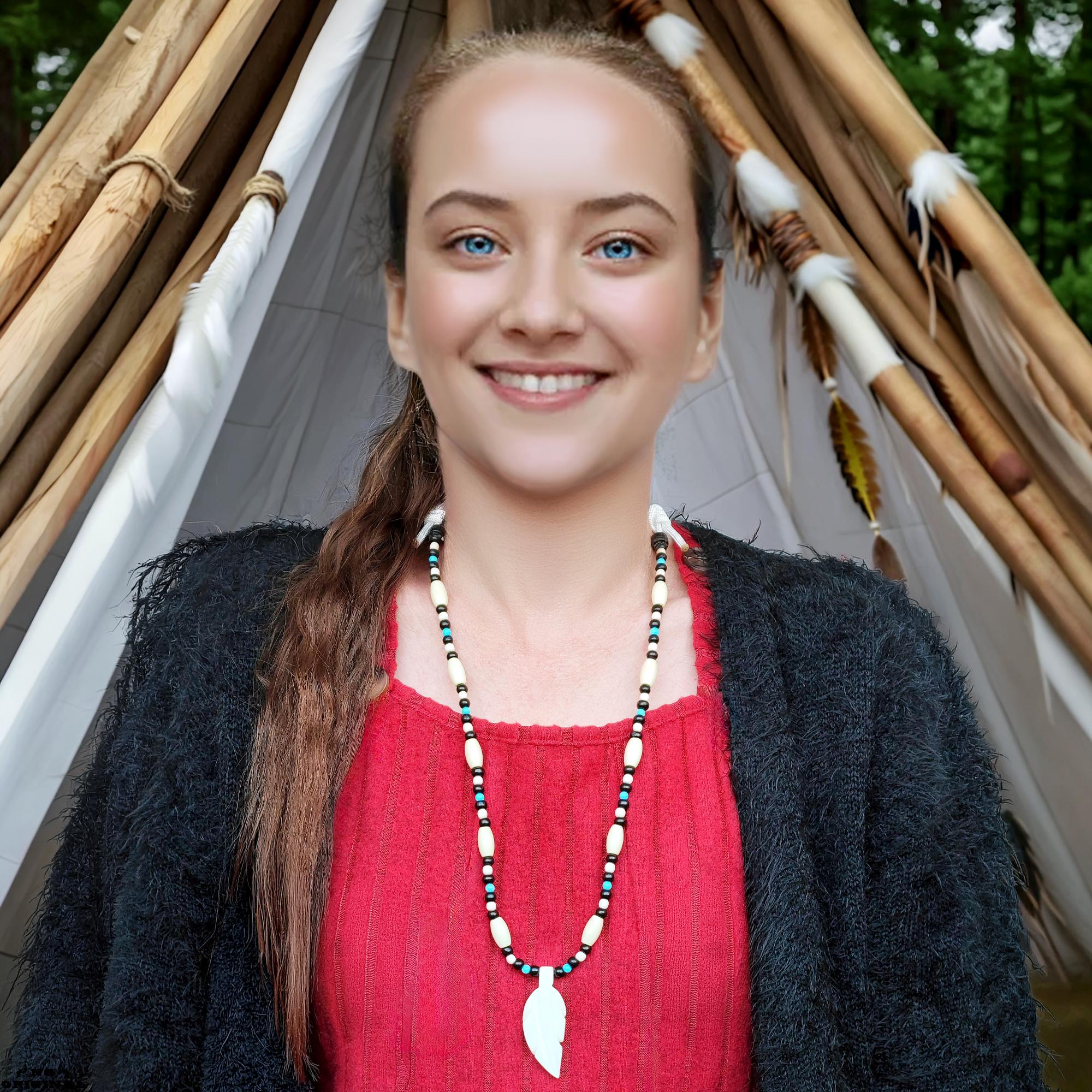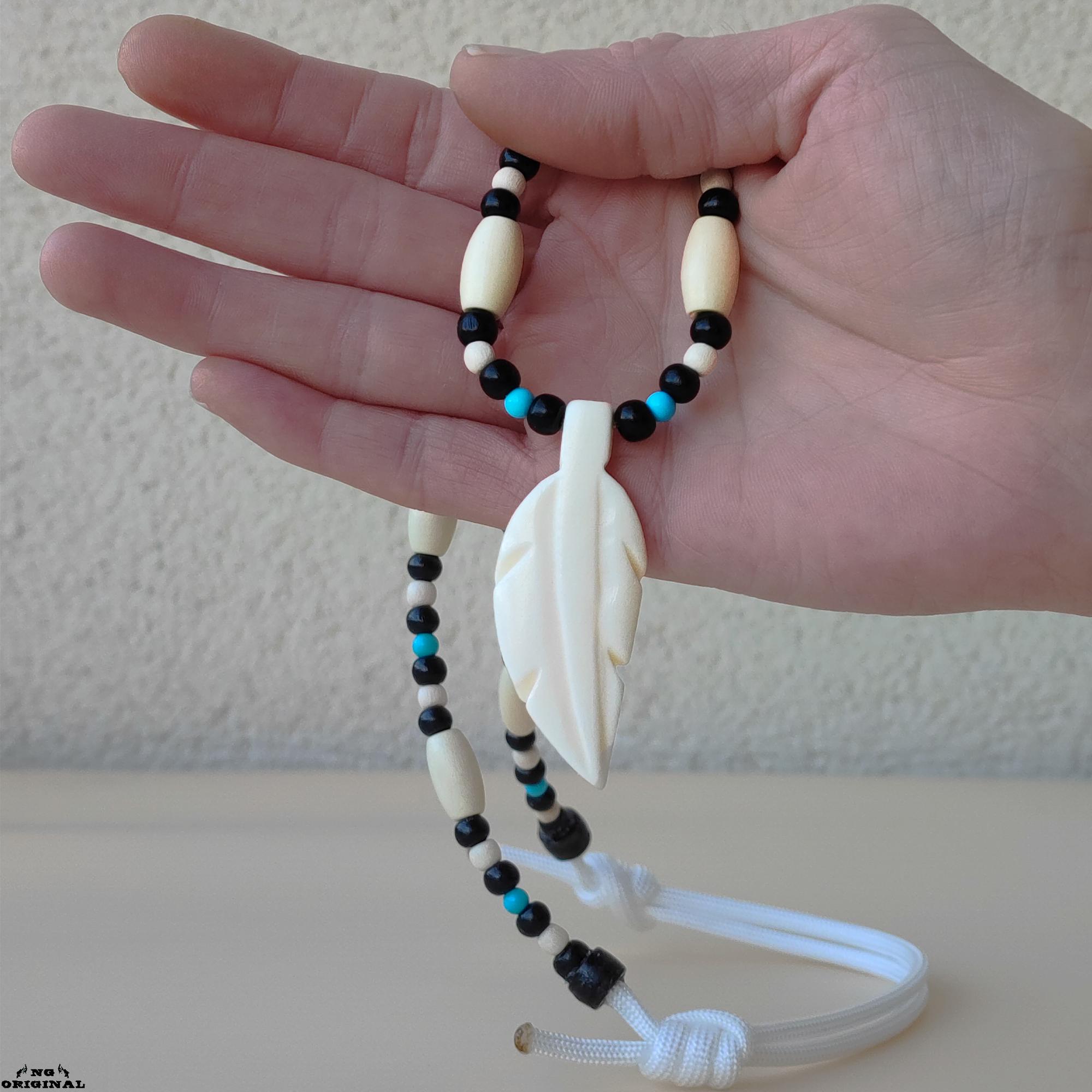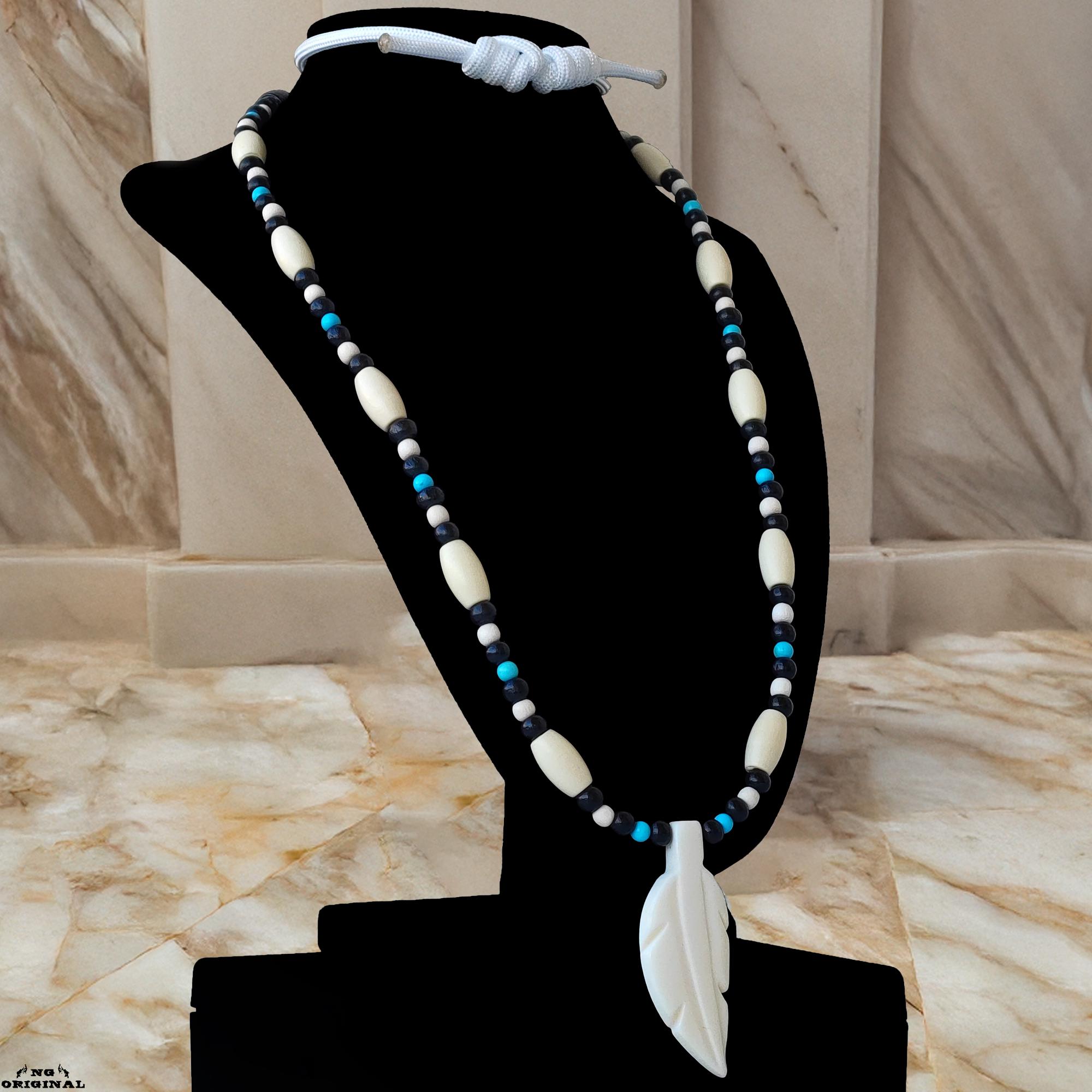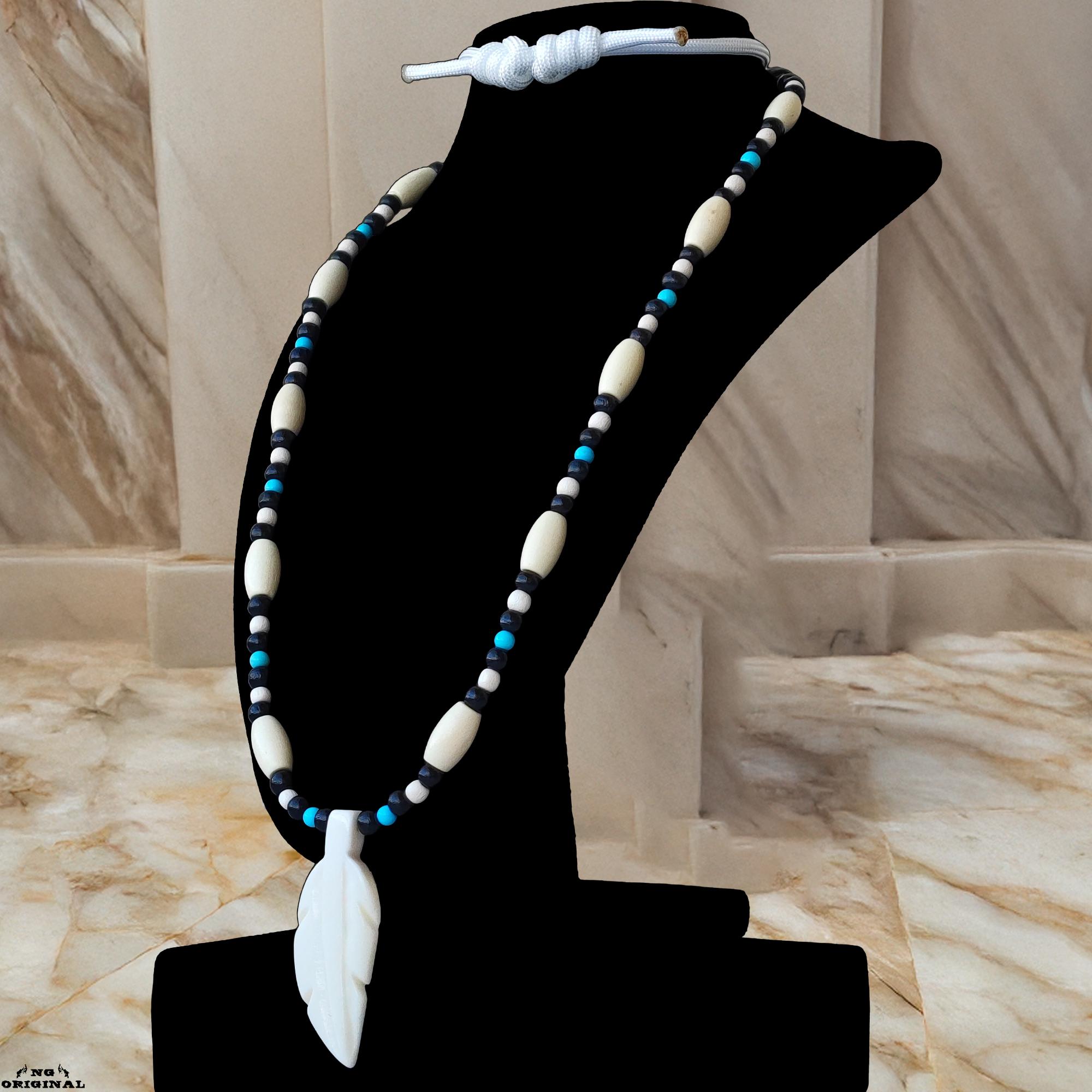 Handmade Native Tribal Necklace • Bone Feather Pendant • Natural Turquoise • Shamanic Protection Talisman • Unisex Boho Jewelry