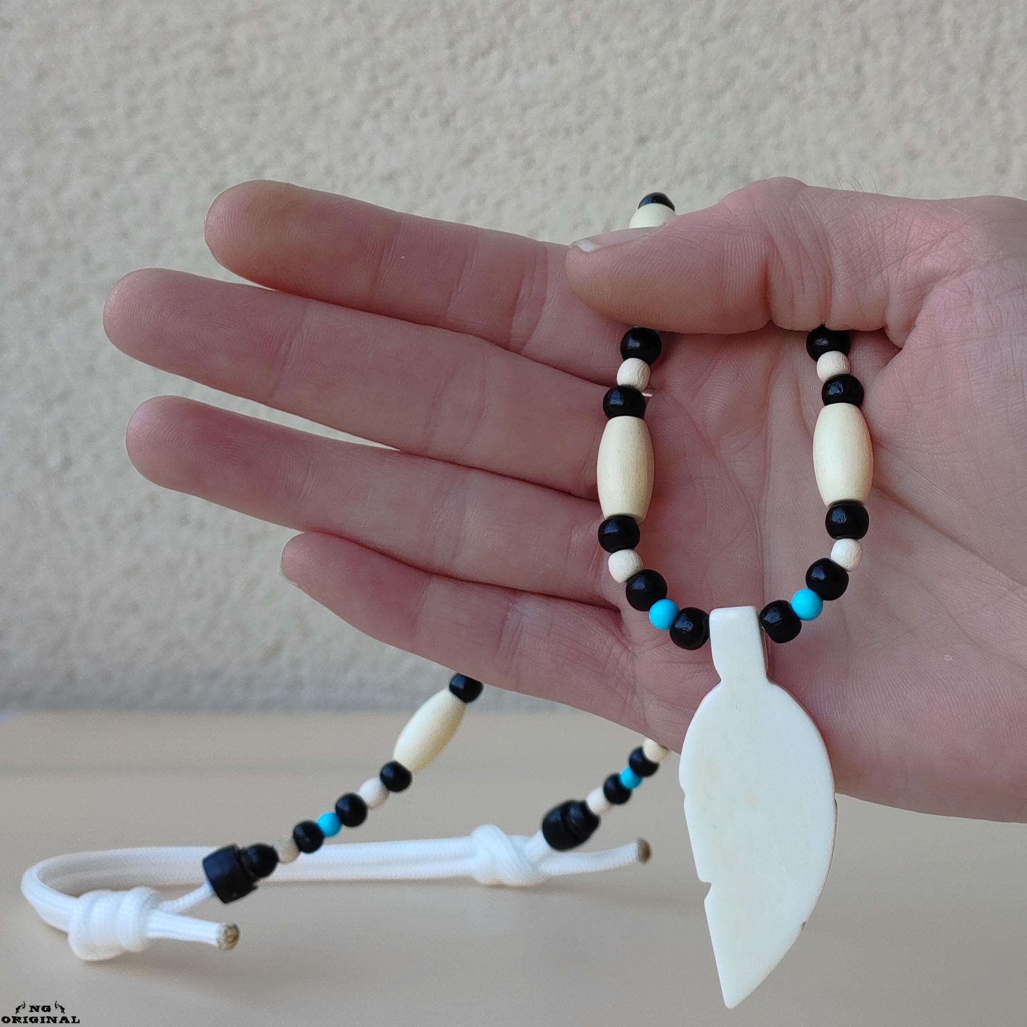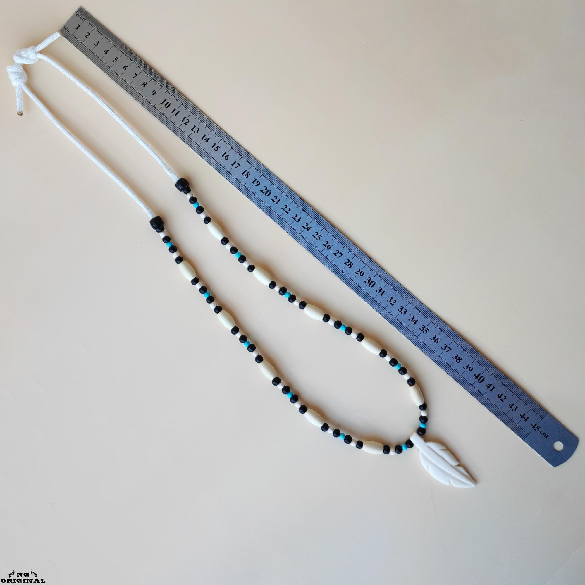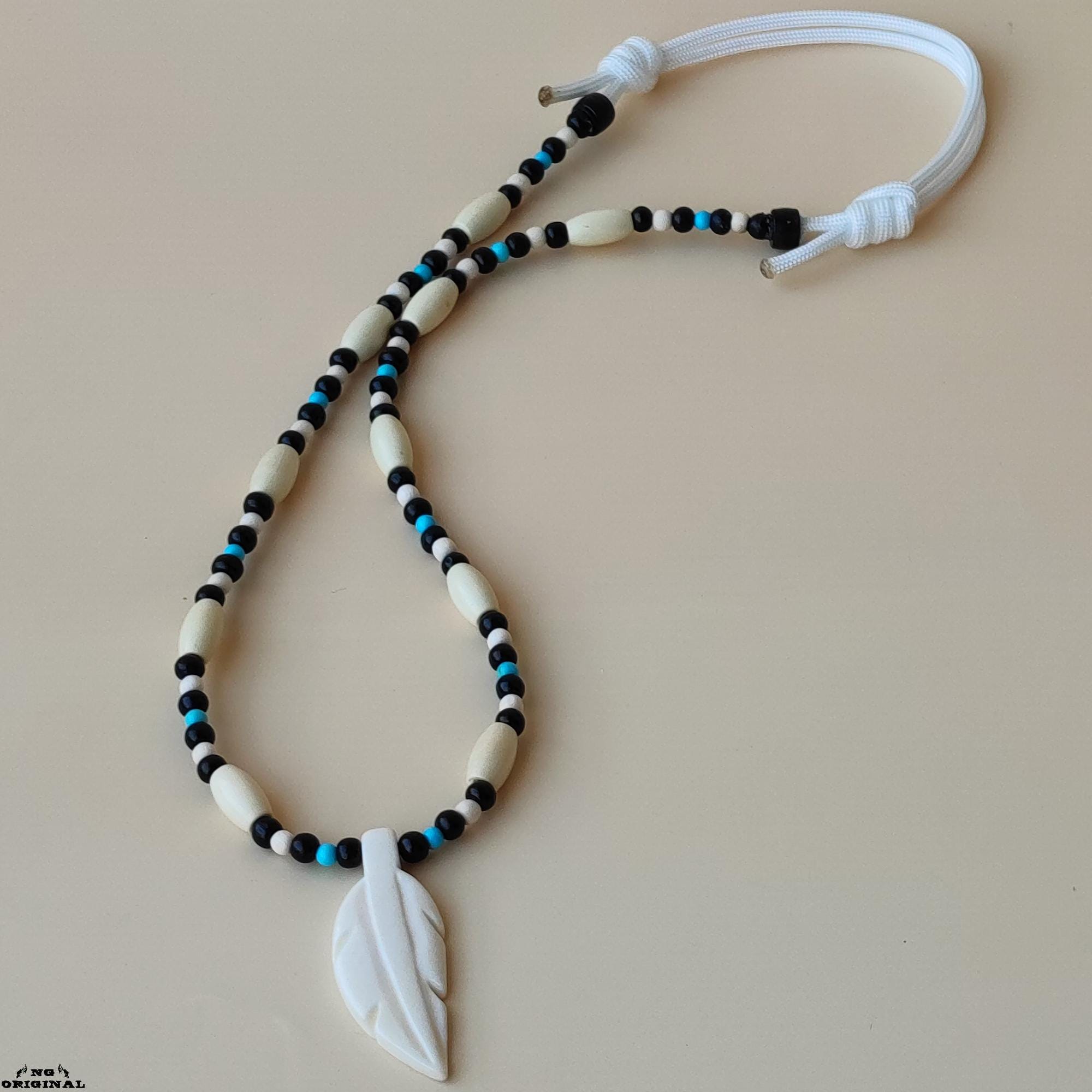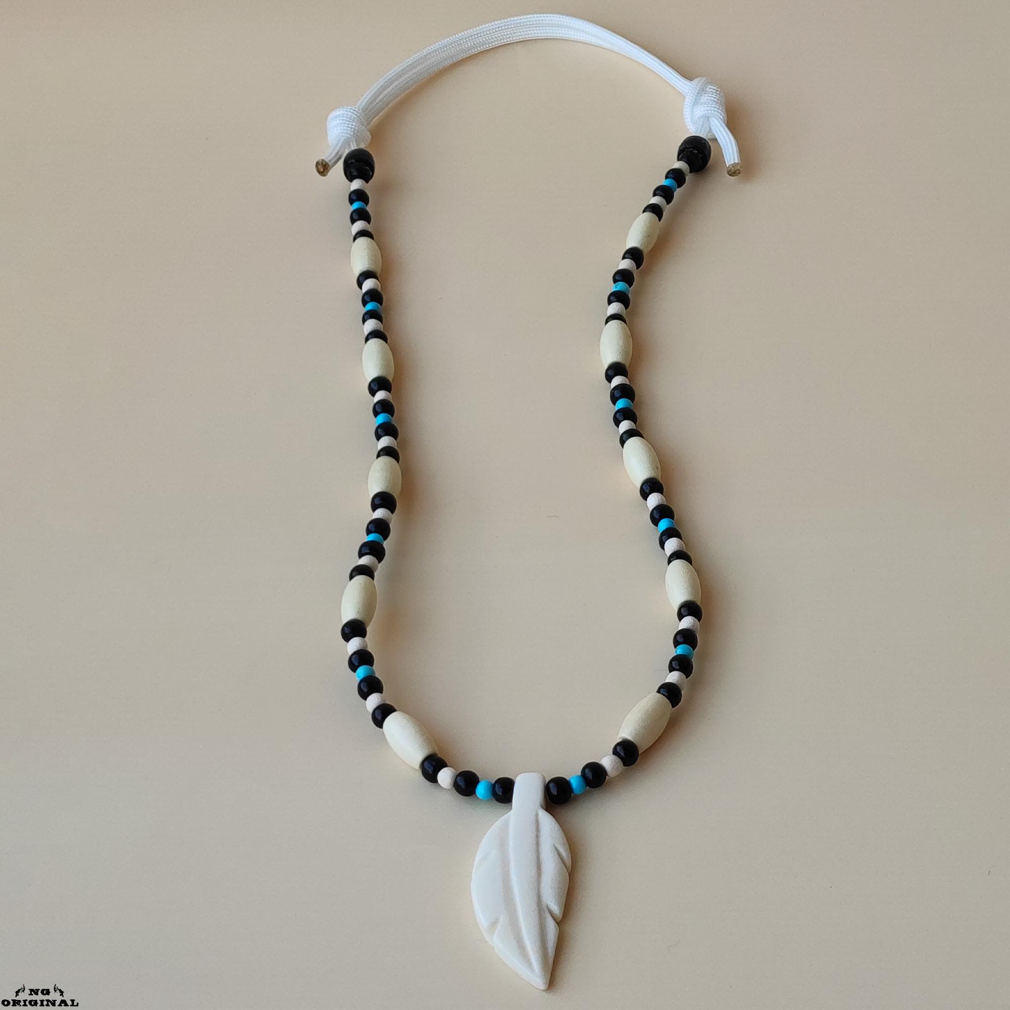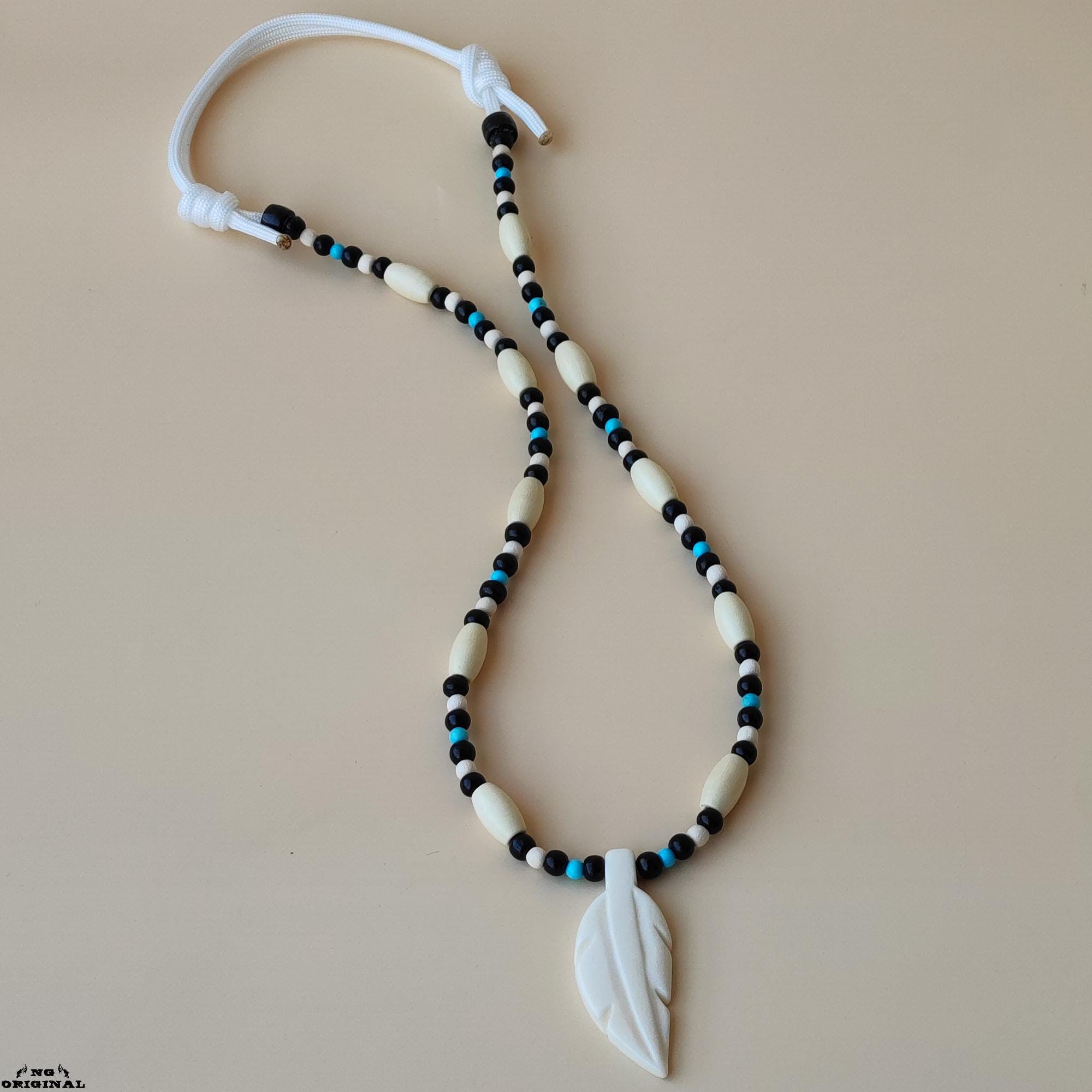 Handmade Native Tribal Necklace • Bone Feather Pendant • Natural Turquoise • Shamanic Protection Talisman • Unisex Boho Jewelry