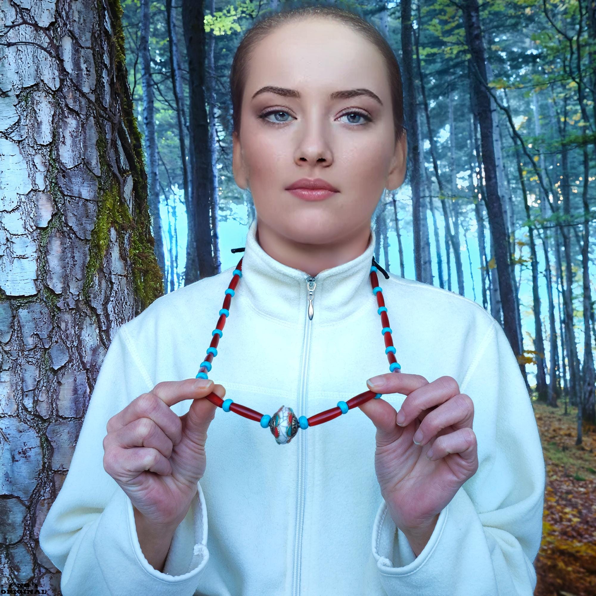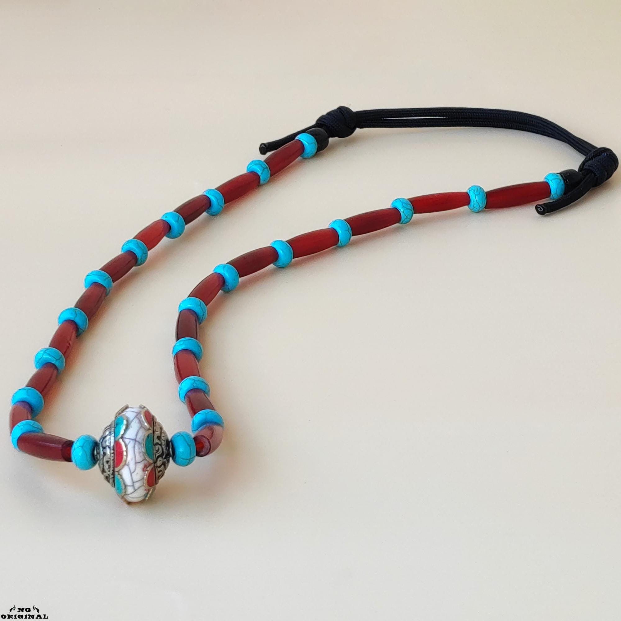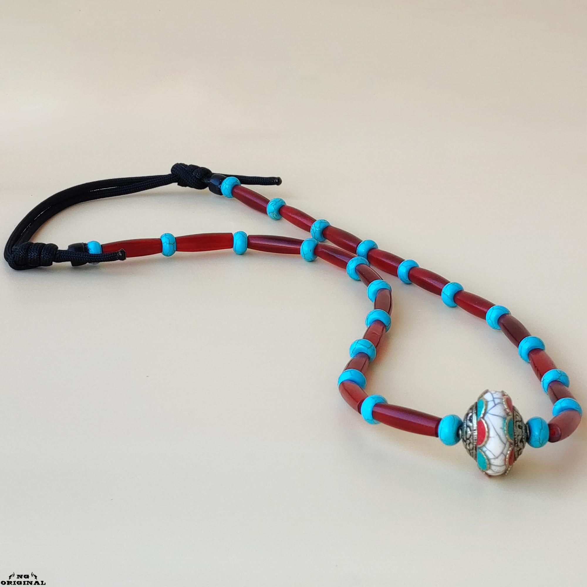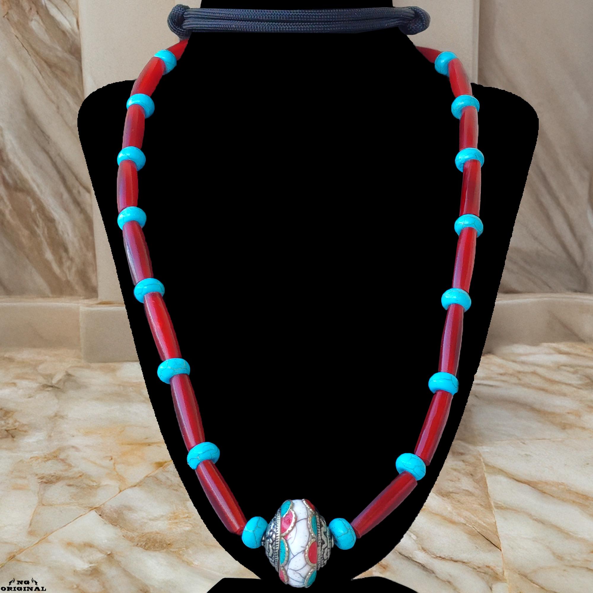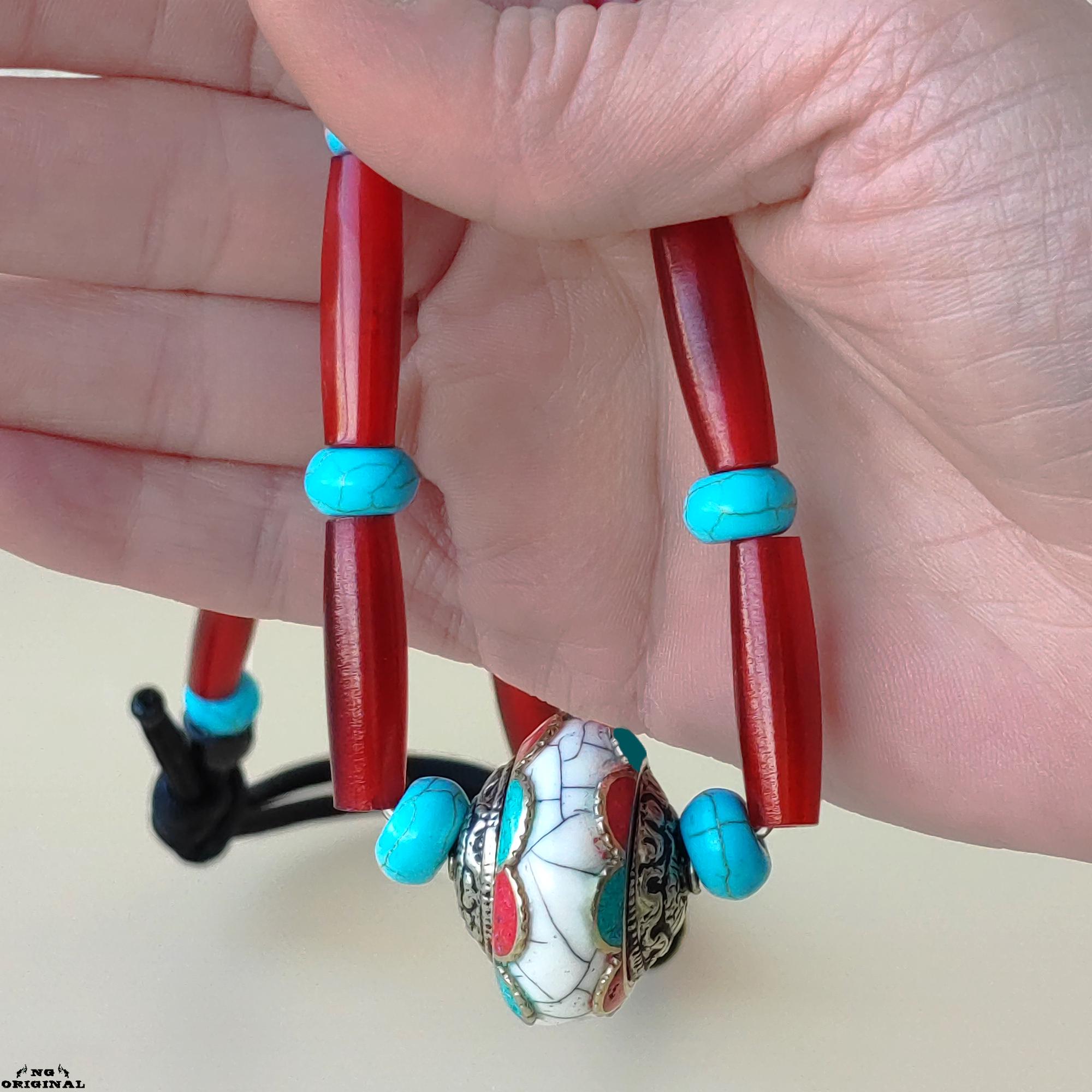Adjustable from 40 to 47 cm, this necklace suits both men and women. The Tibetan silver pendant with coral and turquoise carries a strong spiritual vibration — perfect for those who connect with energy, rituals, or the natural world.