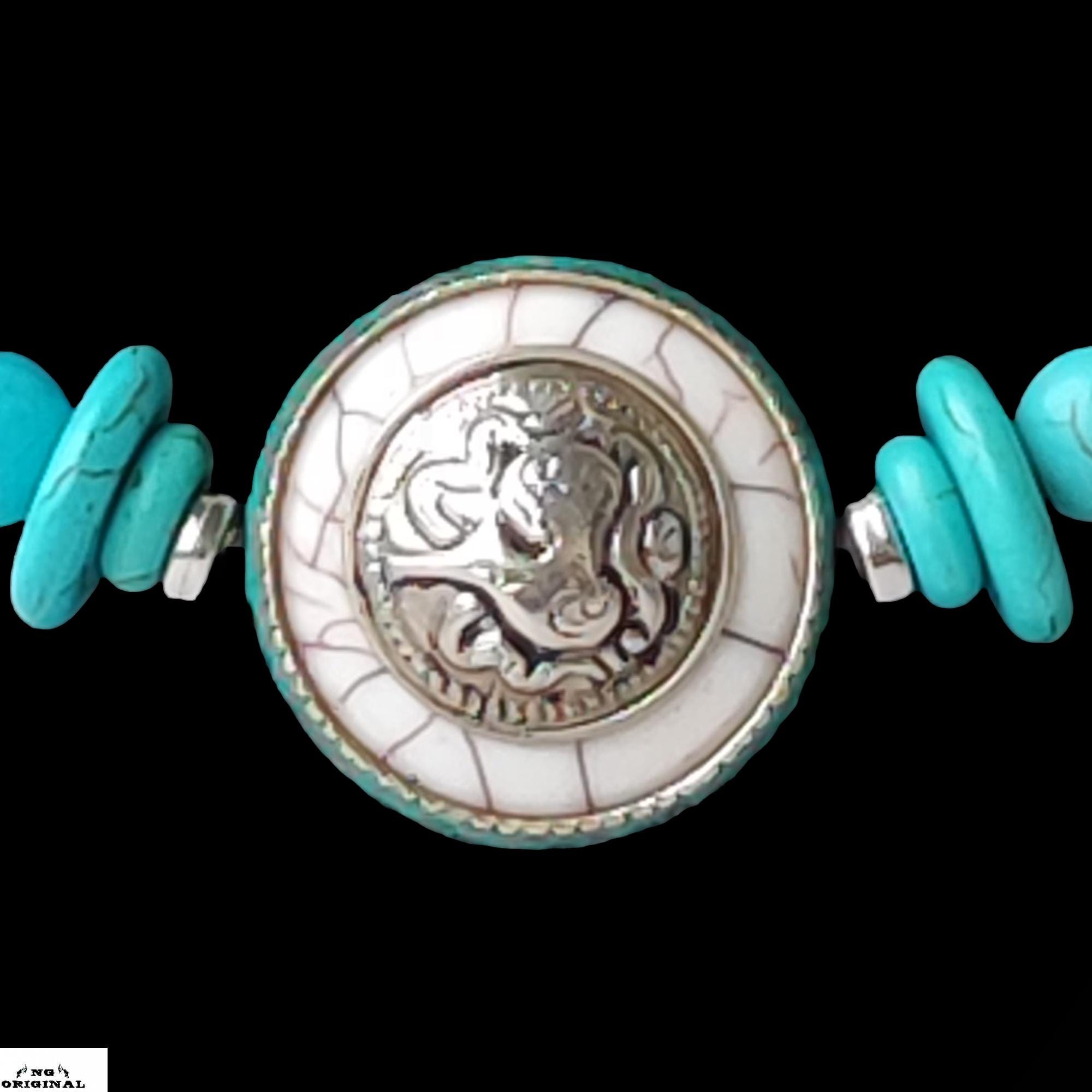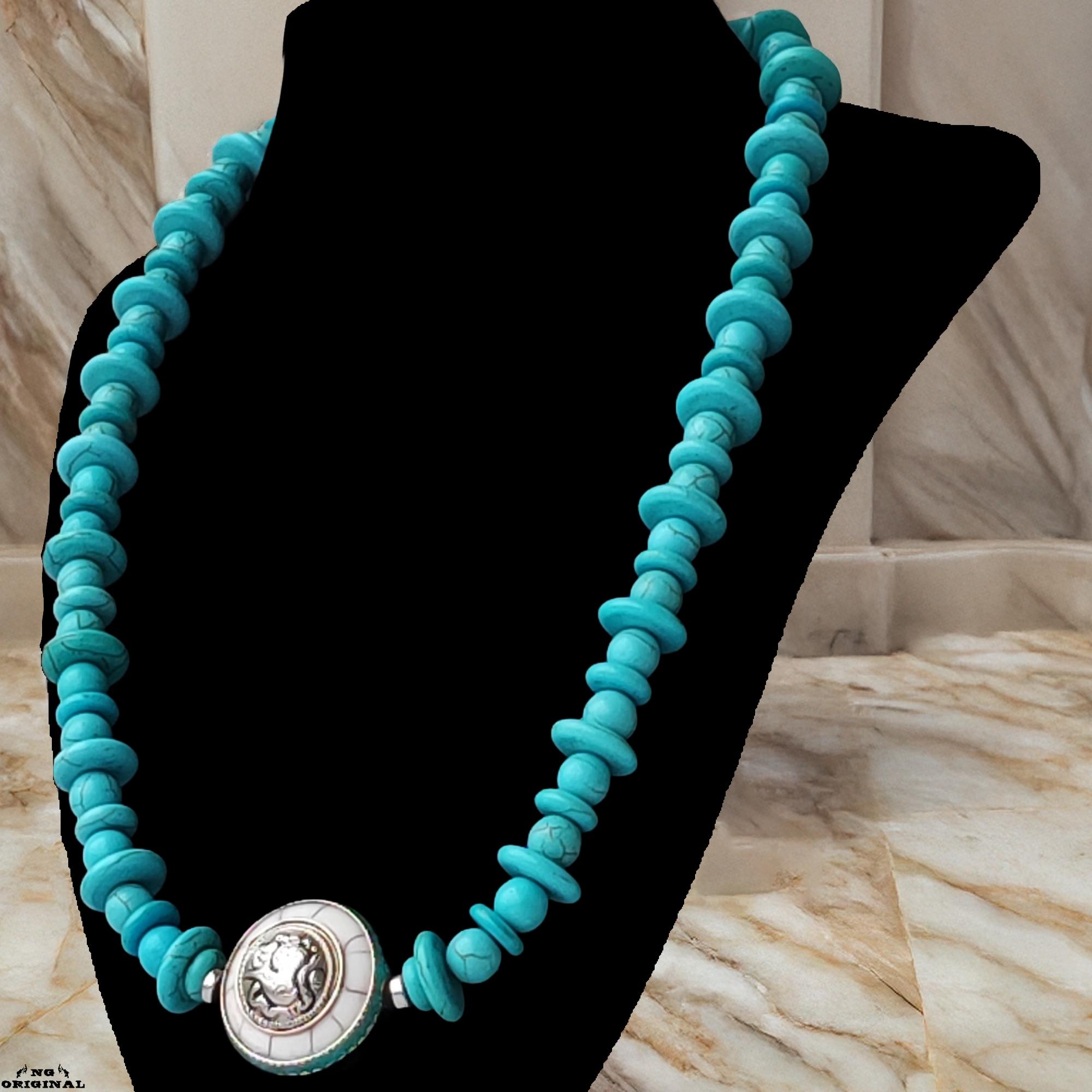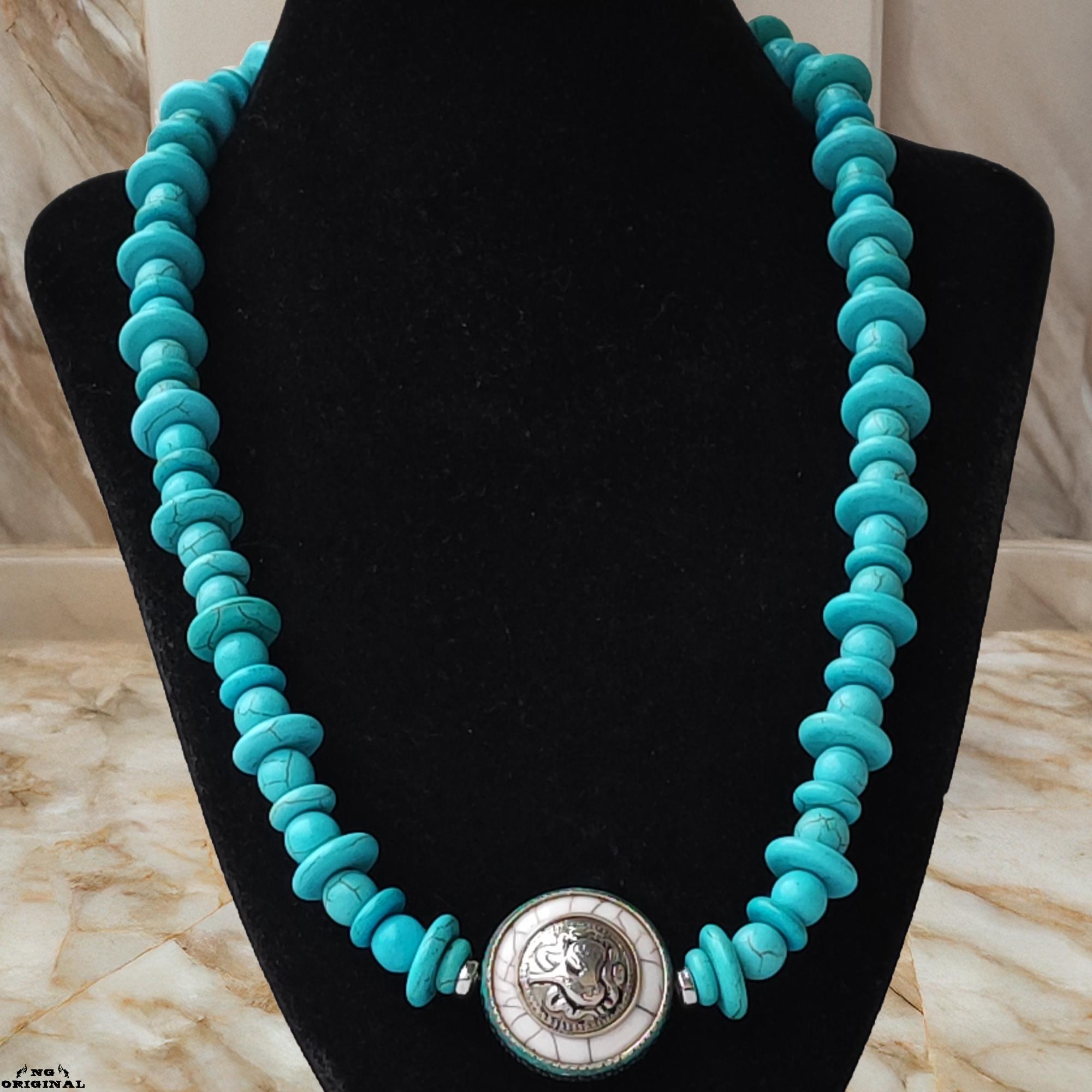 This necklace blends tribal aesthetics, sacred symbolism, and vibrant turquoise energy to accompany you in daily life or during your rituals.