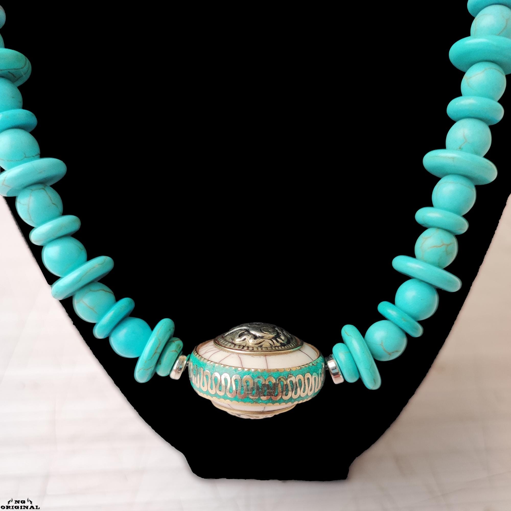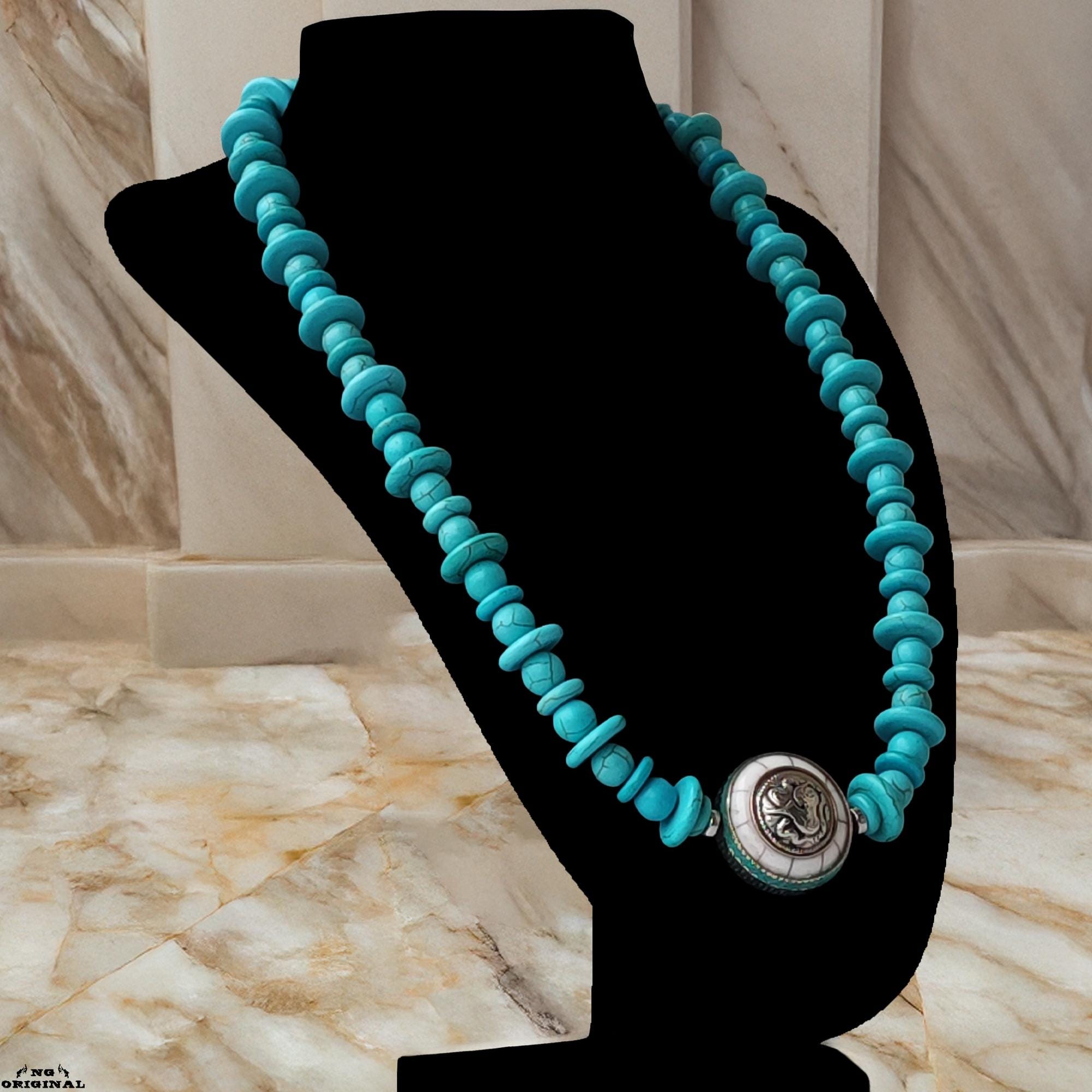 Boho Native American Necklace • Tibetan Turquoise Pendant • Spiritual Tribal Jewelry Handmade in France