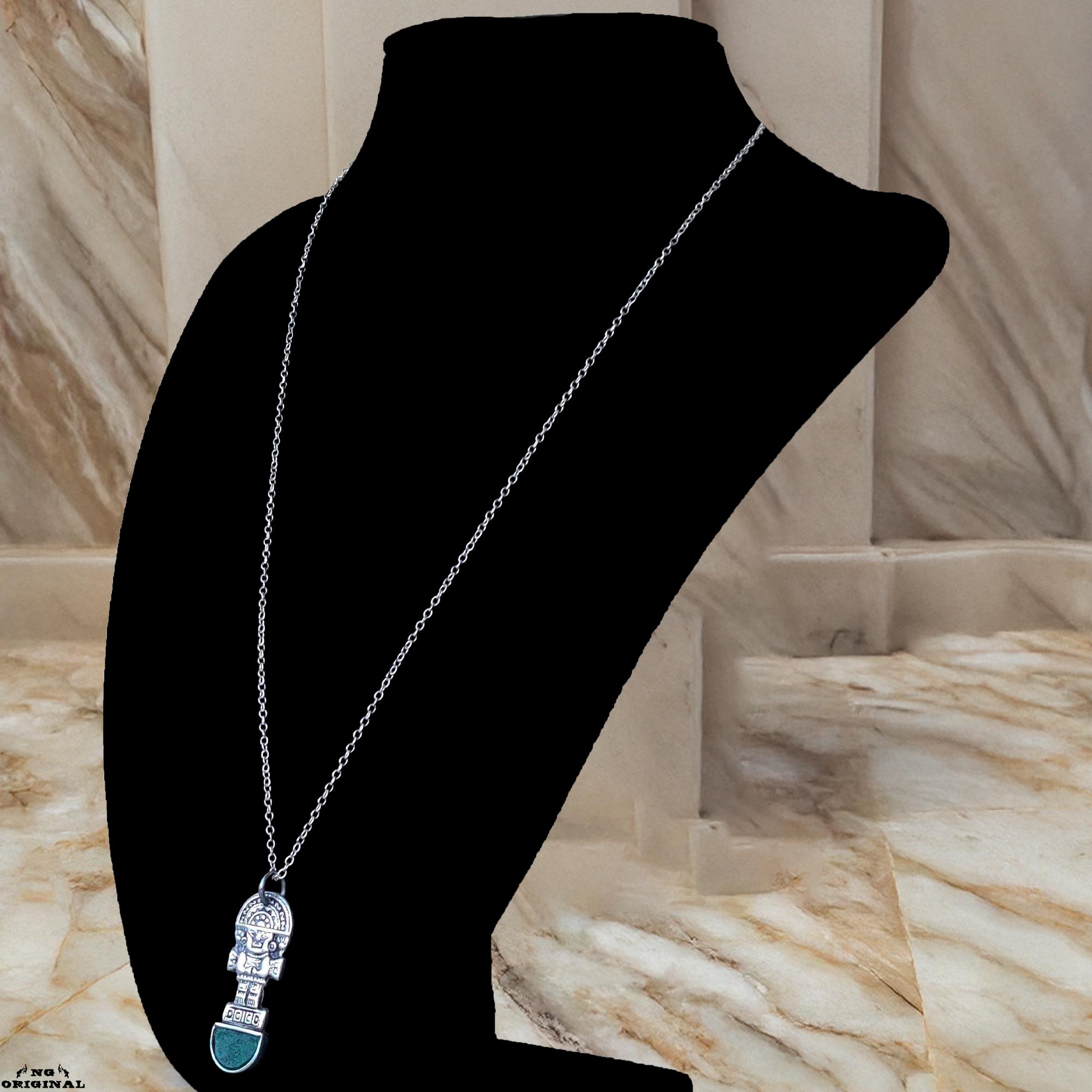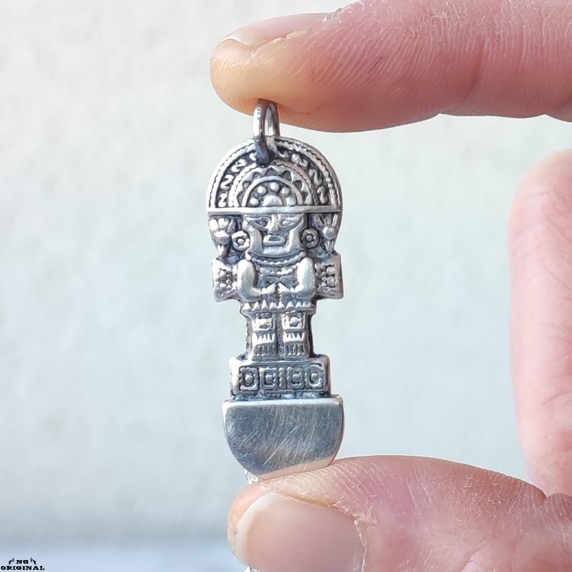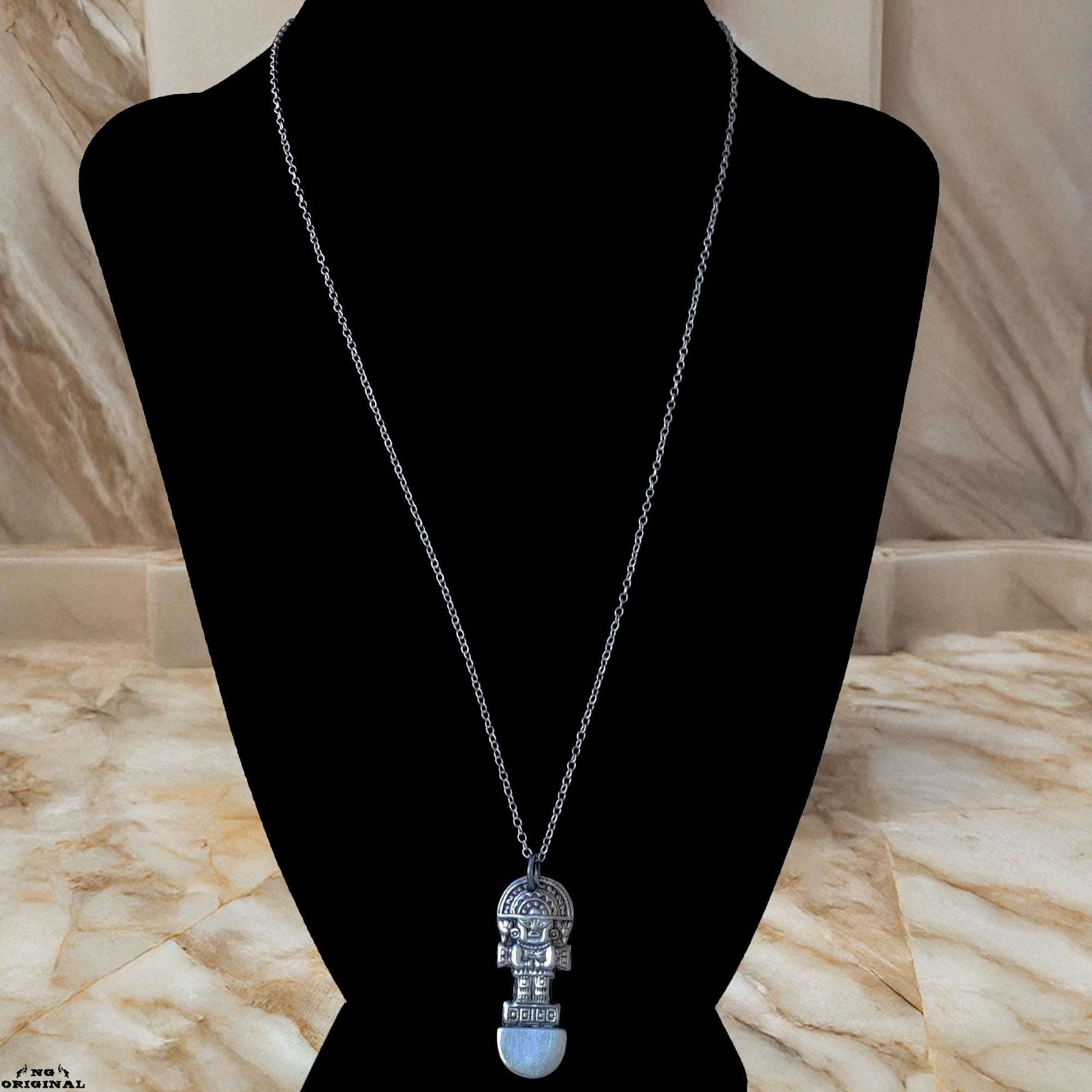 This unique pendant features a figure inspired by ancient pre‑Columbian artifacts — a powerful symbol of protection, inner strength, and connection to the Earth.