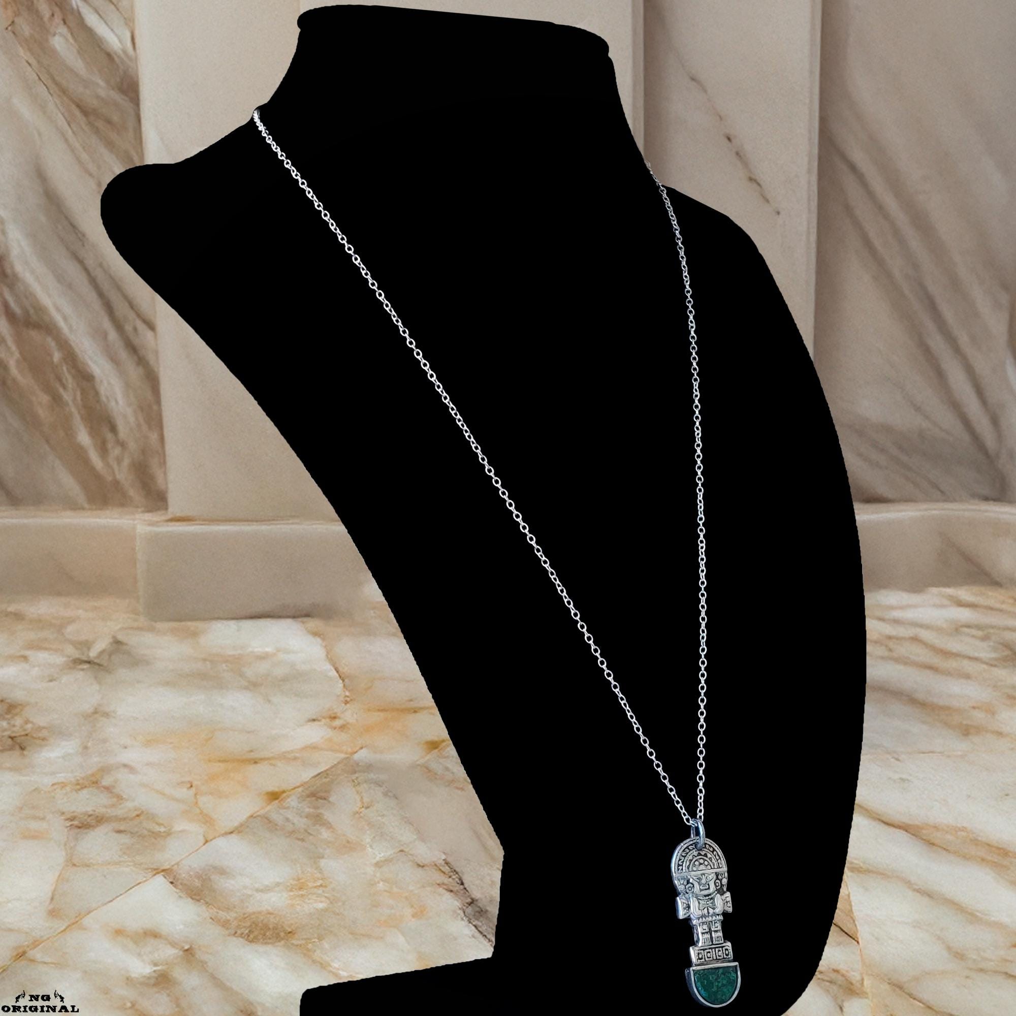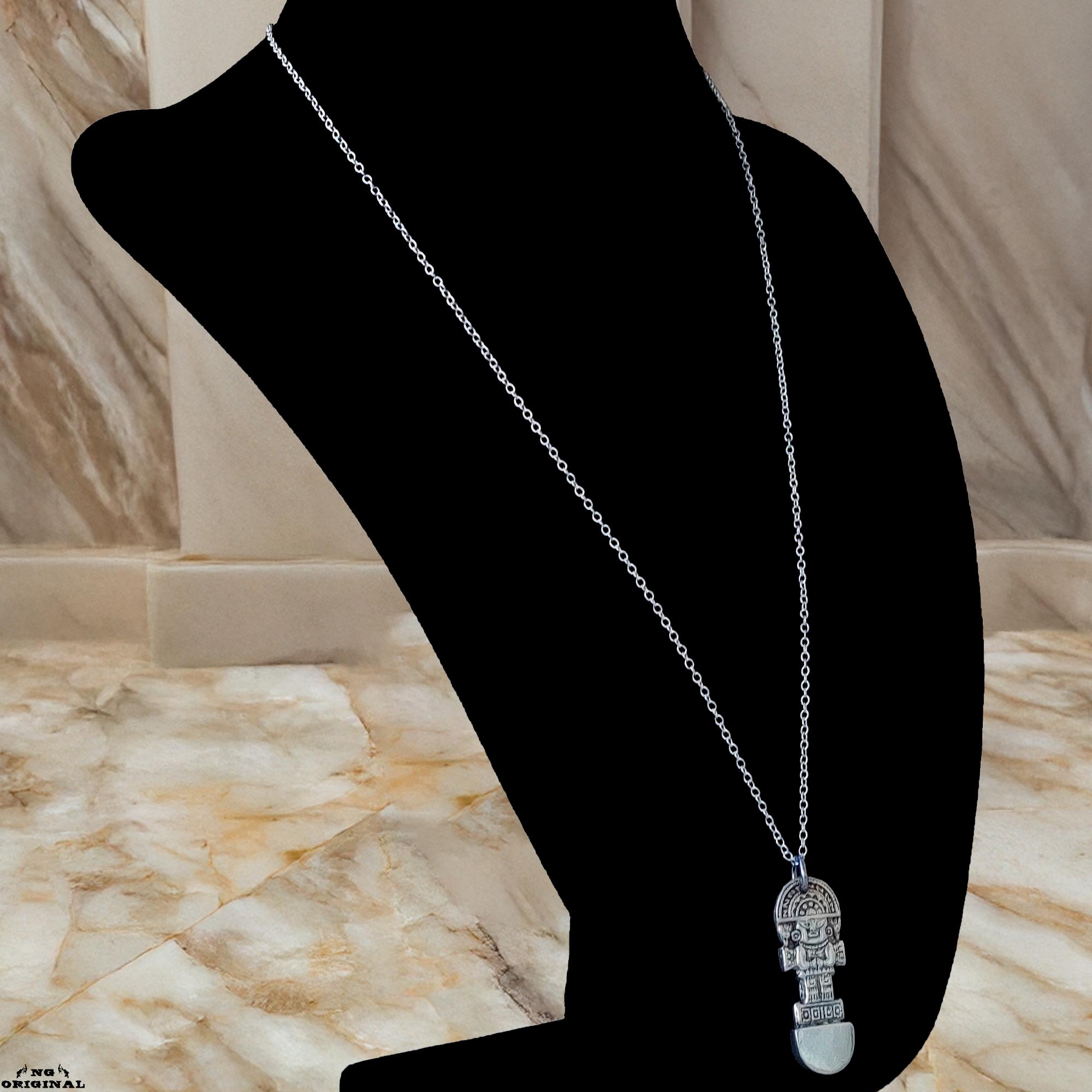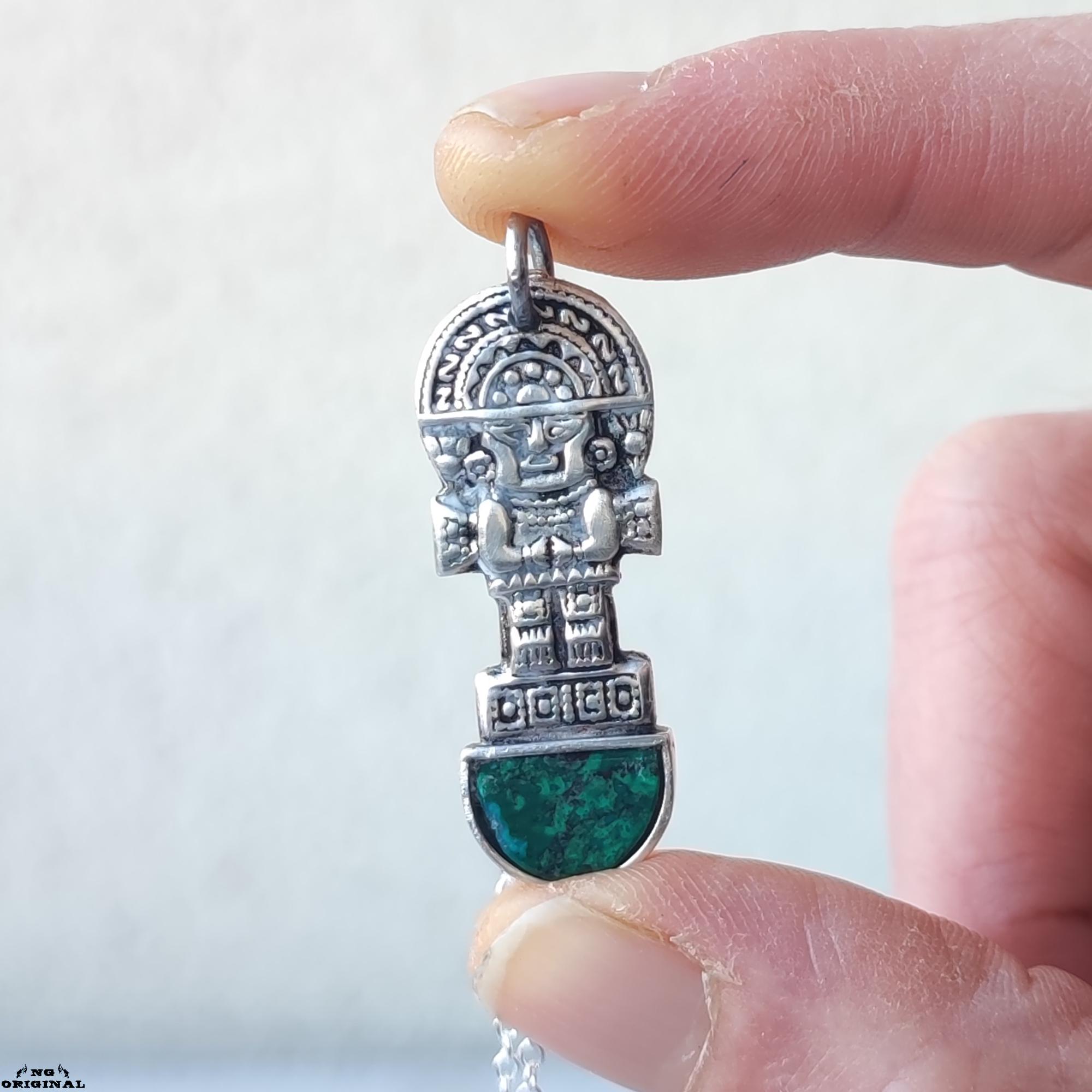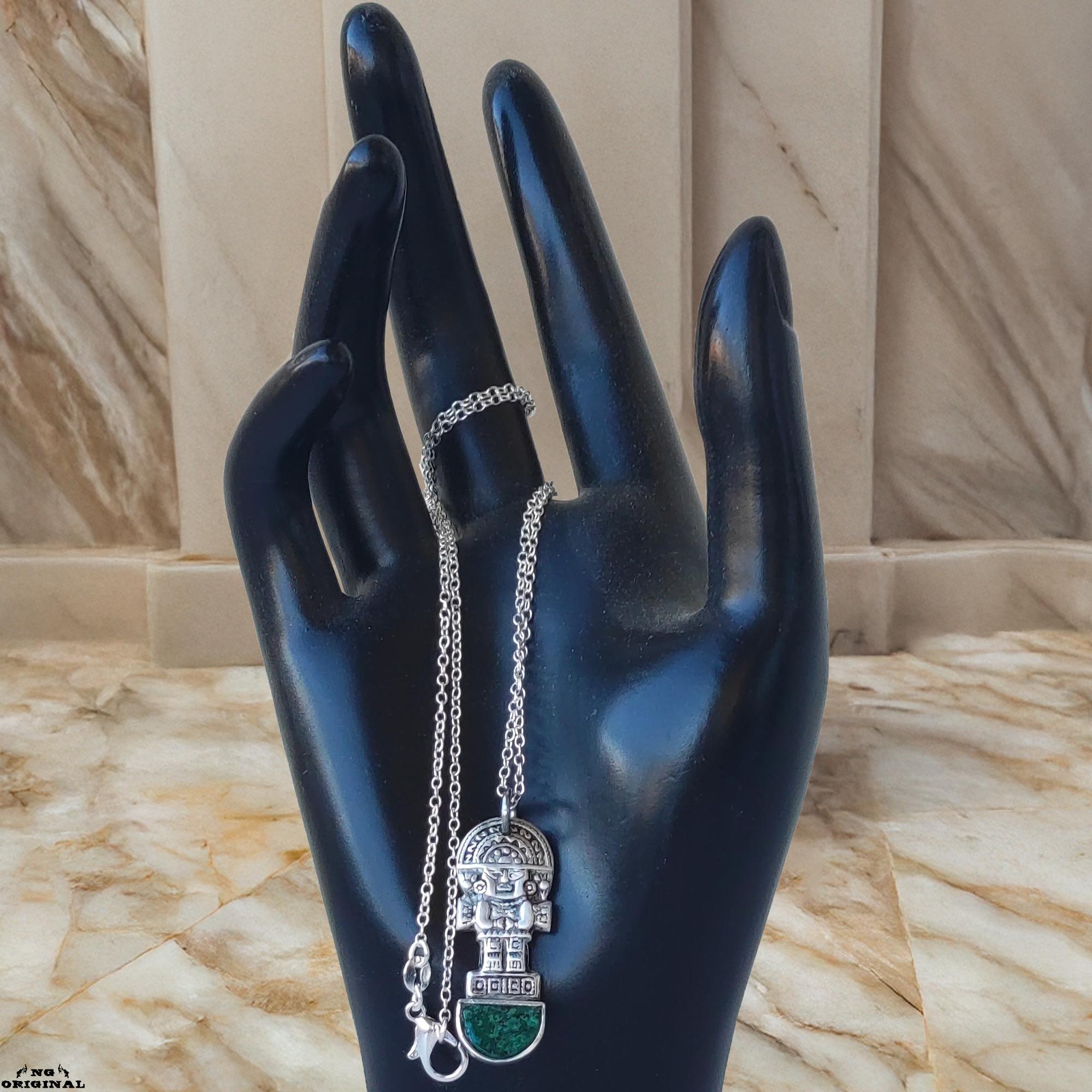 This unique pendant features a figure inspired by ancient pre‑Columbian artifacts — a powerful symbol of protection, inner strength, and connection to the Earth.